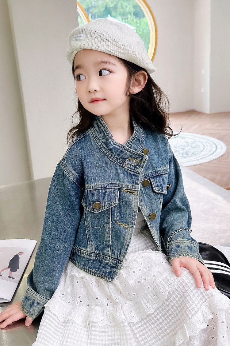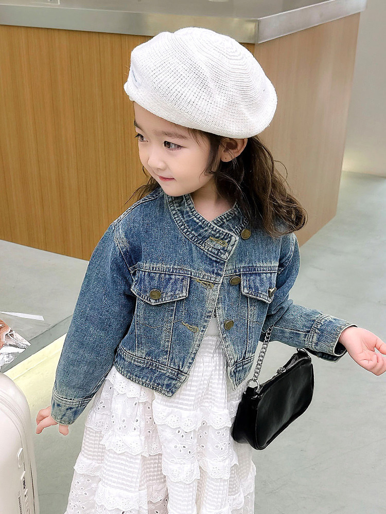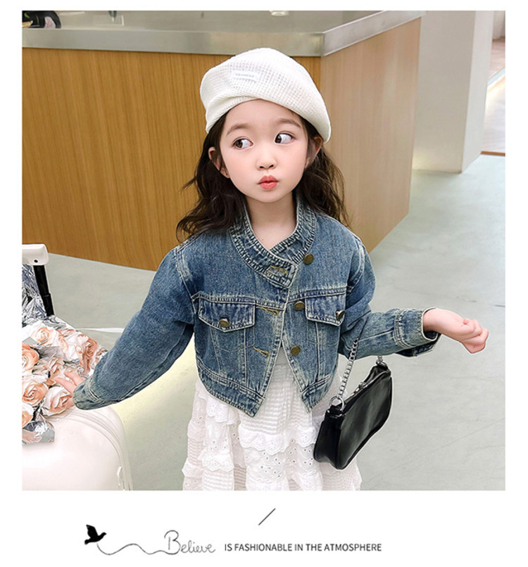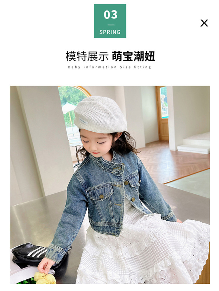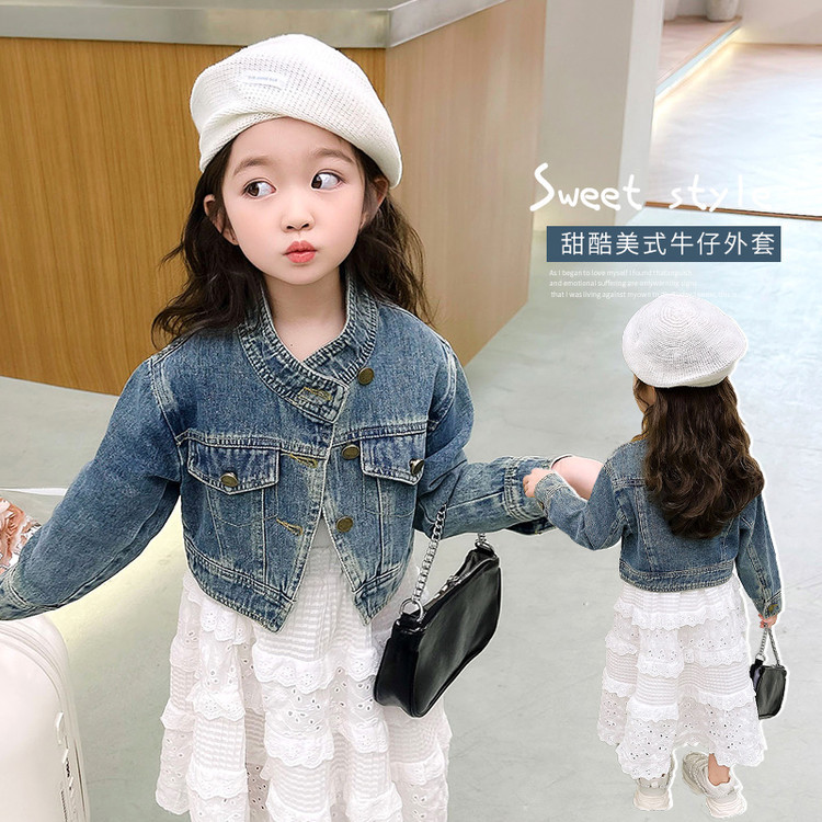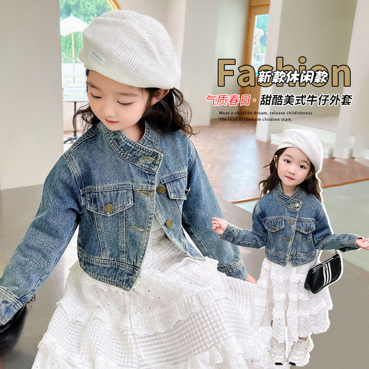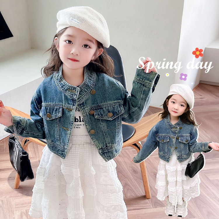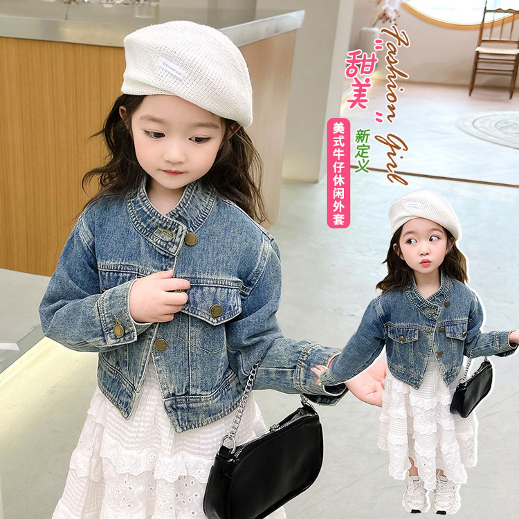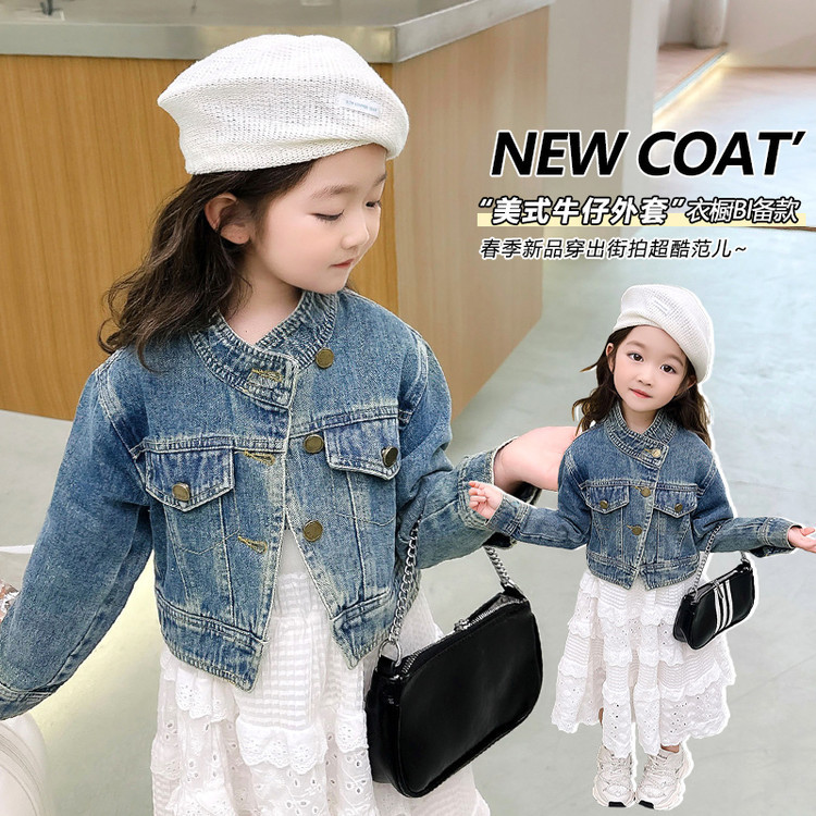 여아 코트 봄, 가을 2025 새로운 스타일 아동 패션 여자 아기 봄 데님 재킷 짧은상의스토어 가기