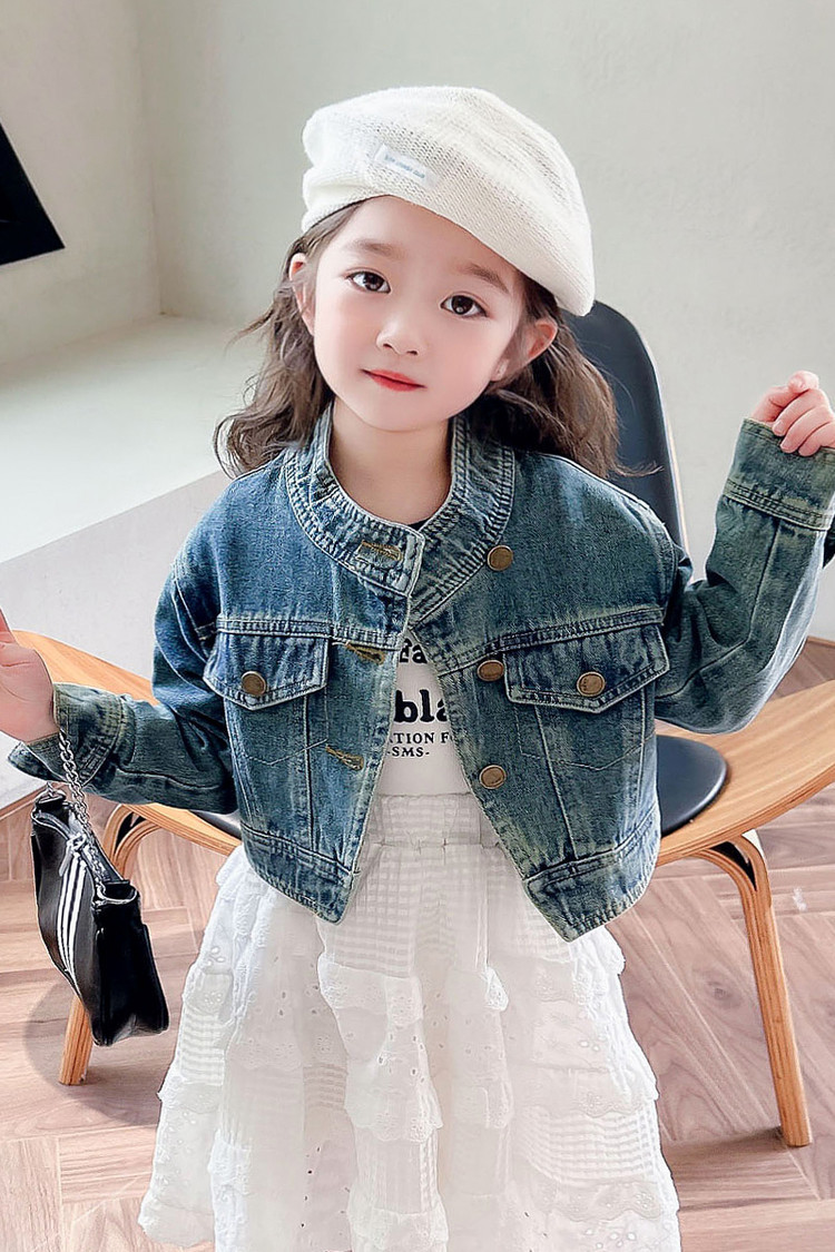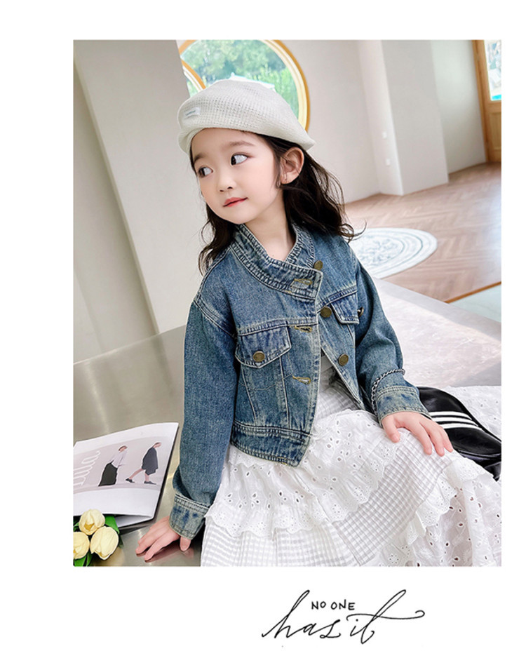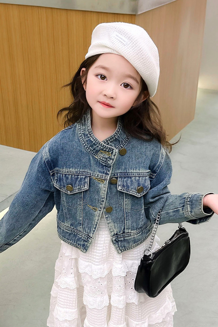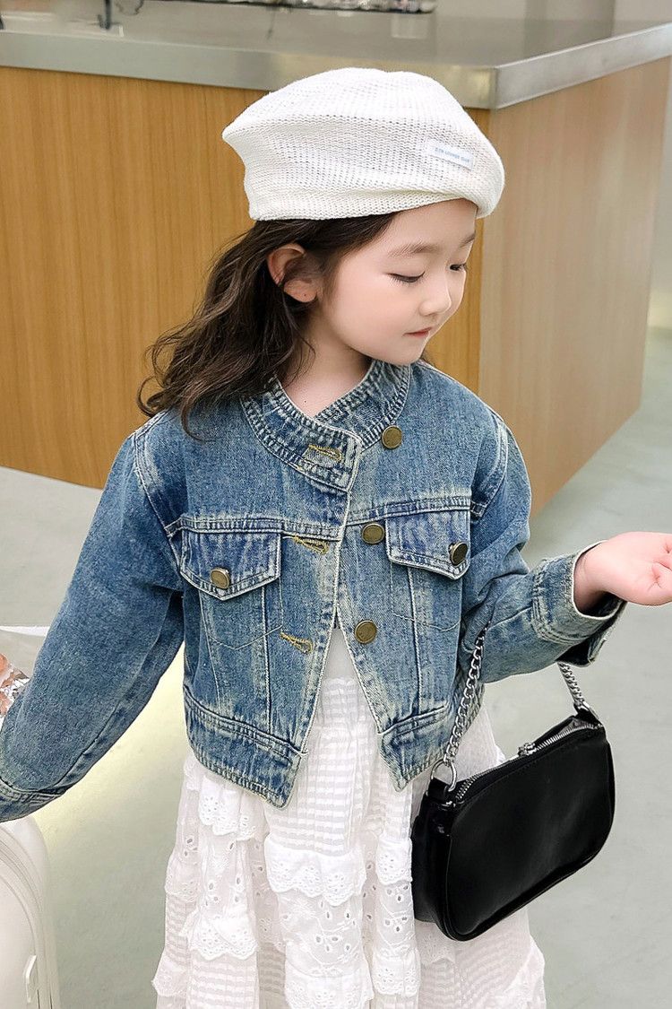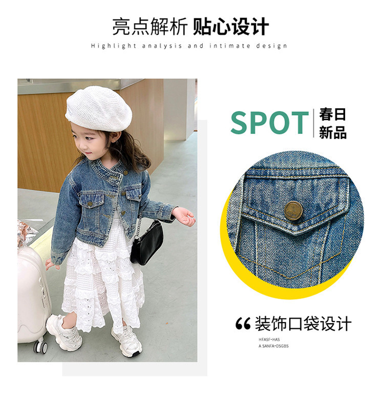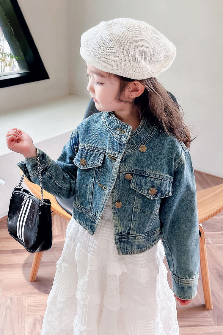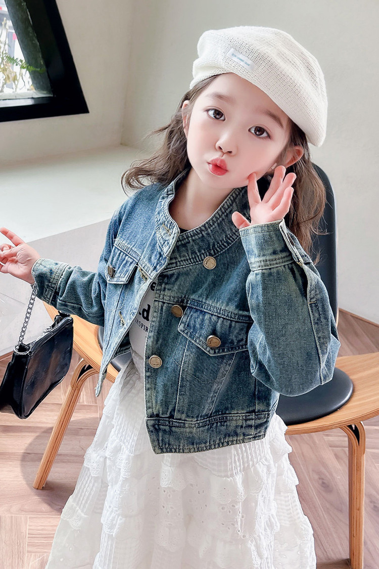 여아 코트 봄, 가을 2025 새로운 스타일 아동 패션 여자 아기 봄 데님 재킷 짧은상의스토어 가기