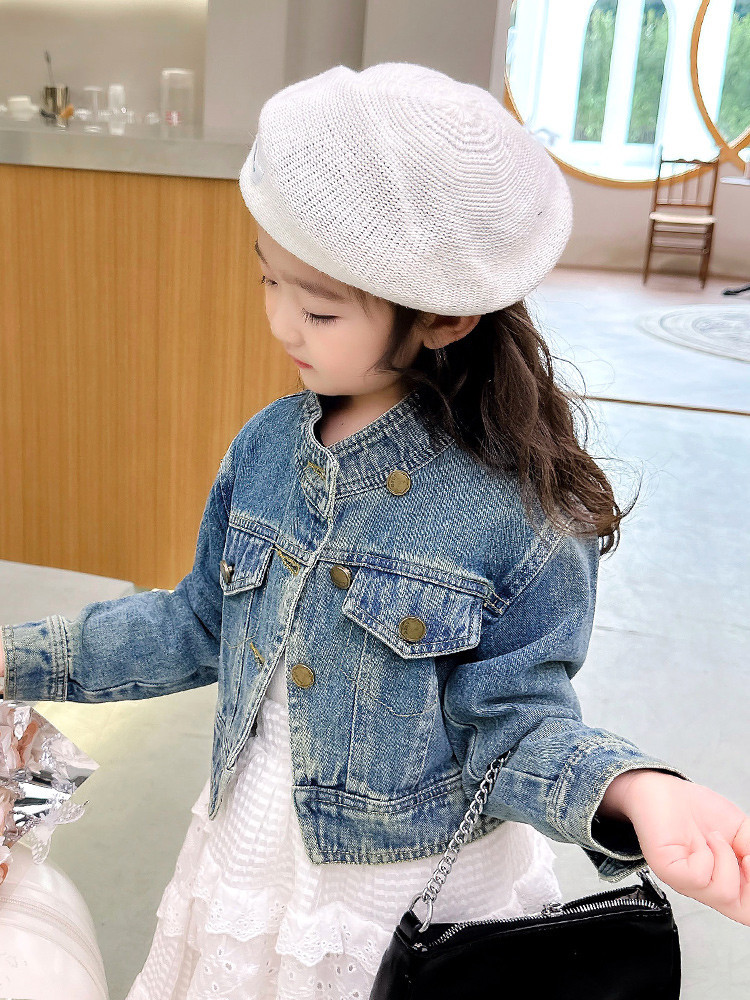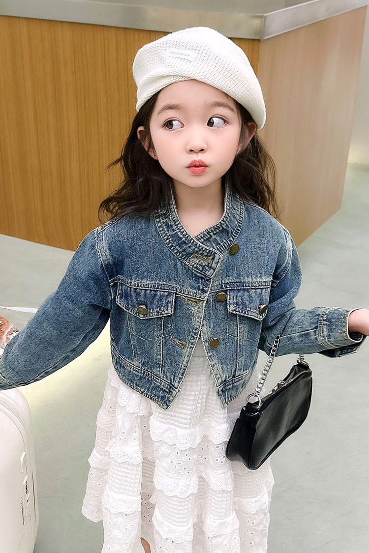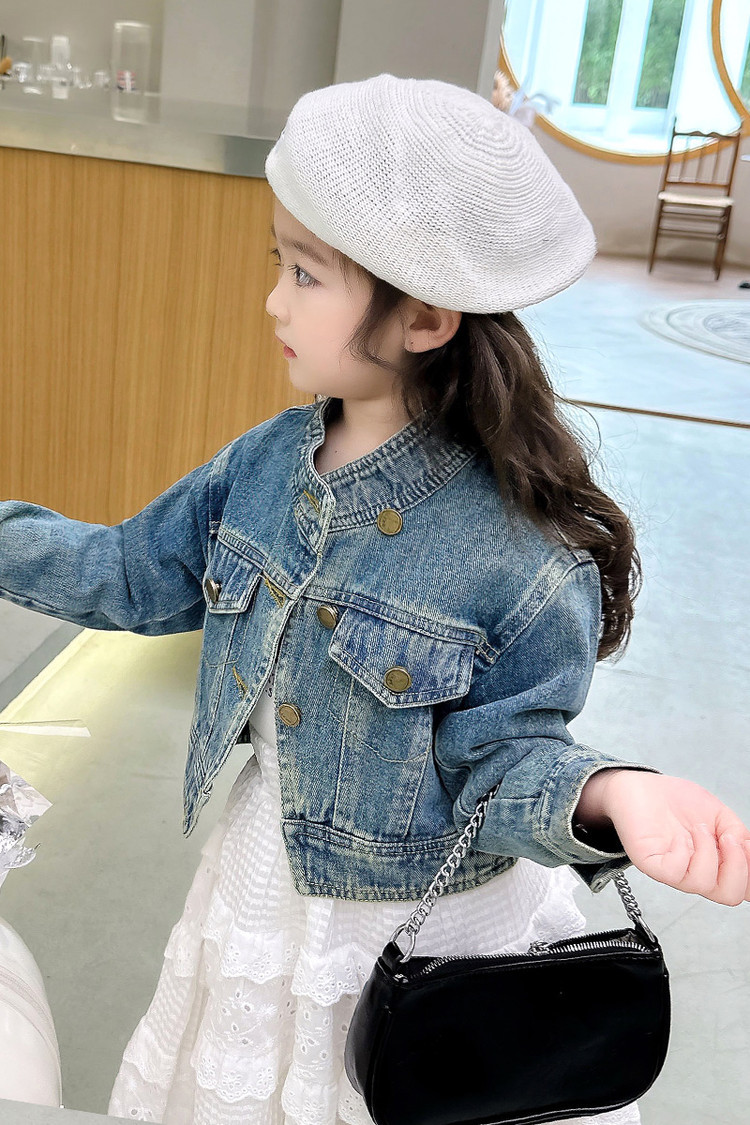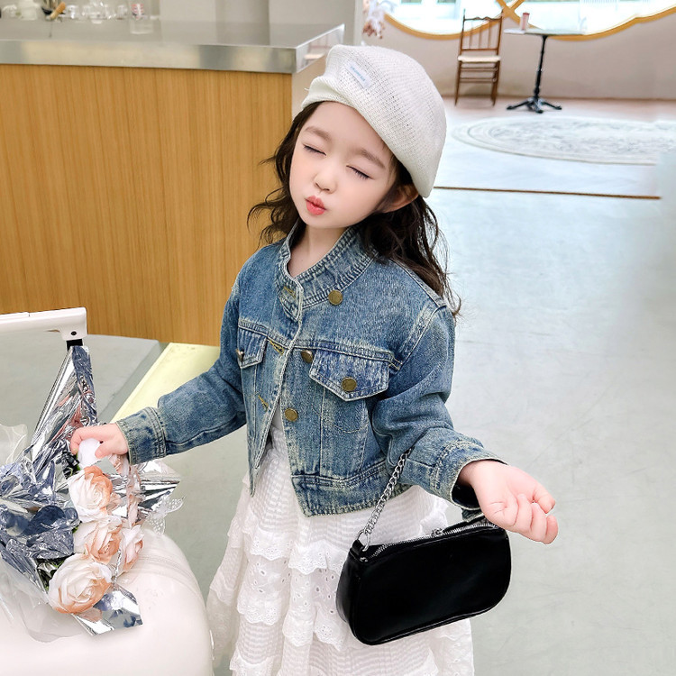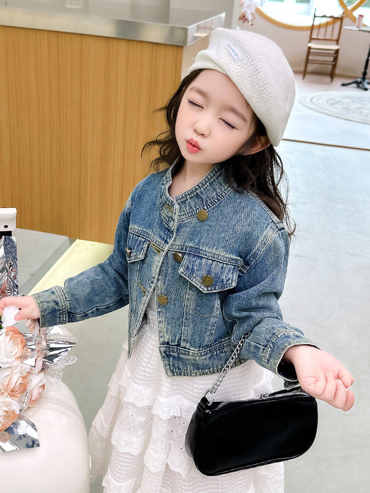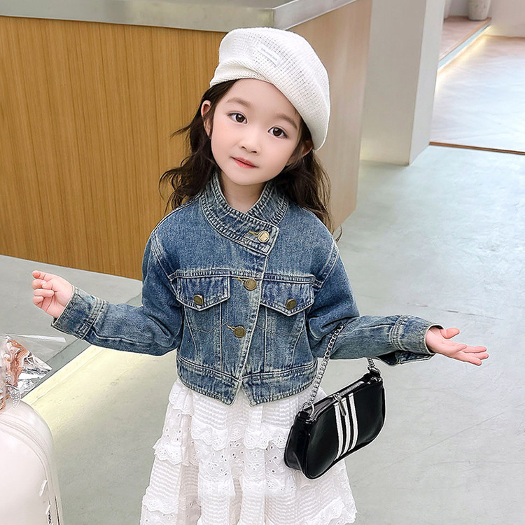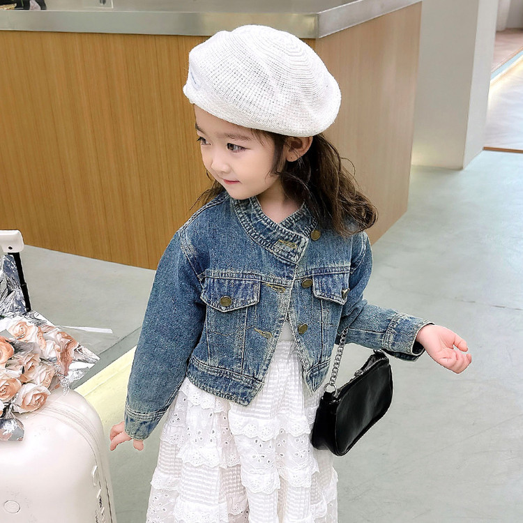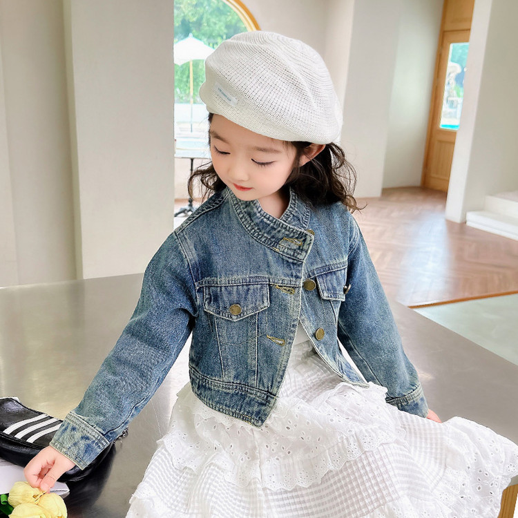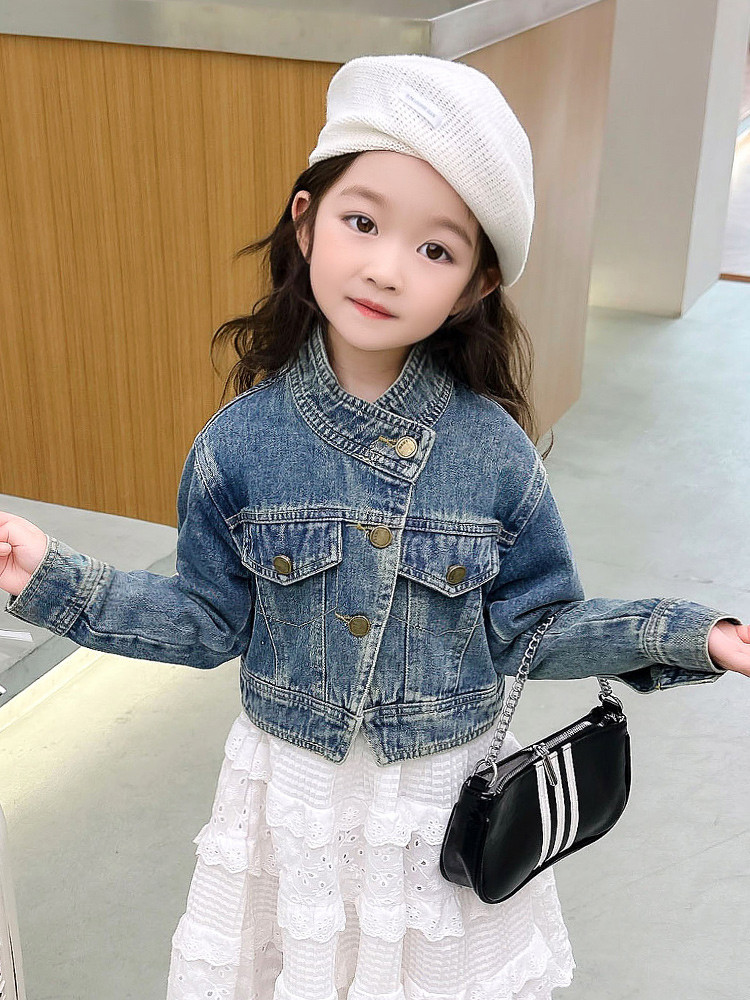 여아 코트 봄, 가을 2025 새로운 스타일 아동 패션 여자 아기 봄 데님 재킷 짧은상의