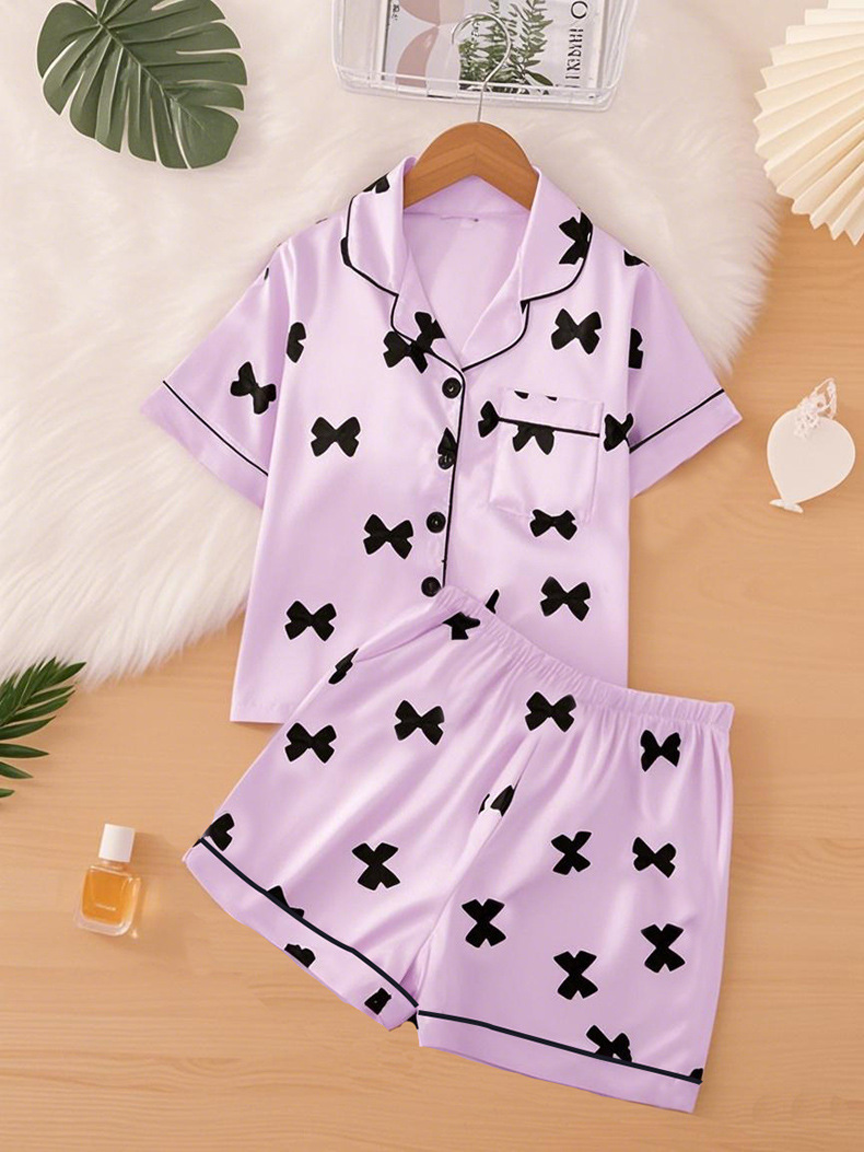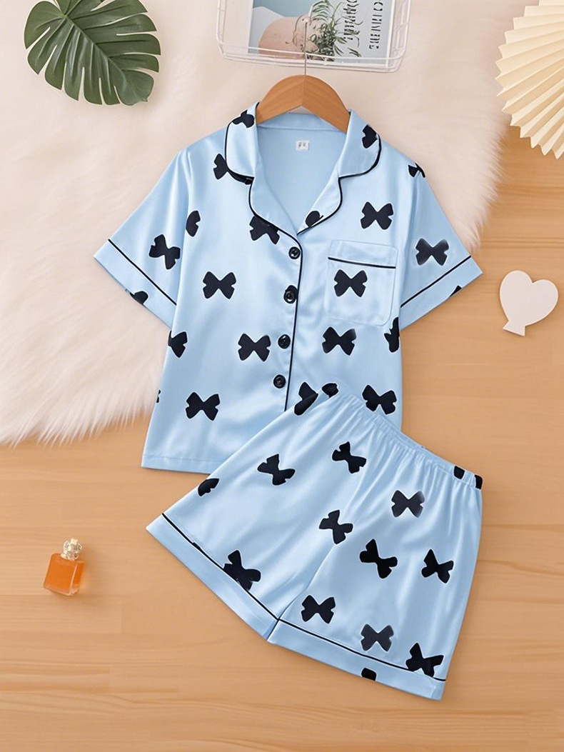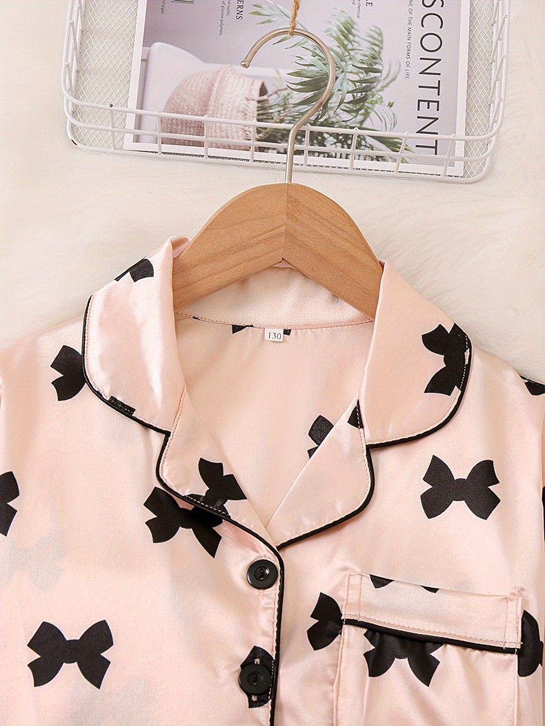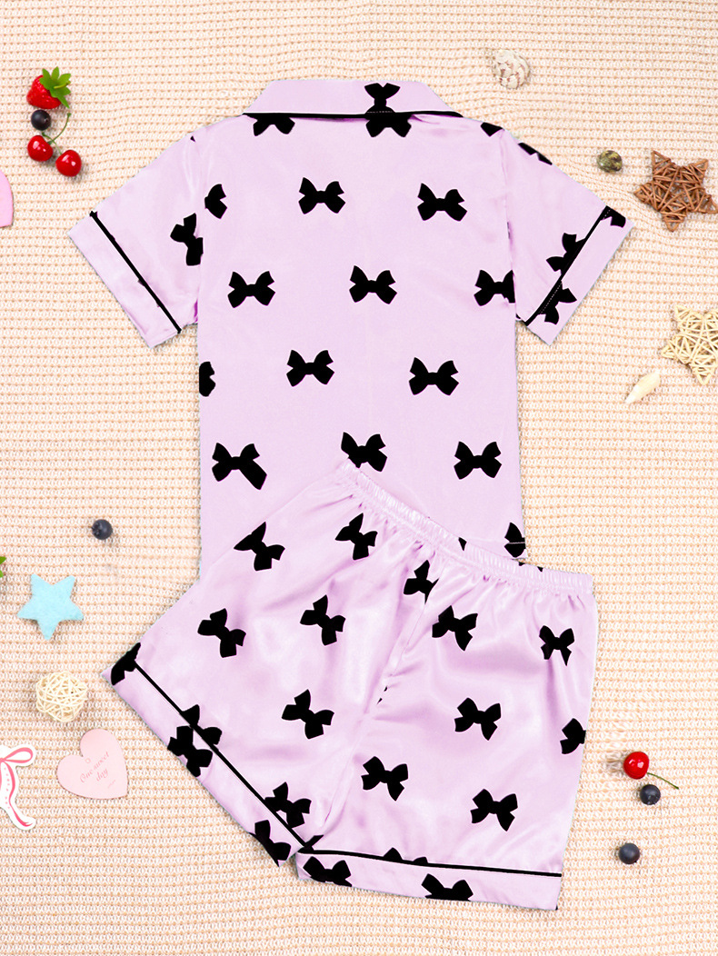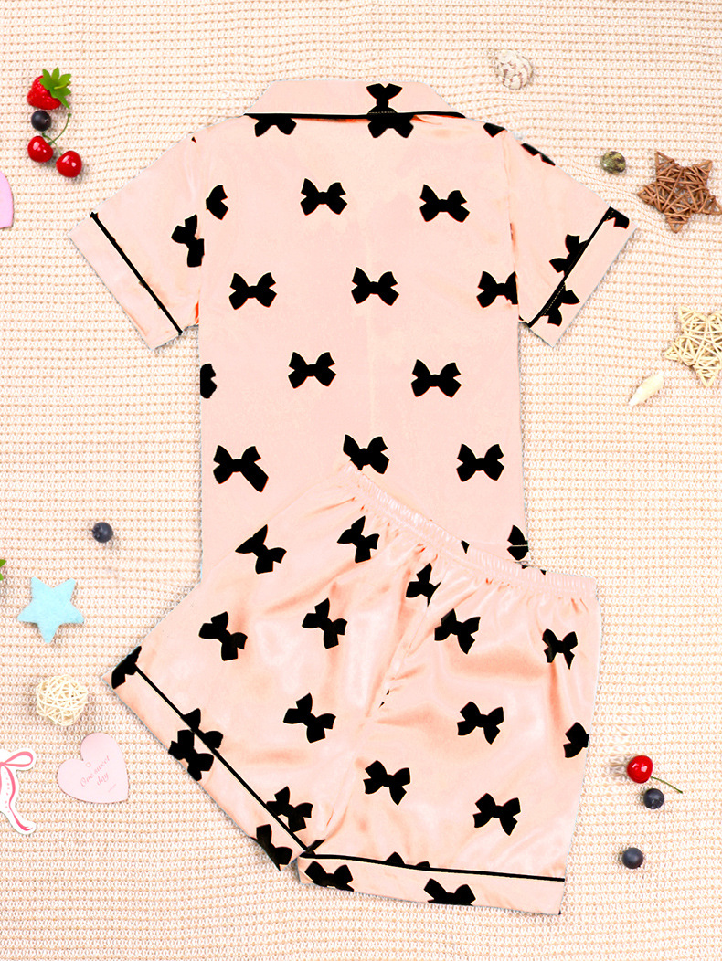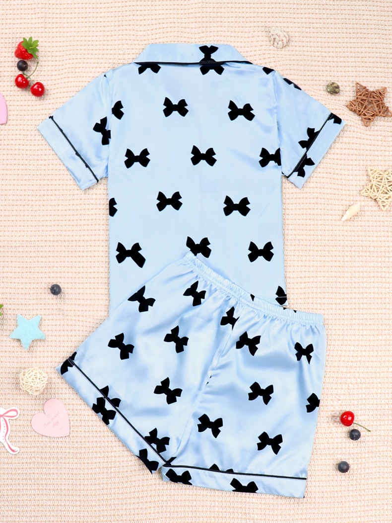 실크 같은 어린이 잠옷 여름 어린이 집 옷 여아 잠옷 세트 활 얇은 파틴 반팔 잠옷