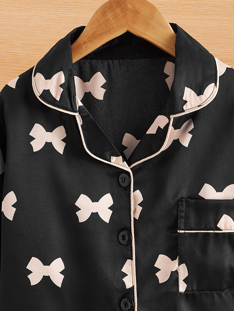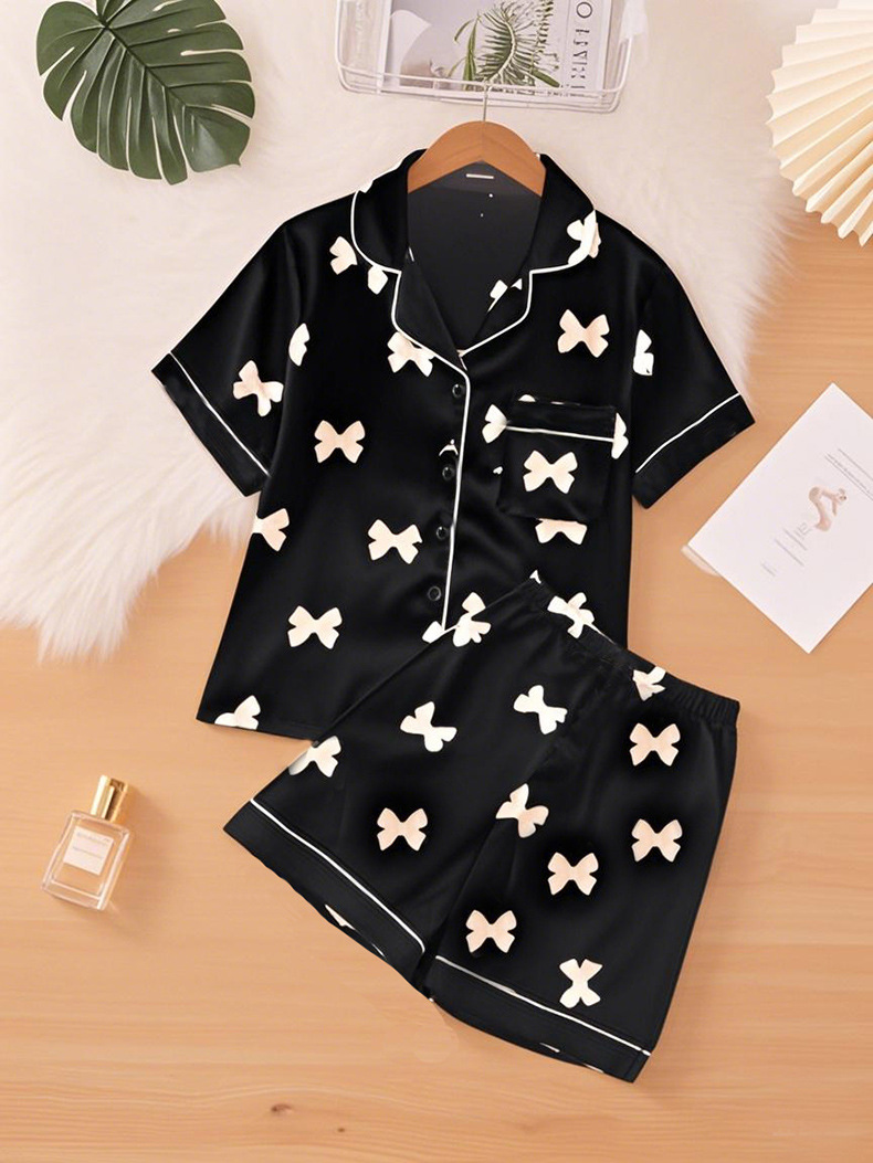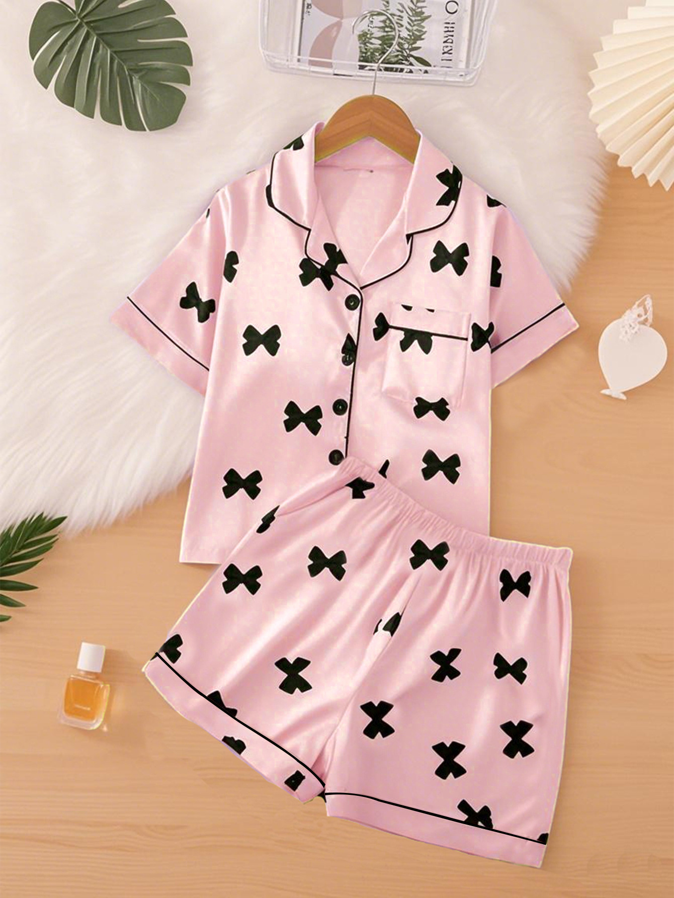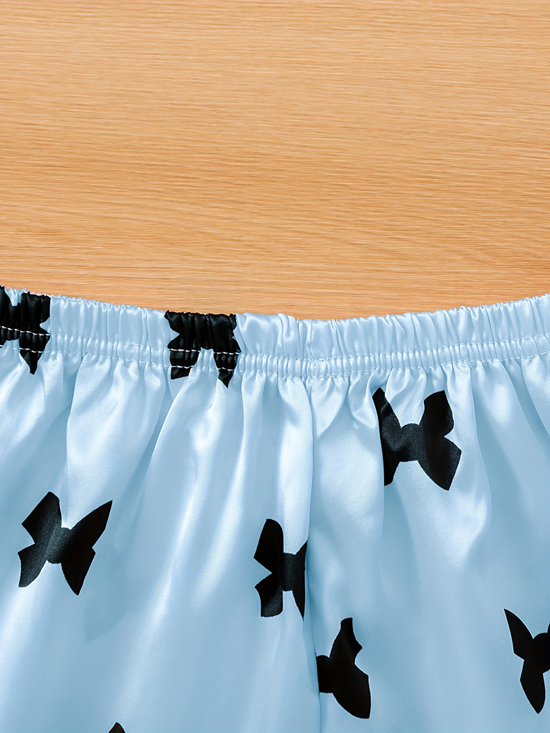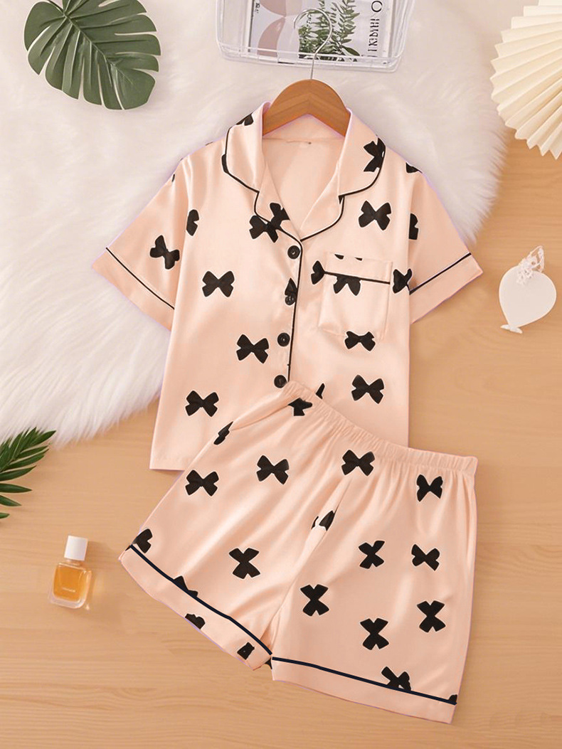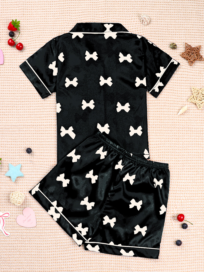 실크 같은 어린이 잠옷 여름 어린이 집 옷 여아 잠옷 세트 활 얇은 파틴 반팔 잠옷