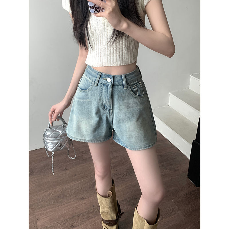 아메리칸 스타일 모피 가장자리 넓은 다리 데님 반바지 여성 여름 얇은 높은 허리 플러스 사이즈 슬리밍 디자인 센스 틈새 A 자형 핫 바지스토어 가기