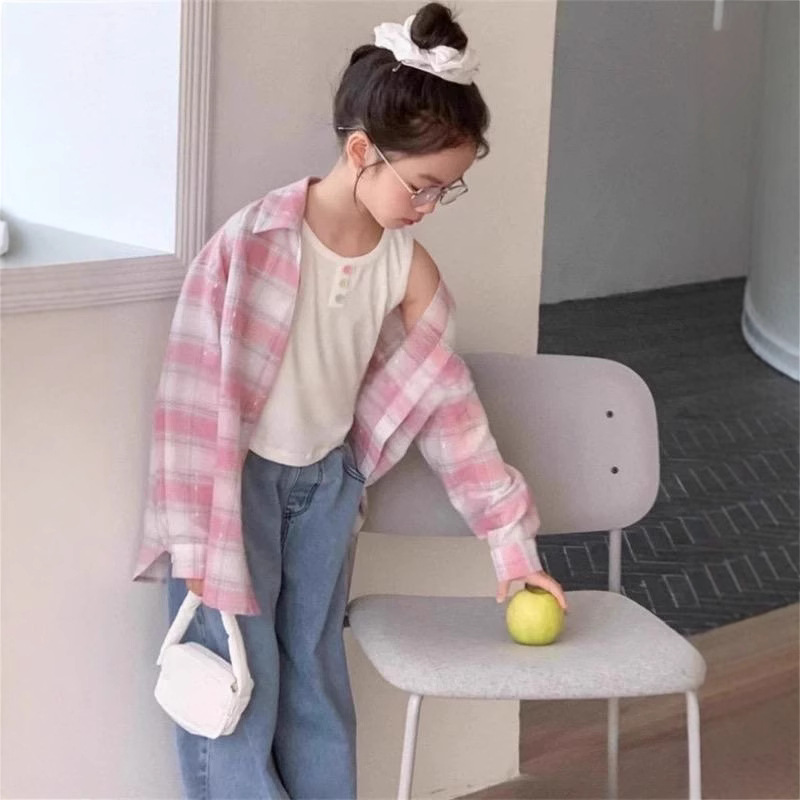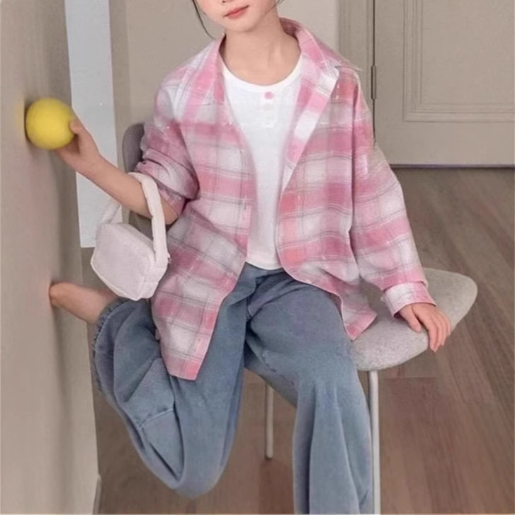 소녀 격자 무늬 셔츠 25 봄과 여름 새로운 어린이 긴팔 선 스크린 셔츠 서양식 올 매치 탑 재킷스토어 가기