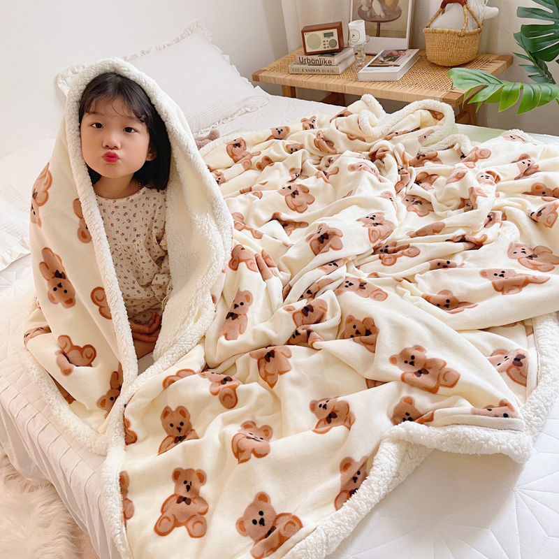 이중층 두꺼운 양털 담요는 이불 커버로 사용할 수 있습니다. 작은 신선한 점심 담요 가을 겨울 따뜻한 자동차 다기능 담요