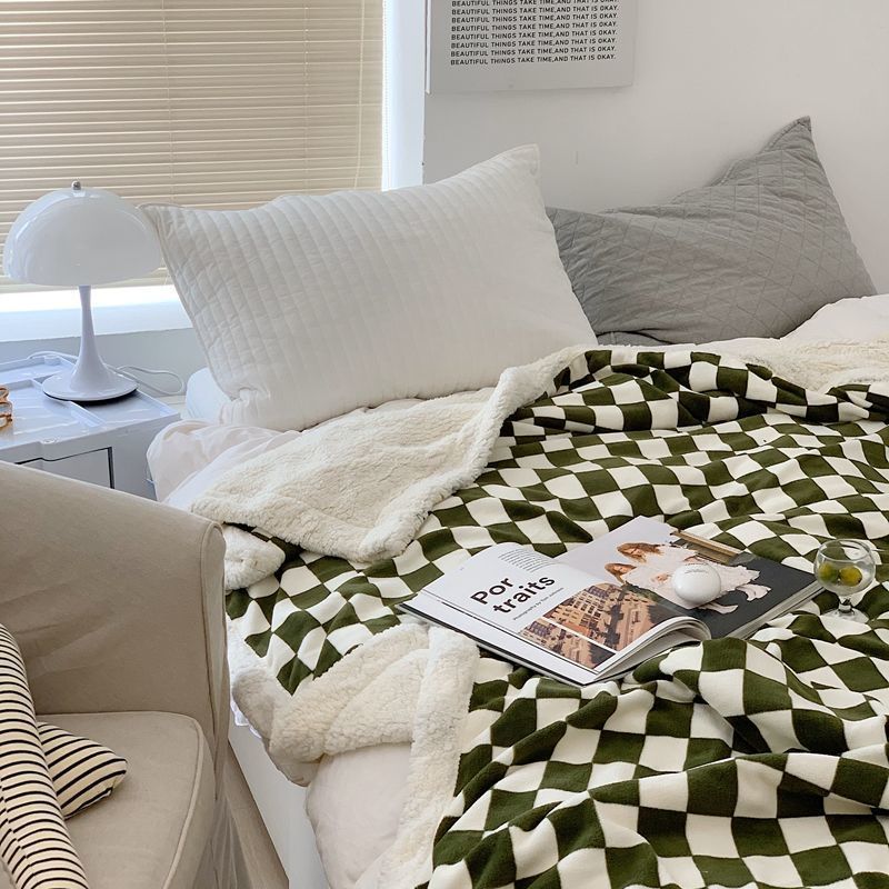 이중층 두꺼운 양털 담요는 이불 커버로 사용할 수 있습니다. 작은 신선한 점심 담요 가을 겨울 따뜻한 자동차 다기능 담요스토어 가기