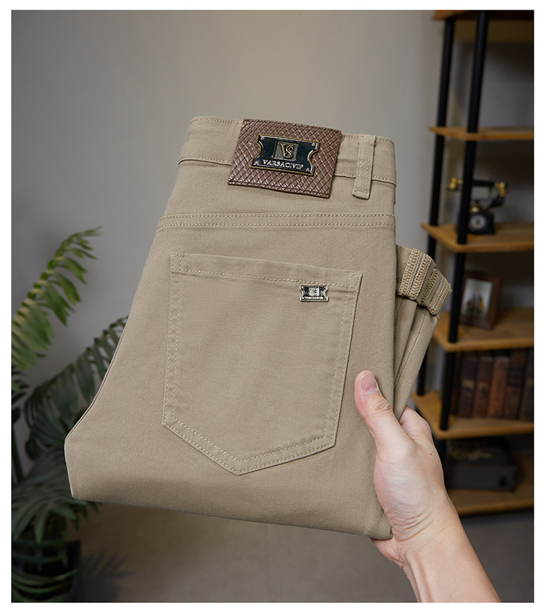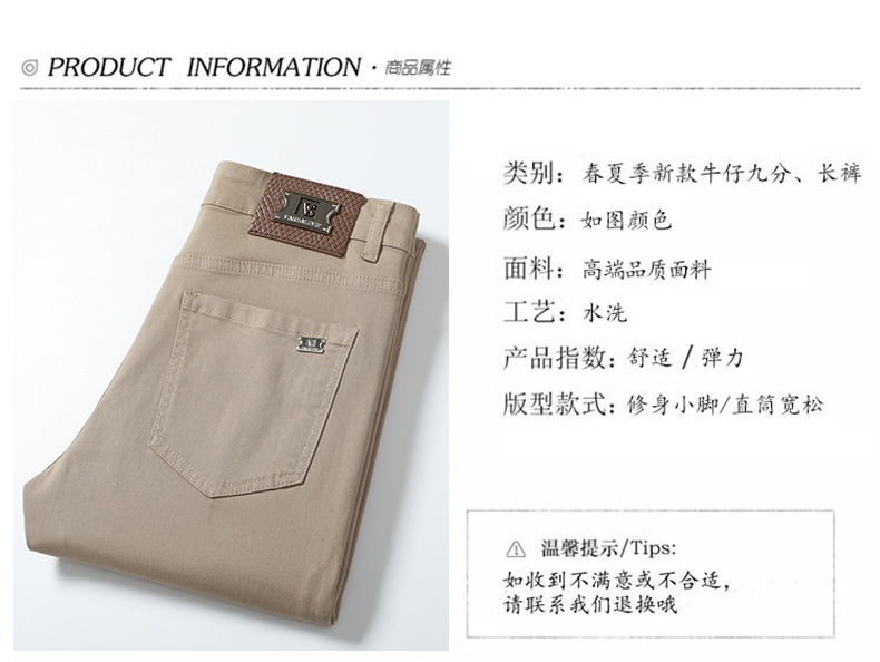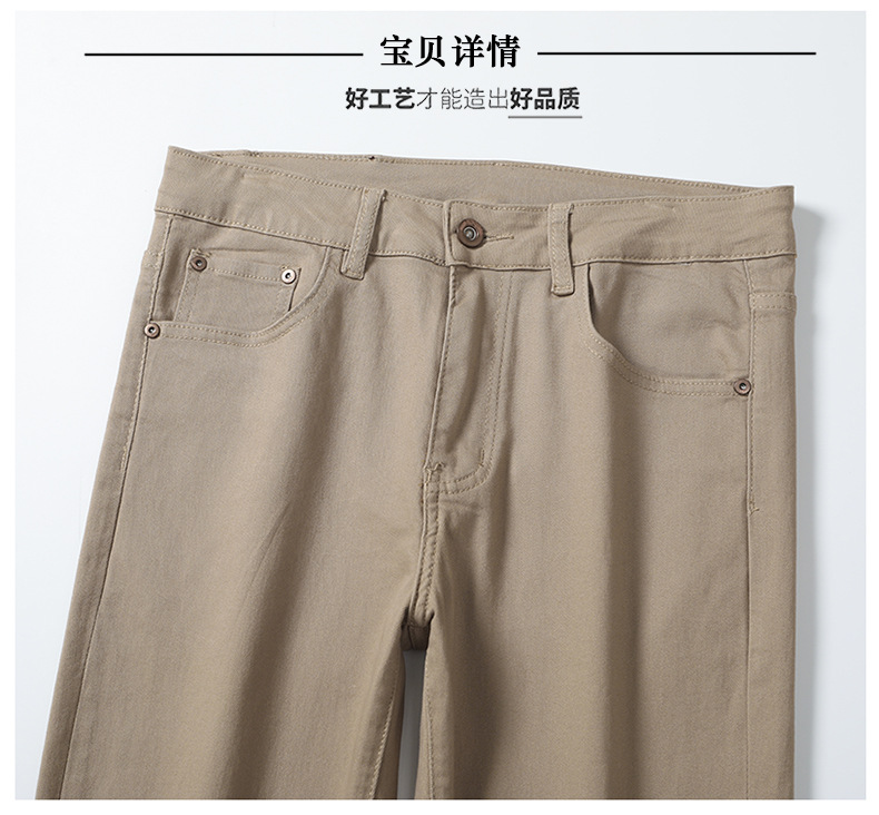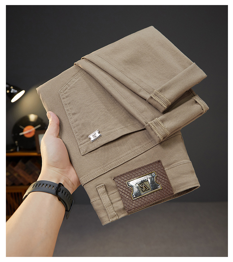 유럽 고급 트렌디 브랜드 남성용 카키 청바지 봄 여름 신상 슬림핏 스몰 피트 스트레치 패션 캐주얼 남성 9부 팬츠스토어 가기