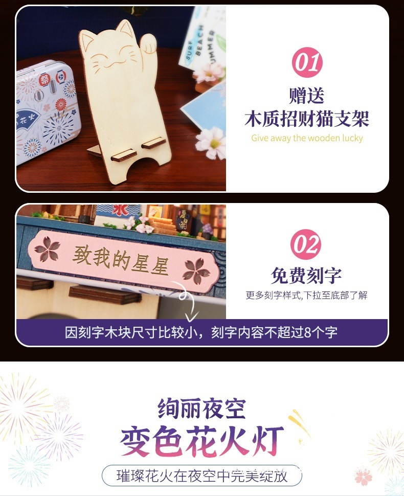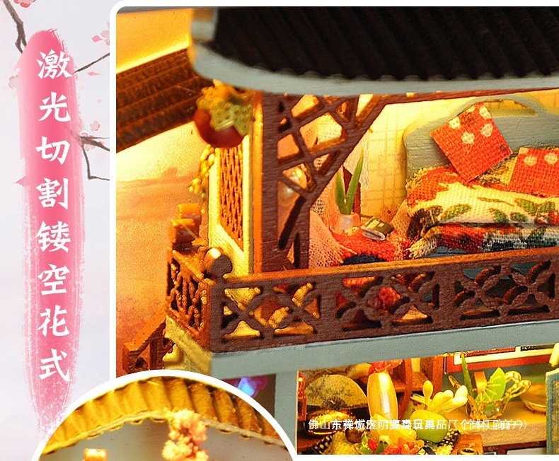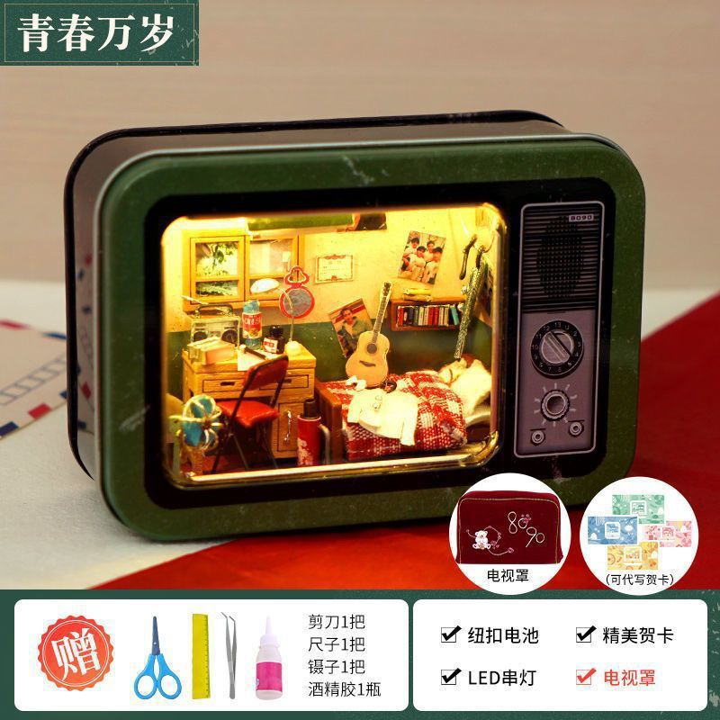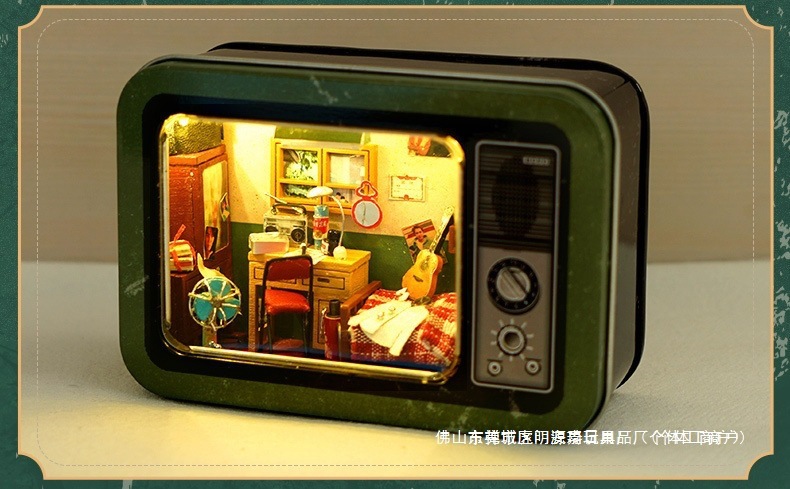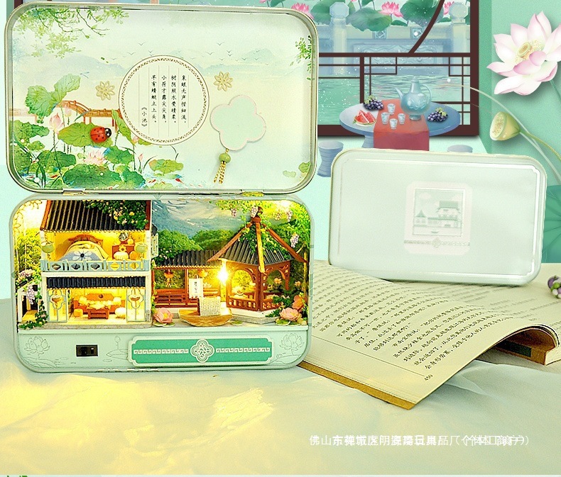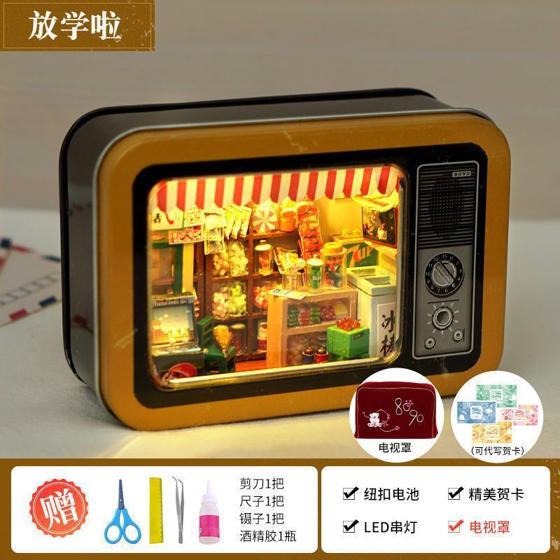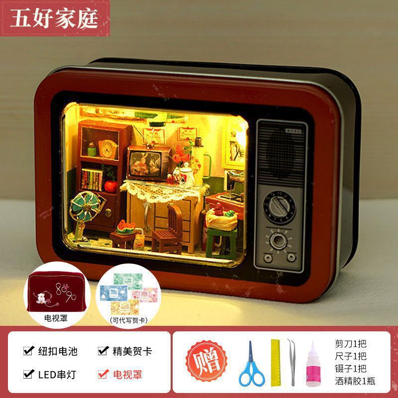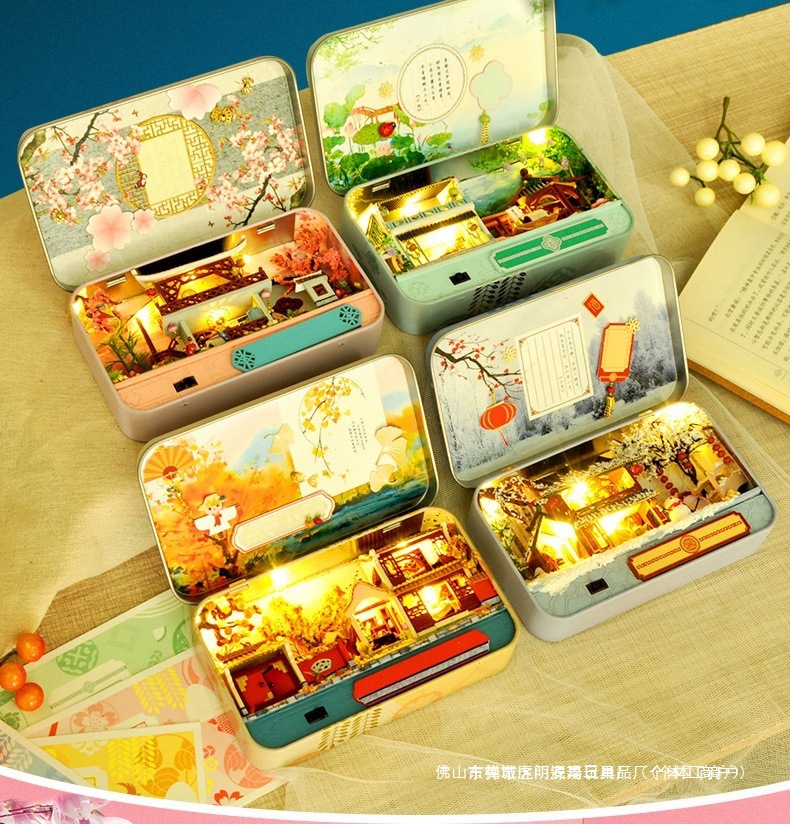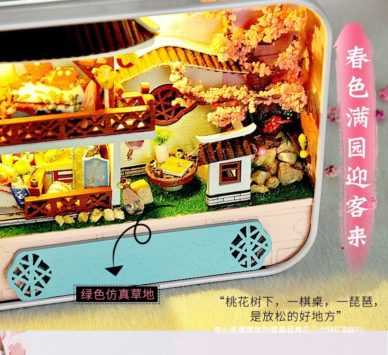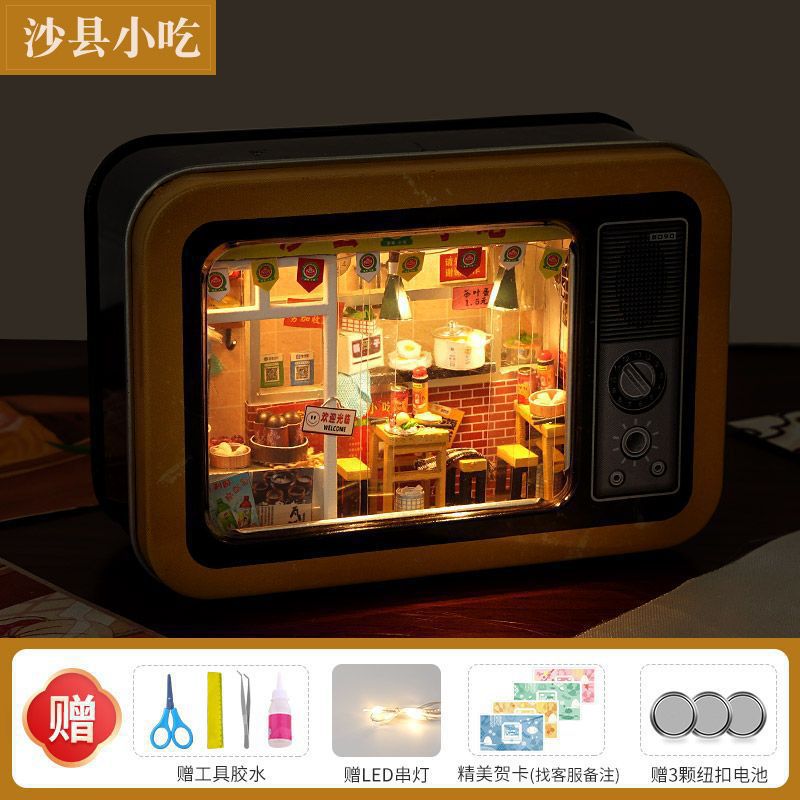 수제 오두막 조립 미니 상점 상자 극장 미니어처 장면 장식품 장난감 생일 소녀 나무 기타