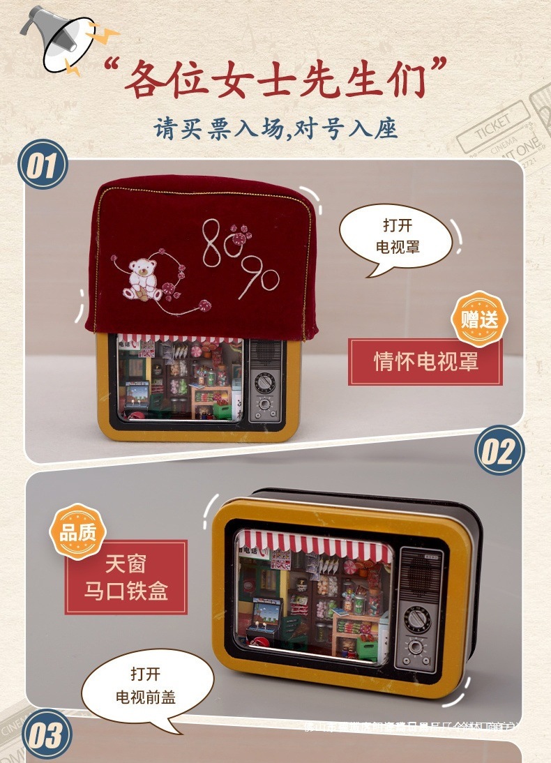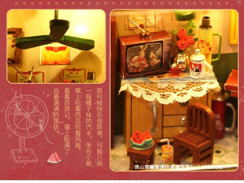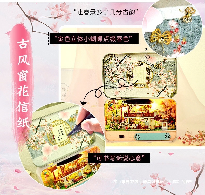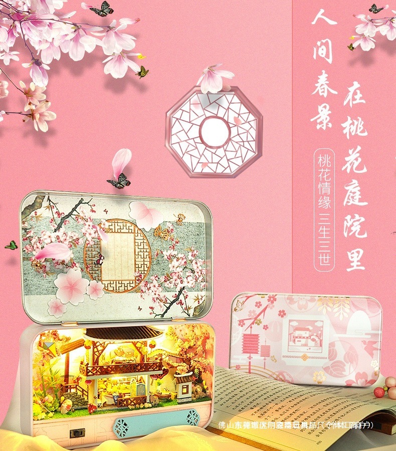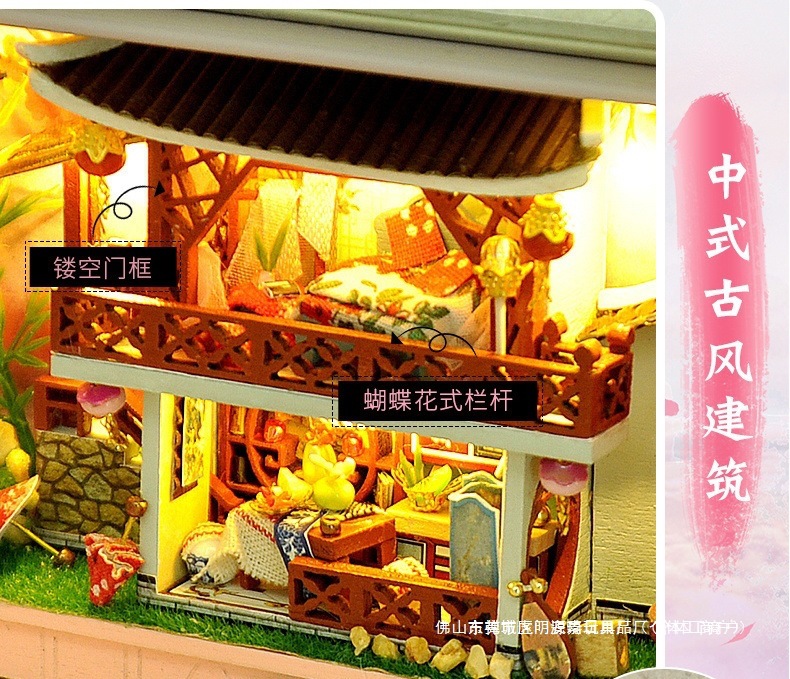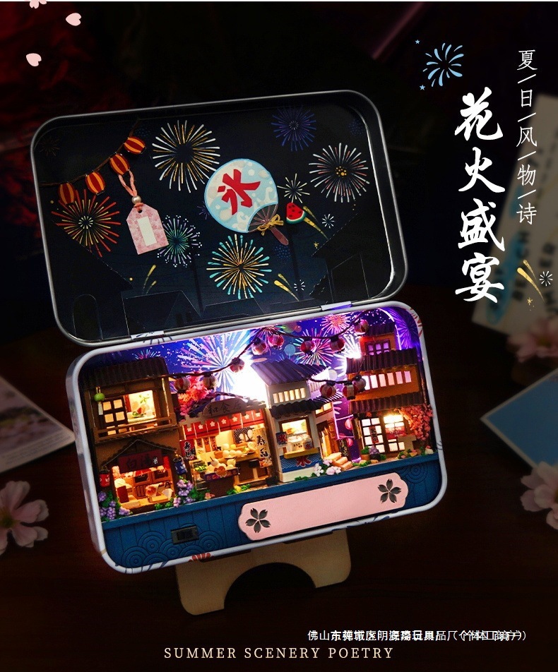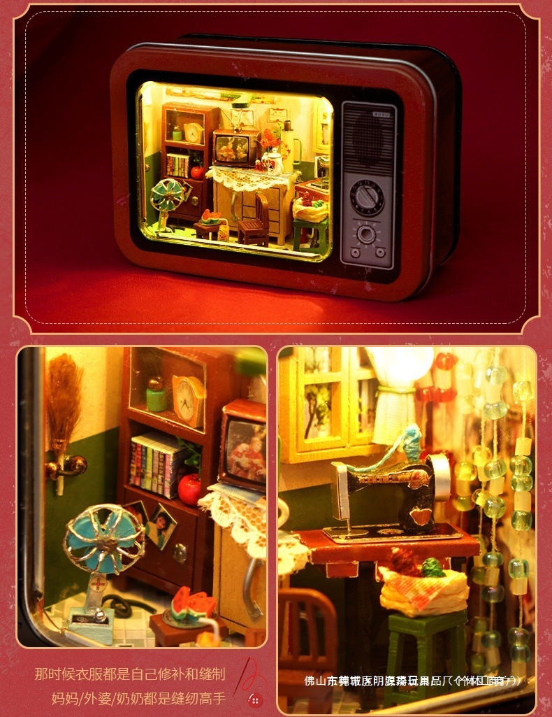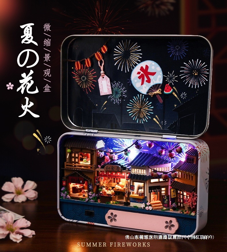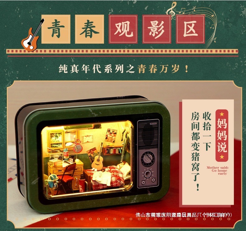 수제 오두막 조립 미니 상점 상자 극장 미니어처 장면 장식품 장난감 생일 소녀 나무 기타