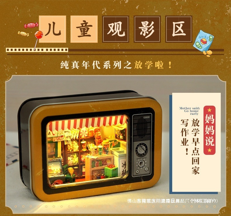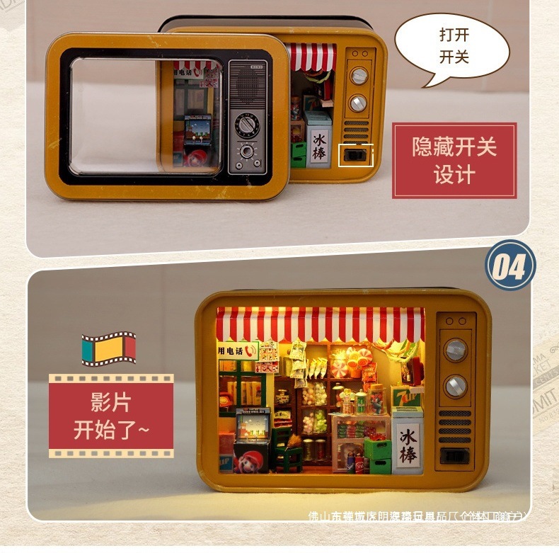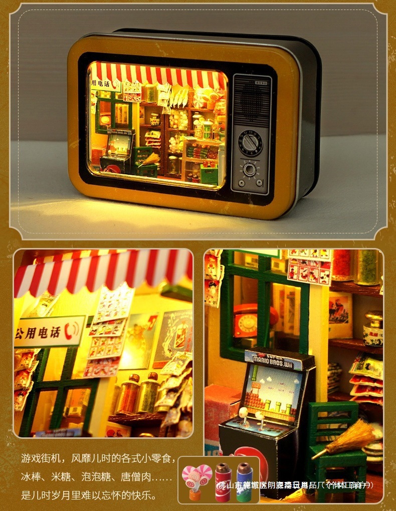 수제 오두막 조립 미니 상점 상자 극장 미니어처 장면 장식품 장난감 생일 소녀 나무 기타스토어 가기