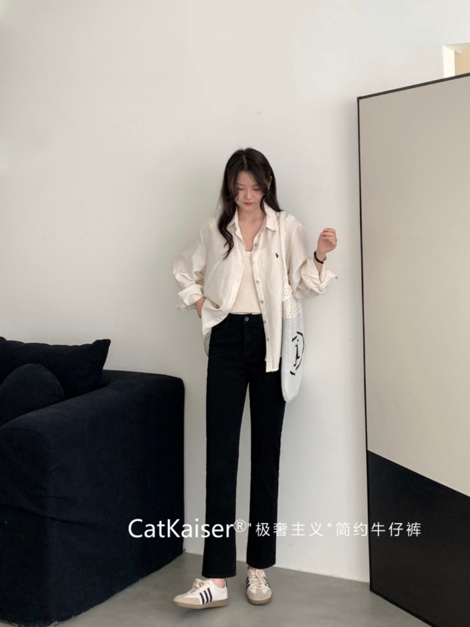 【品名】: "极奢主义"简约牛仔裤