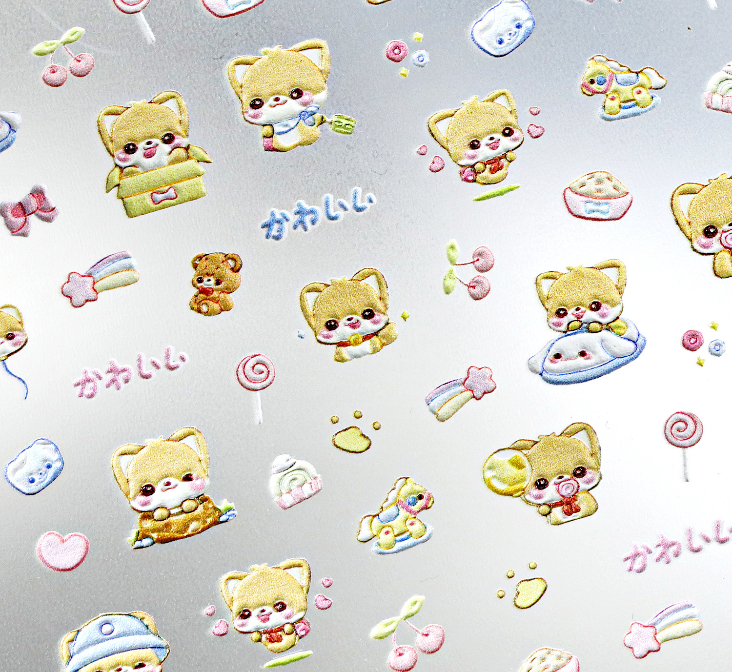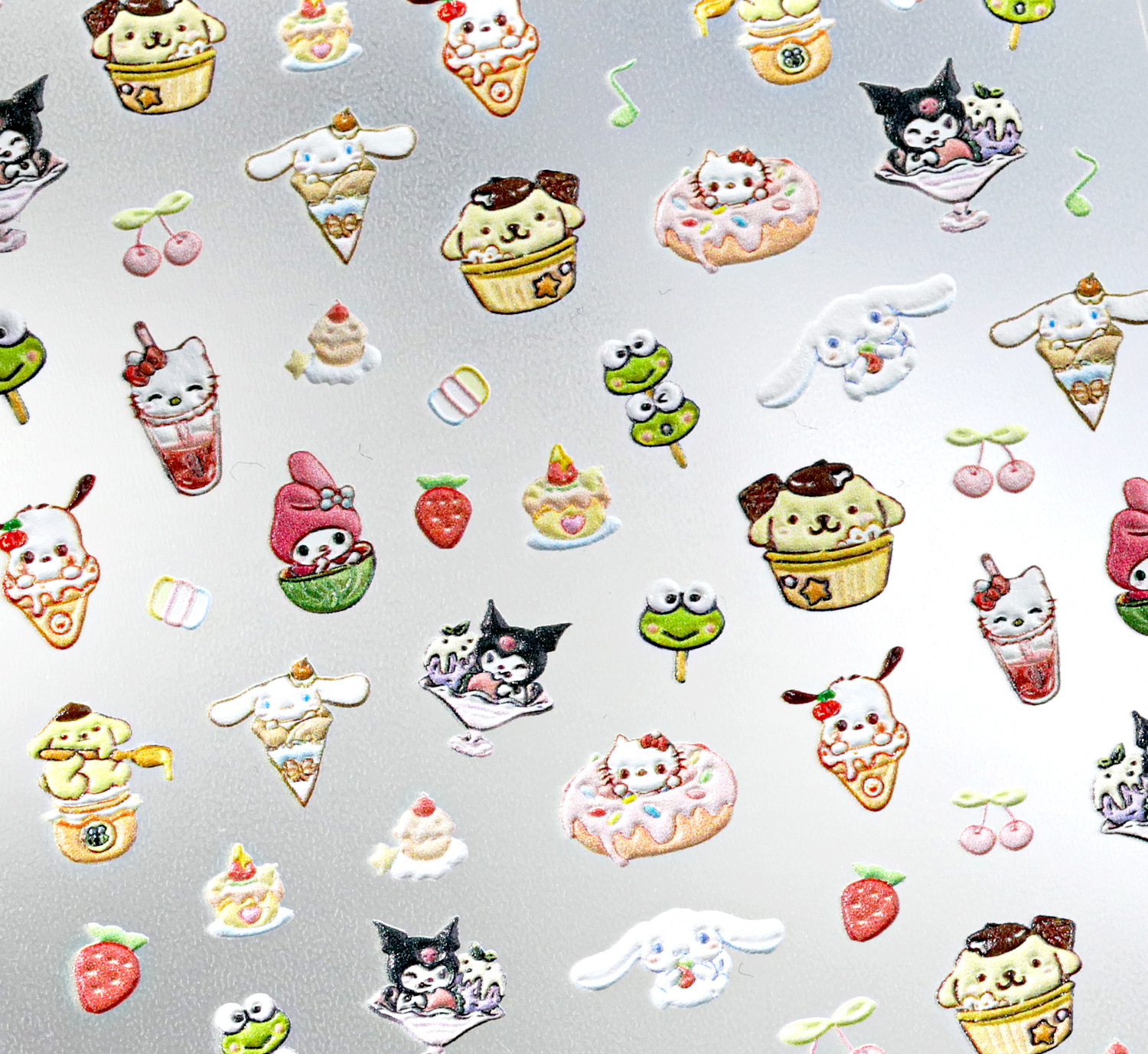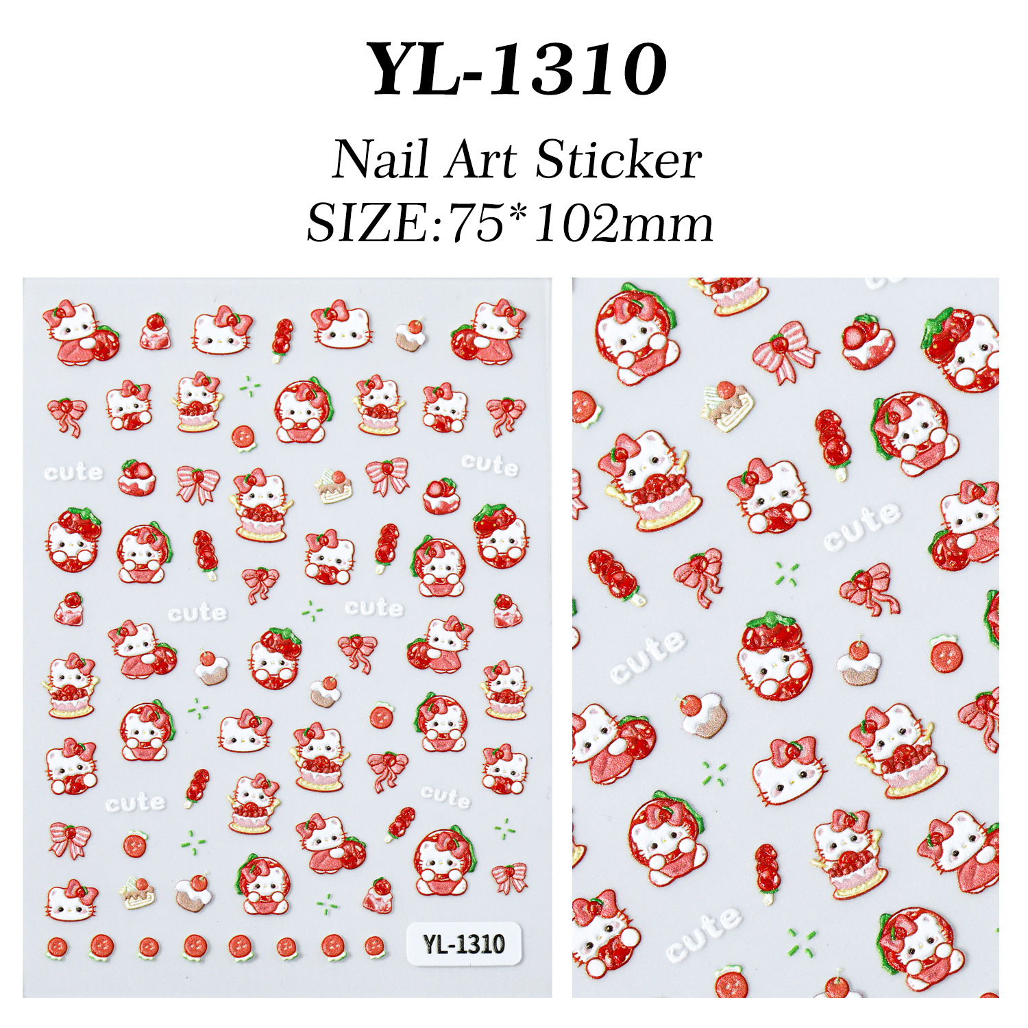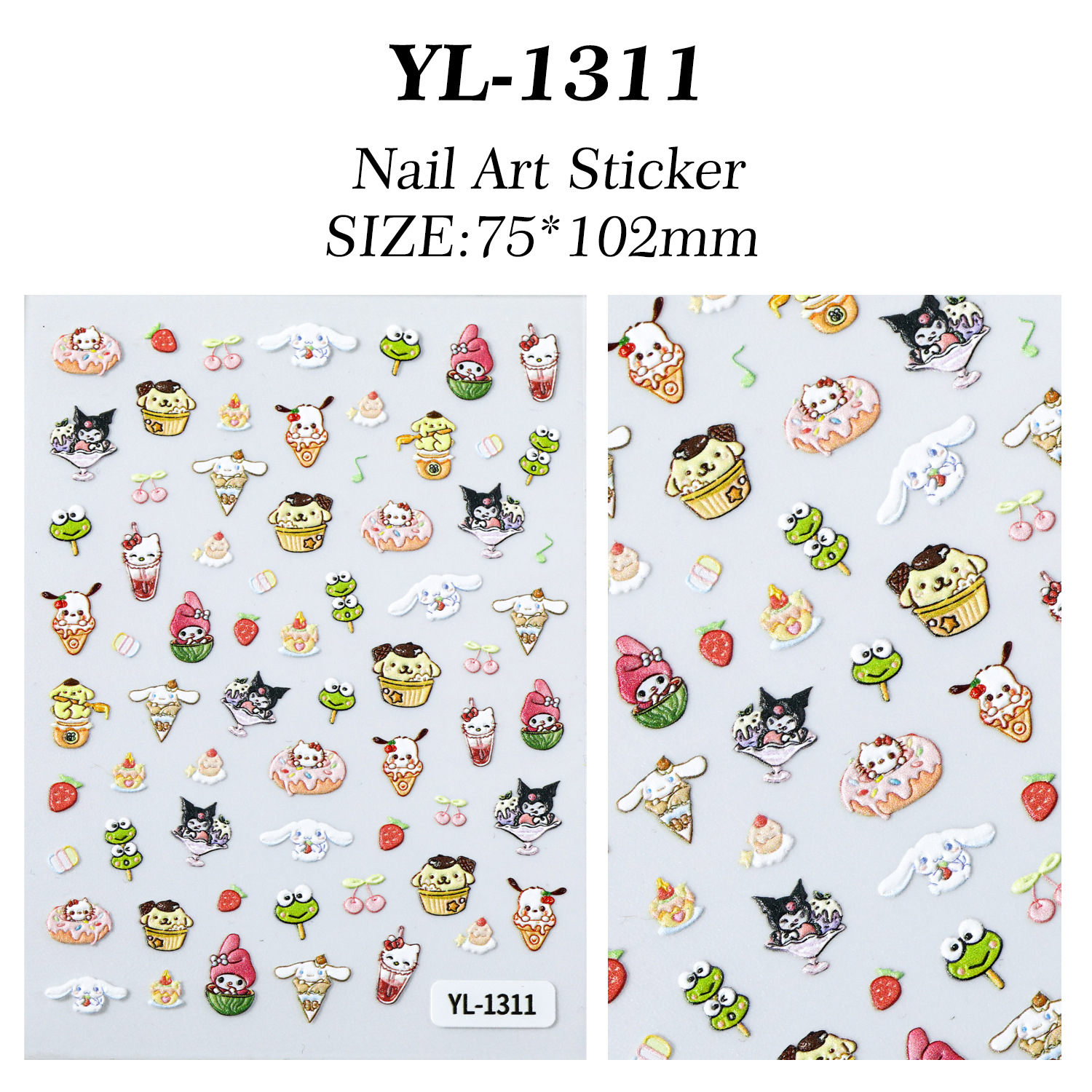 귀여운 산리오 네일 스티커 5D 양각 Merleti Patcha 개 KT 고양이 네일 아트 스티커 보석 YL