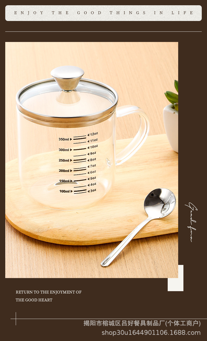 • 뚜껑 + 스푼이 포함된 고붕규산 유리 [350ML]