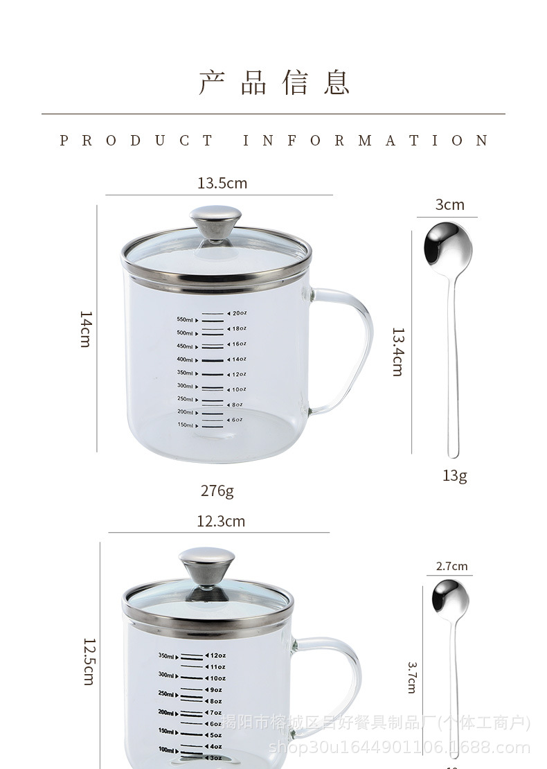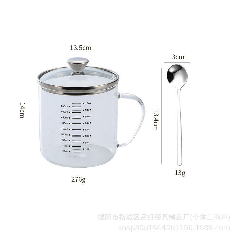 • 뚜껑 + 스푼이 포함된 고붕규산 유리 [550ML]