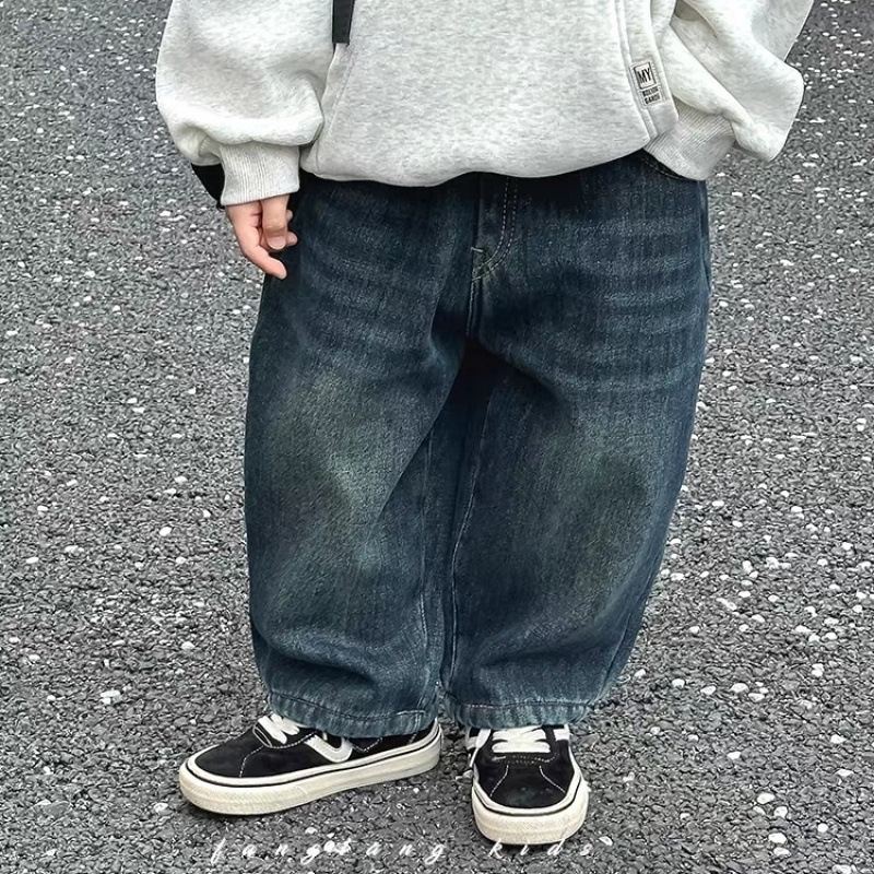 소년 청바지 2024 봄과 가을 새로운 스타일 다재다능하고 잘 생긴 어린이 캐주얼 바지 아기 유행 중대형 어린이 바지스토어 가기