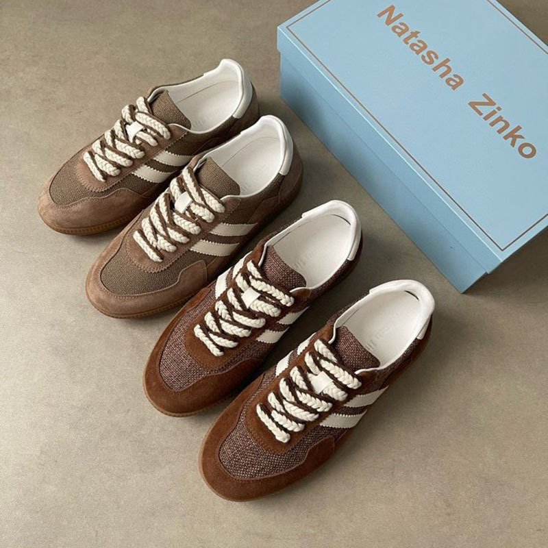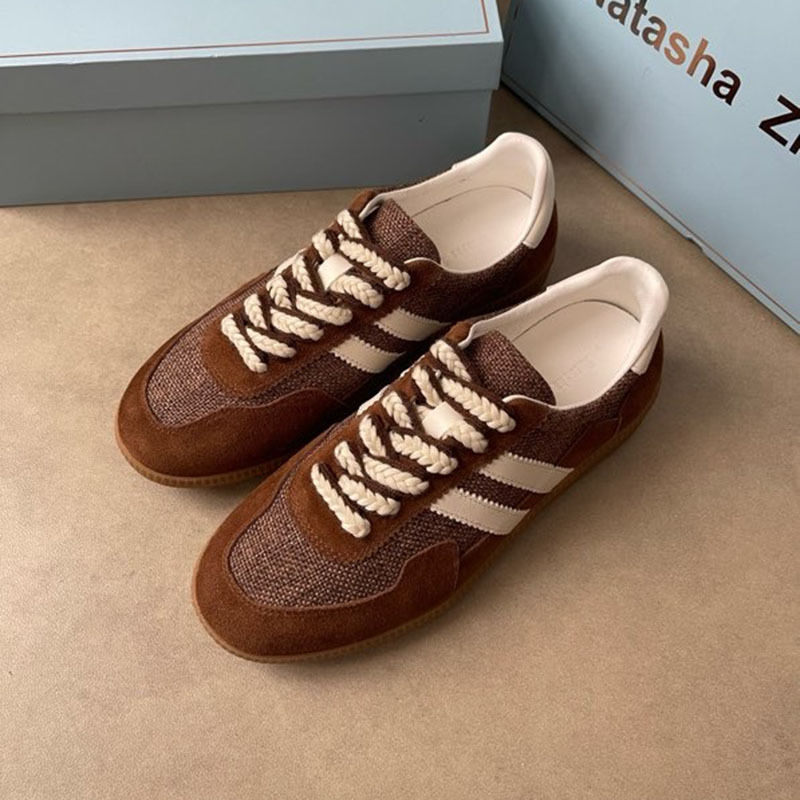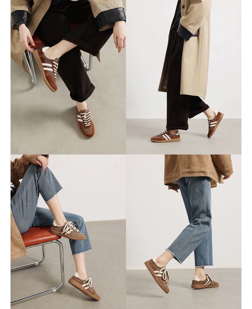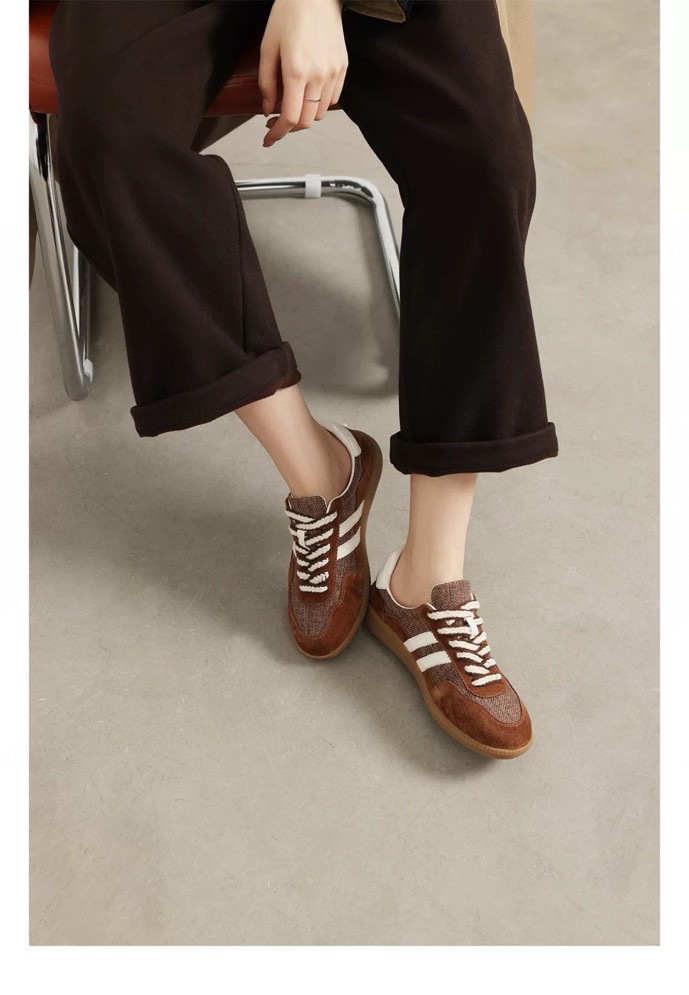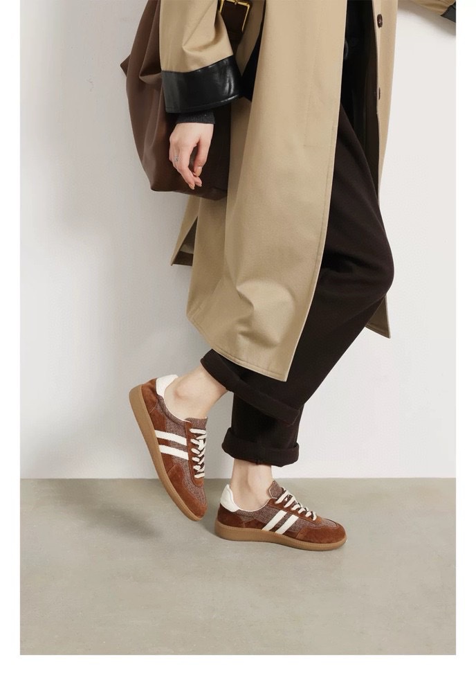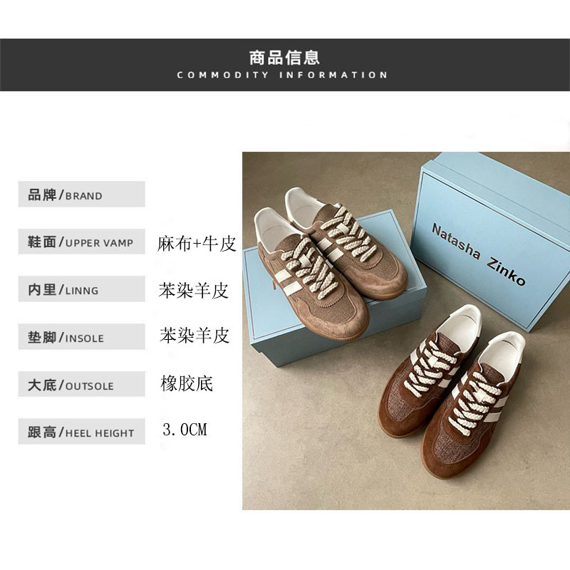 새로운 스타일의 재고 소가죽 버전, 같은 스타일의 복고풍 다용도 캐주얼 스포츠 스니커즈, 여성용 컬러 블록 두꺼운 밑창 육군 훈련 신발, 여성용 레이스 업