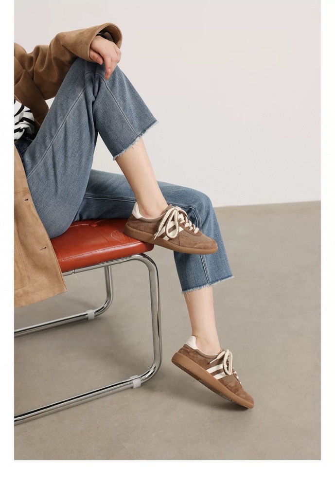 새로운 스타일의 재고 소가죽 버전, 같은 스타일의 복고풍 다용도 캐주얼 스포츠 스니커즈, 여성용 컬러 블록 두꺼운 밑창 육군 훈련 신발, 여성용 레이스 업스토어 가기