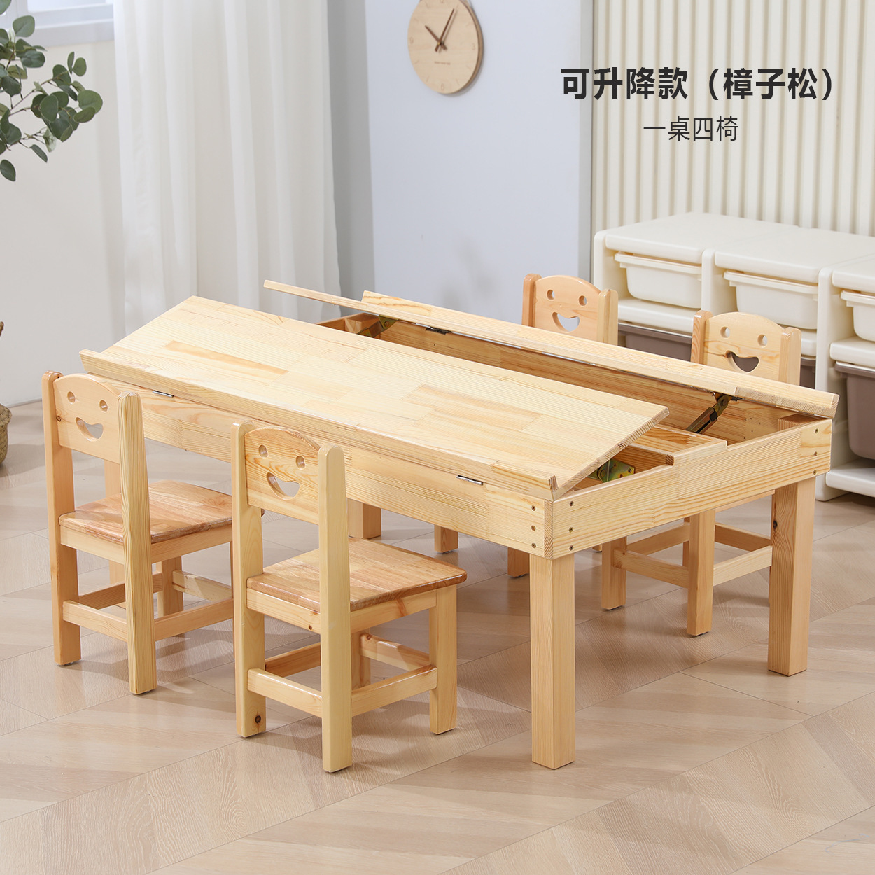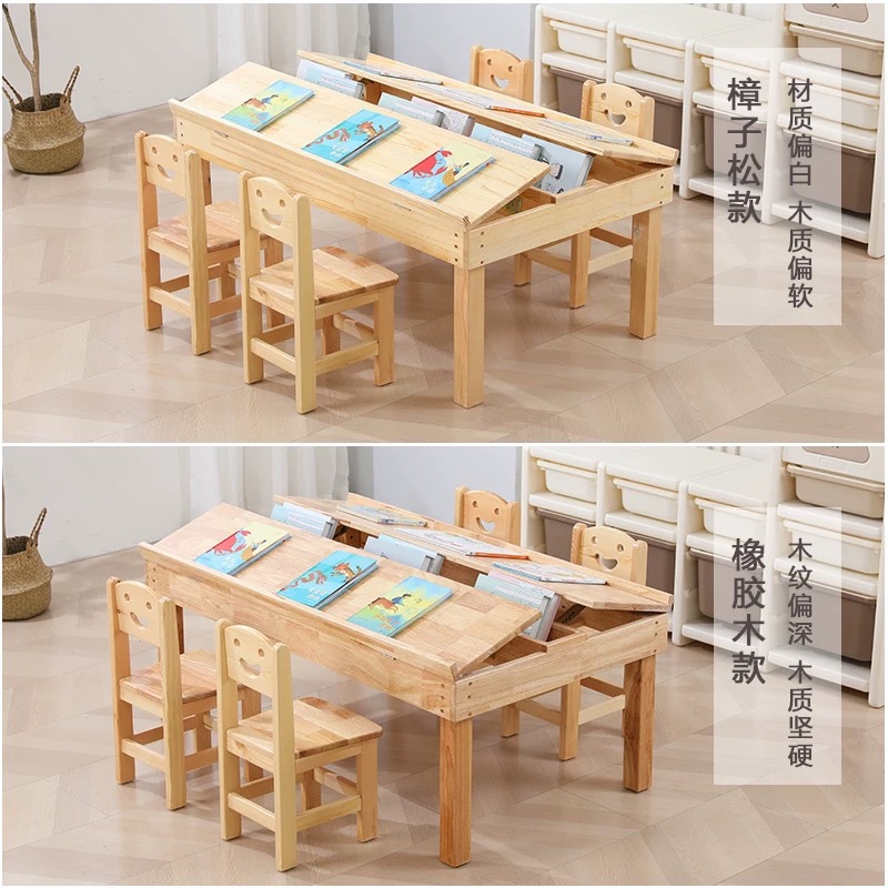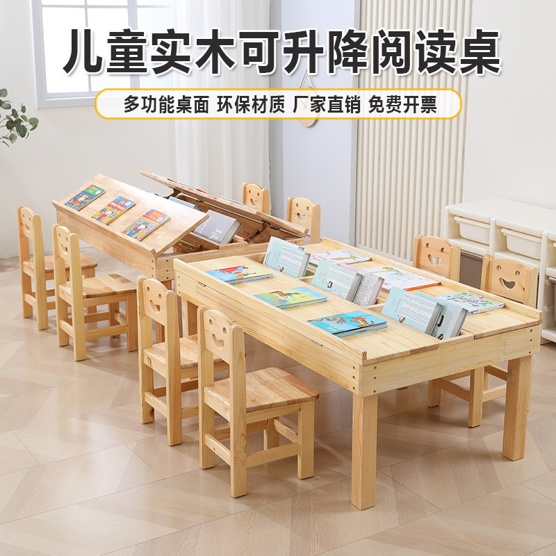 유치원 단단한 나무 리프팅 독서 테이블 어린이 도서관 독서실 학습 테이블 그림관 특수 그림 테이블스토어 가기