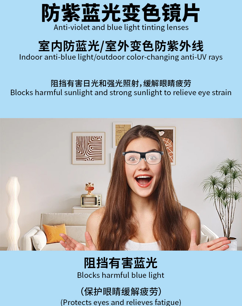 국경을 넘는 개인 맞춤형 GL 음악 감상 및 통화 겸용 변색 렌즈 카메라 AI 지능형 번역 블루투스 안경 맞춤 제작