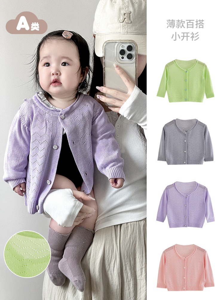 아기 코트, 얇은 봄 여름 옷, 작은 월령 외출 공주, 다재다능하고 세련된 한 살짜리 여자 아기 옷 가디건스토어 가기