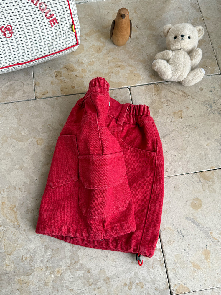 안전 바지를 입은 소녀 데님 오버스커트 2025 여름 새 일본과 한국 어린이 작업복 포켓 연필 스커트 짧은 치마스토어 가기