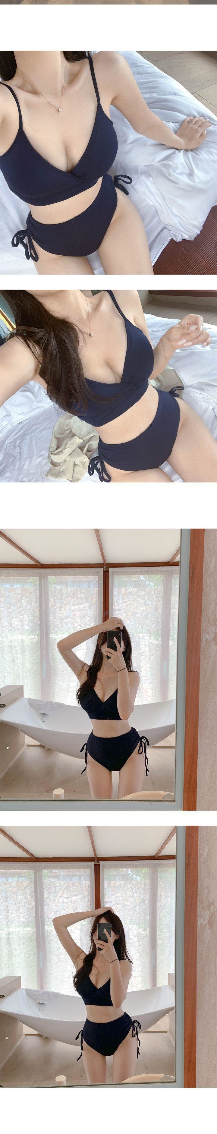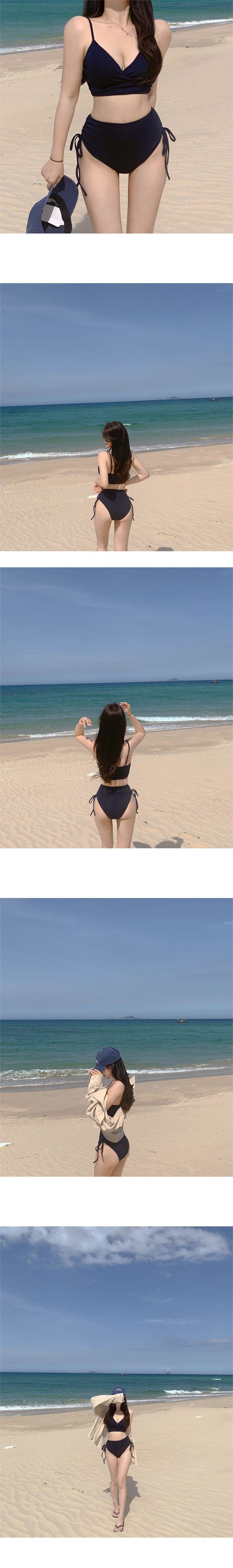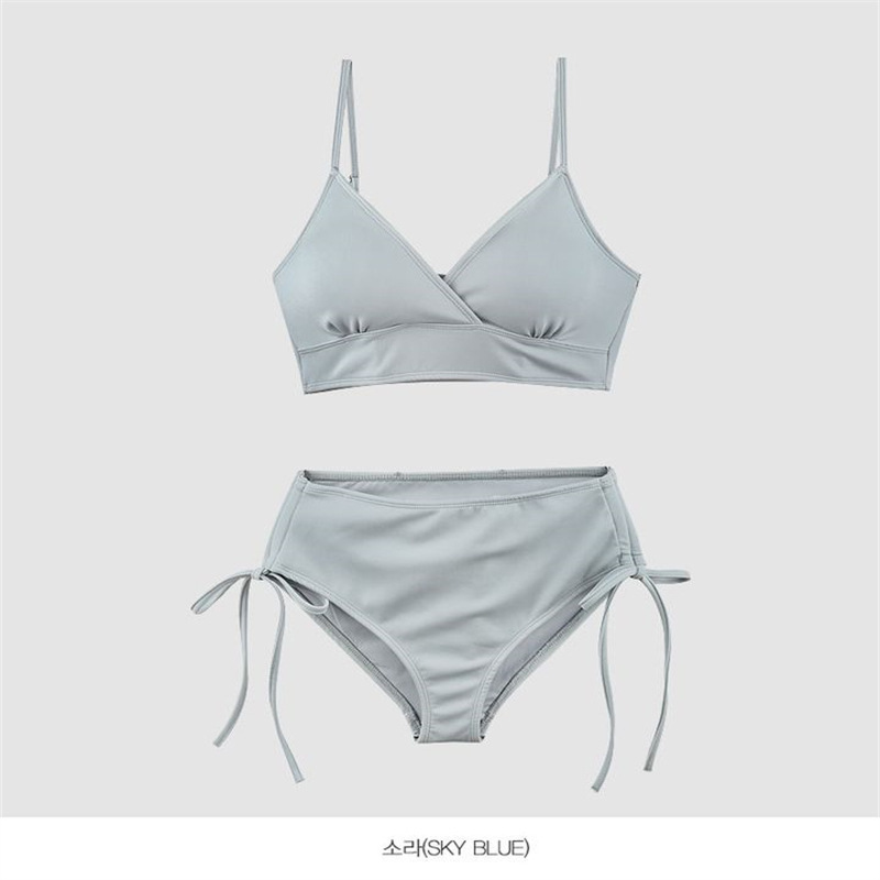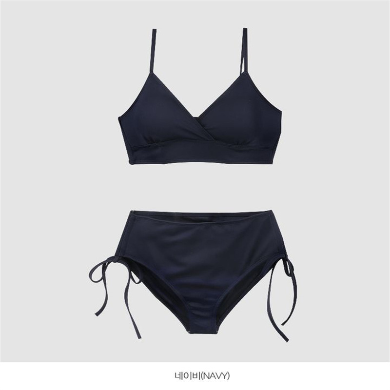 2025 새로운 한국 스플릿 수영복 여성 솔리드 컬러 타이트 하이 웨이스트 커버 배꼽 슬리밍 드로스트링 온천 비키니
