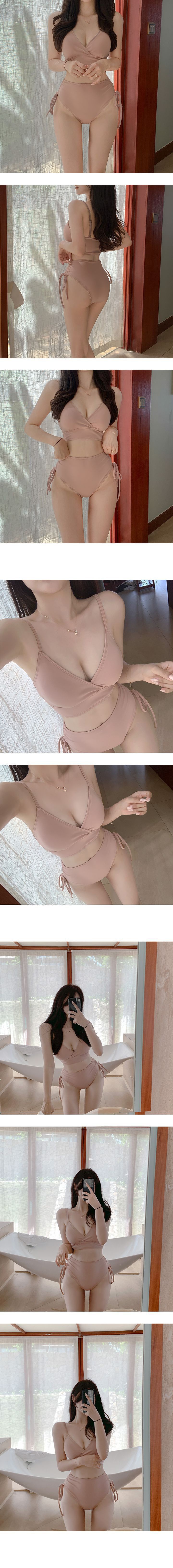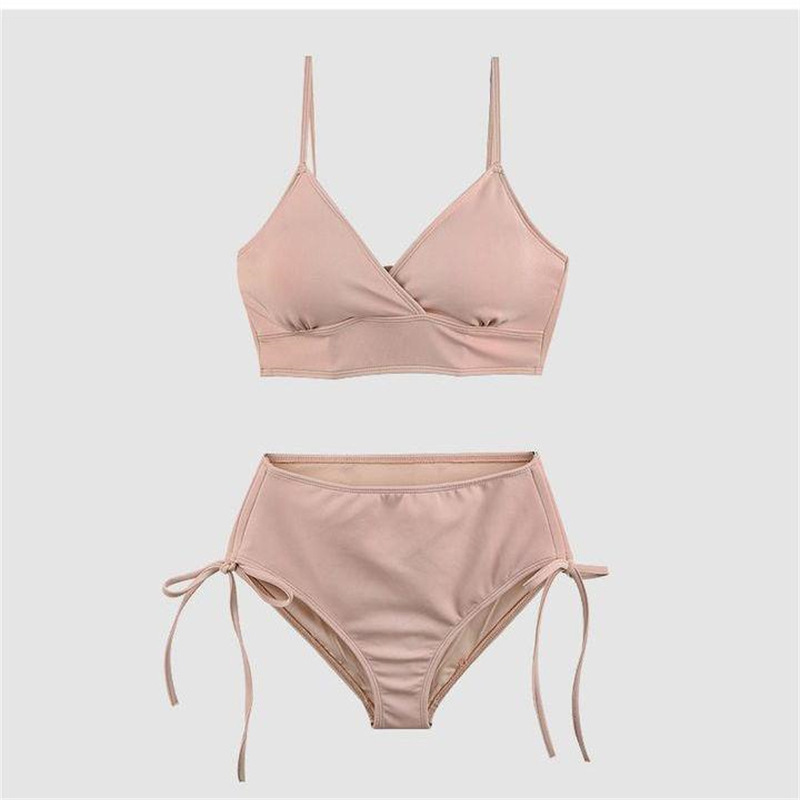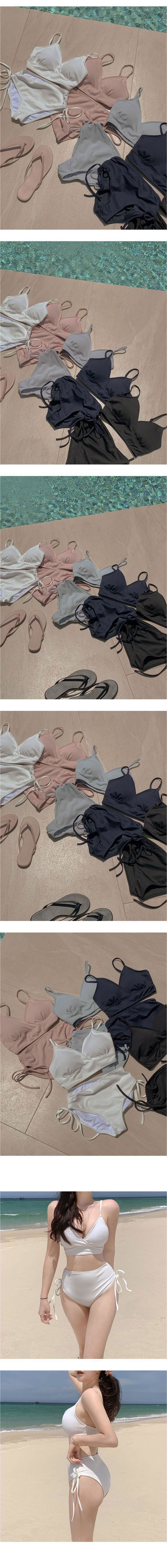 2025 새로운 한국 스플릿 수영복 여성 솔리드 컬러 타이트 하이 웨이스트 커버 배꼽 슬리밍 드로스트링 온천 비키니