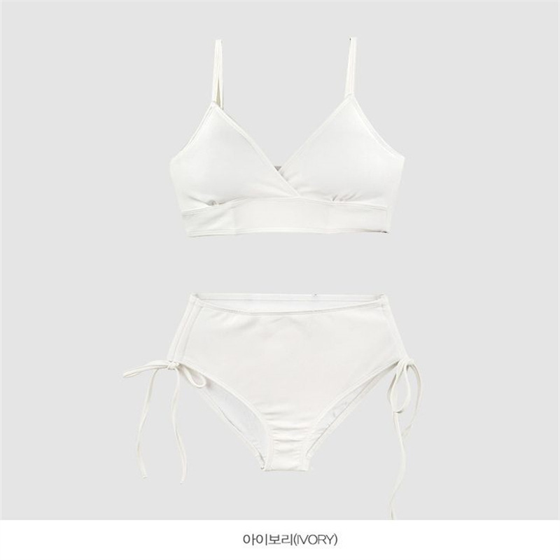 2025 새로운 한국 스플릿 수영복 여성 솔리드 컬러 타이트 하이 웨이스트 커버 배꼽 슬리밍 드로스트링 온천 비키니스토어 가기