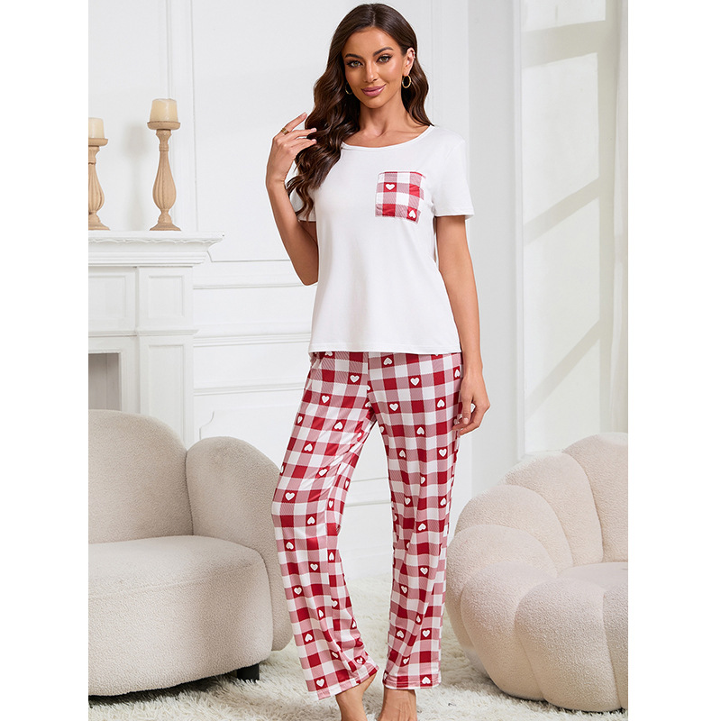 2025 AliExpress Amazon 새로운 붉은 격자 무늬 인쇄 홈 파자마 바지 국경 간 인기 여성 바지 반팔