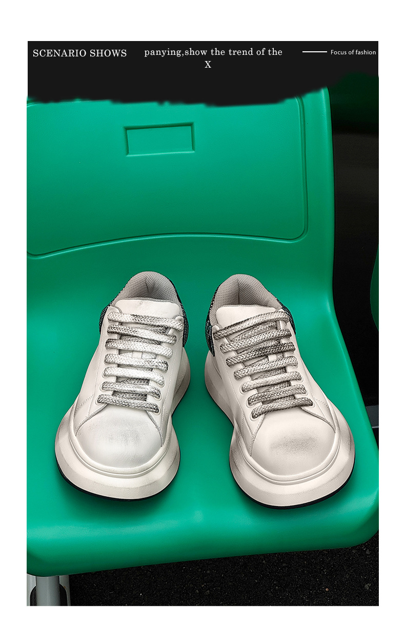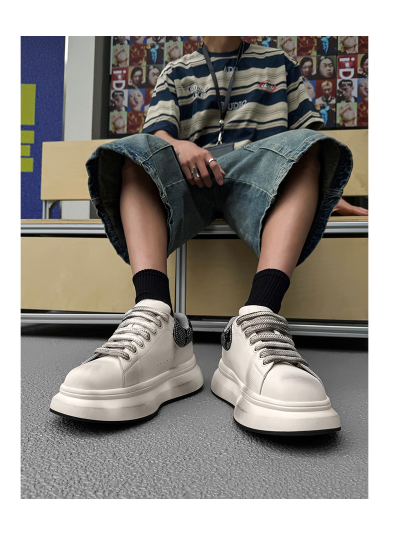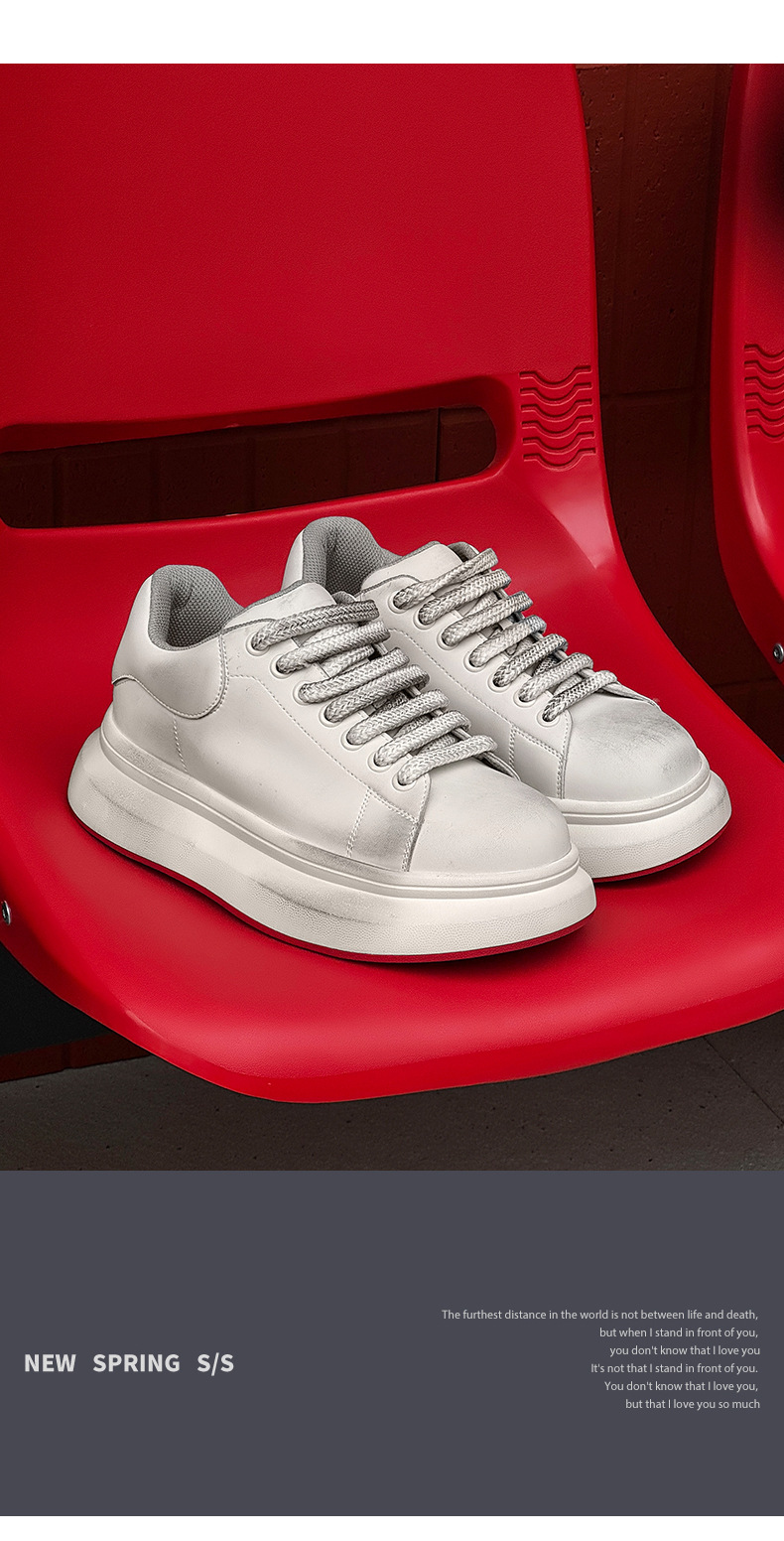 2025 봄과 가을 패션 간단한 남성 흰색 신발 편안한 두꺼운 단독 높이 증가 유행 올 매치 스포츠 남성 신발스토어 가기