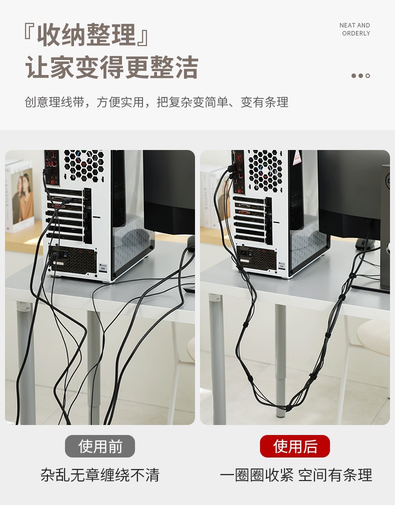 데이터 케이블 보관함, 벨크로 케이블 타이, 컴퓨터 케이블 관리자, 데스크탑 케이블 고정 스트랩스토어 가기