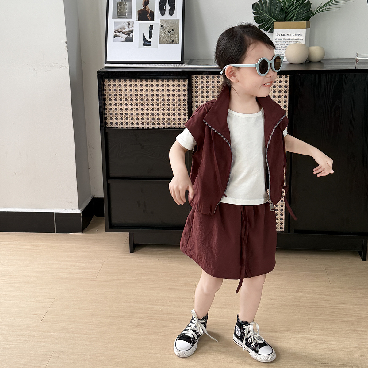 여자 선스크린 의류 세트 한국 스타일 외국식 새 캐주얼 조끼 반바지 아기 · 어린이