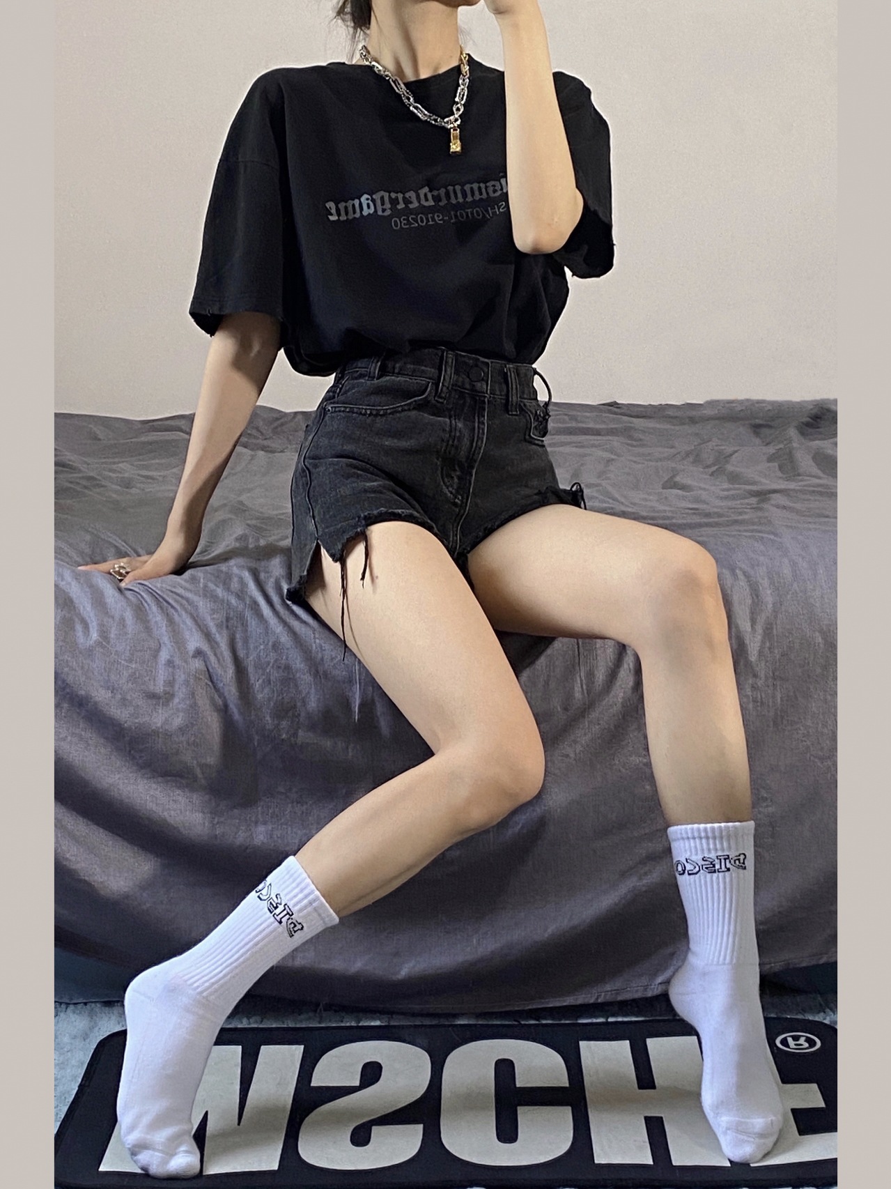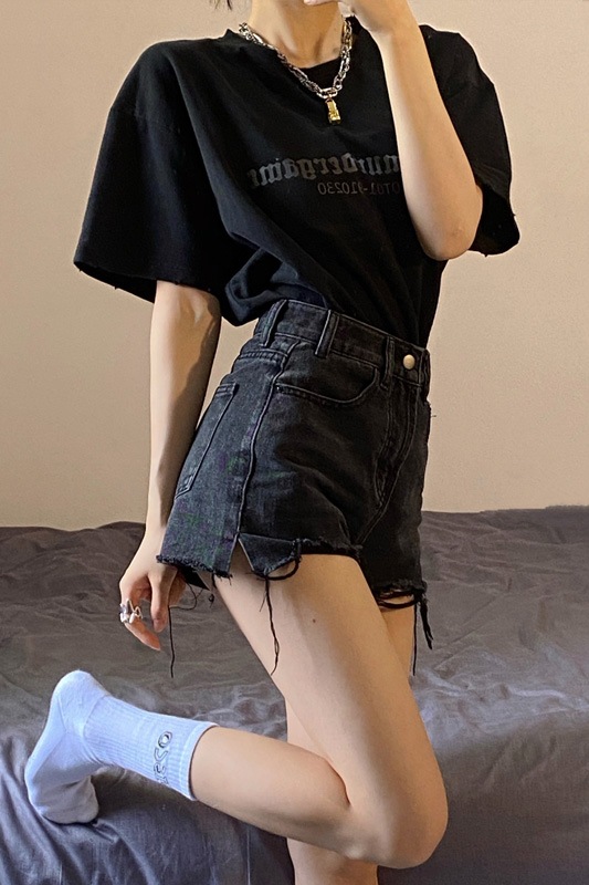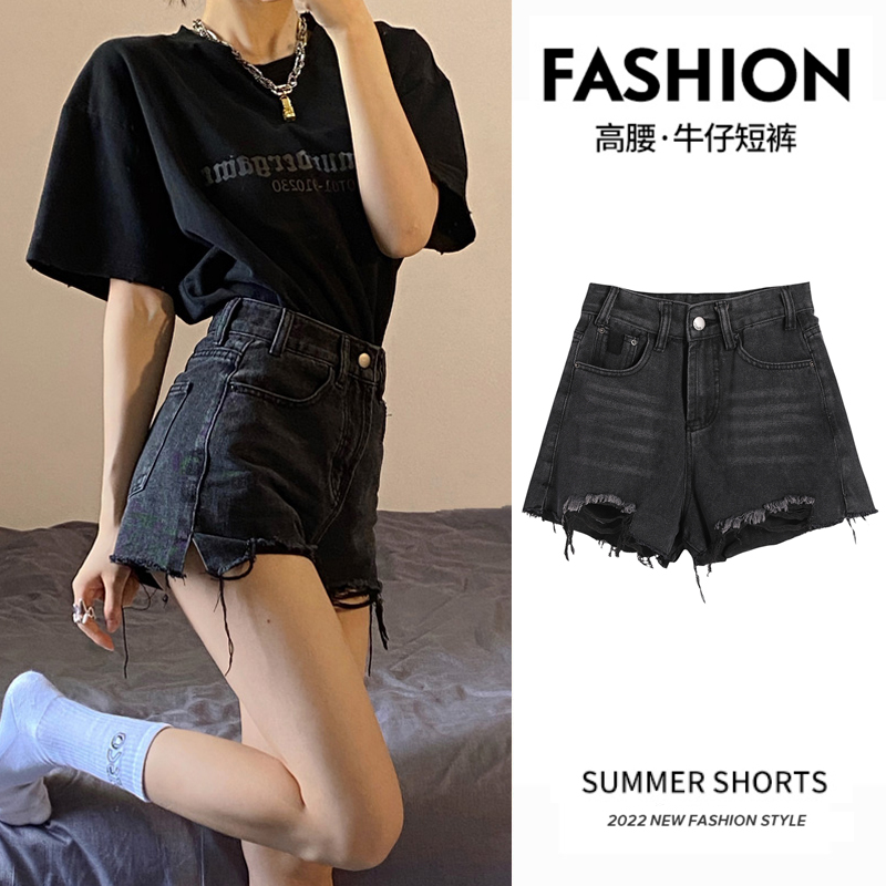 검은 여름 높은 허리 A 라인 핫 걸스 데님 반바지 여성 플러스 사이즈 느슨한 슬림 넓은 다리 핫 바지 하이 스트리트 Ins 트렌디스토어 가기