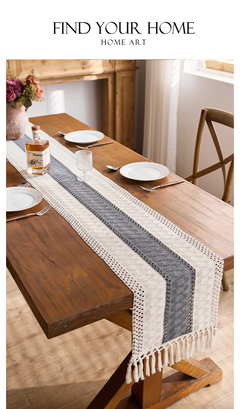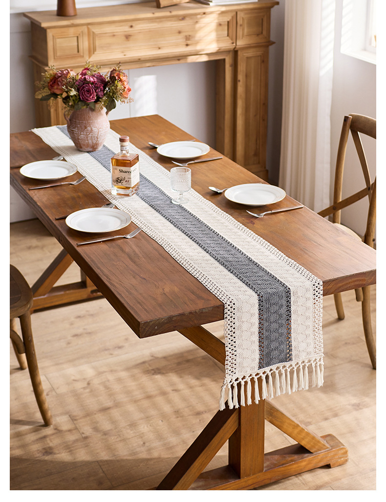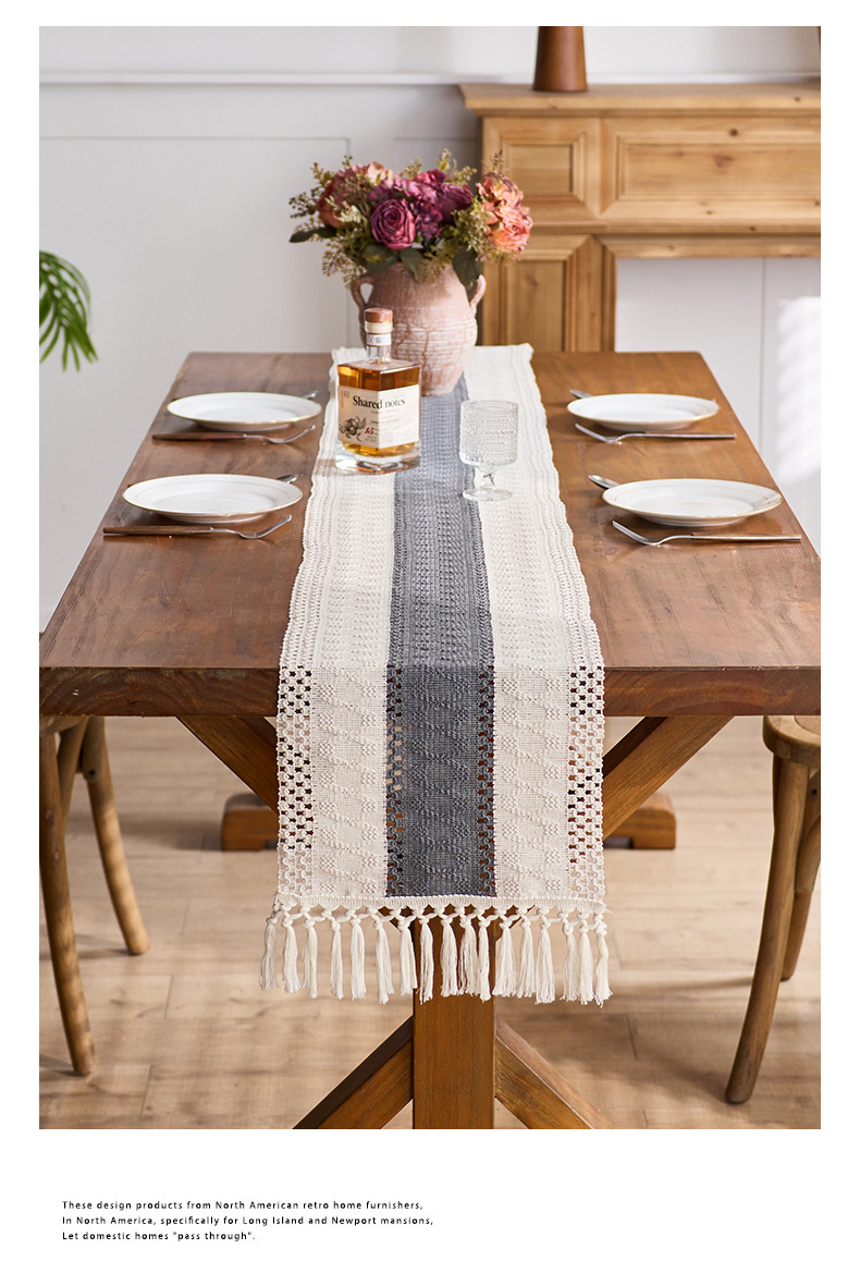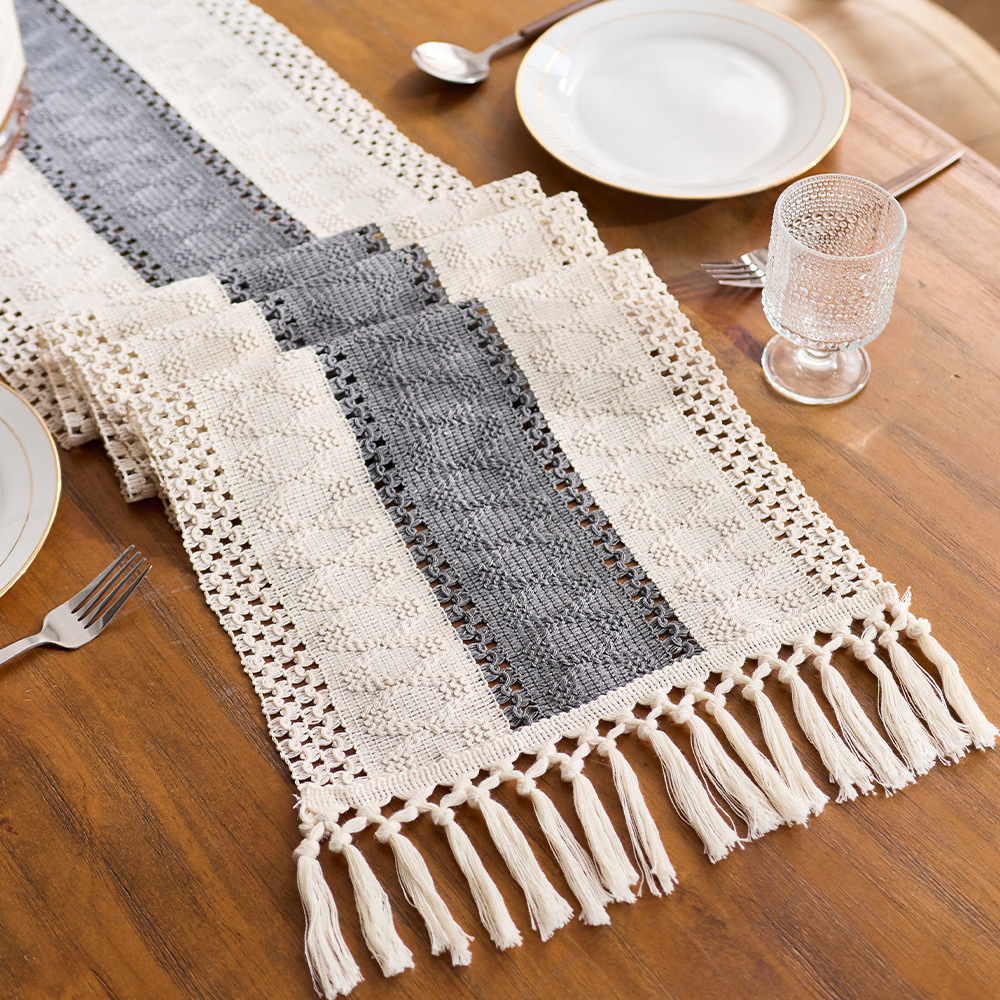보헤미안 스타일 면 짠 술 테이블 러너 국경 미국 국가 농가 짠 홈 장식 크리스마스 테이블 러너스토어 가기
