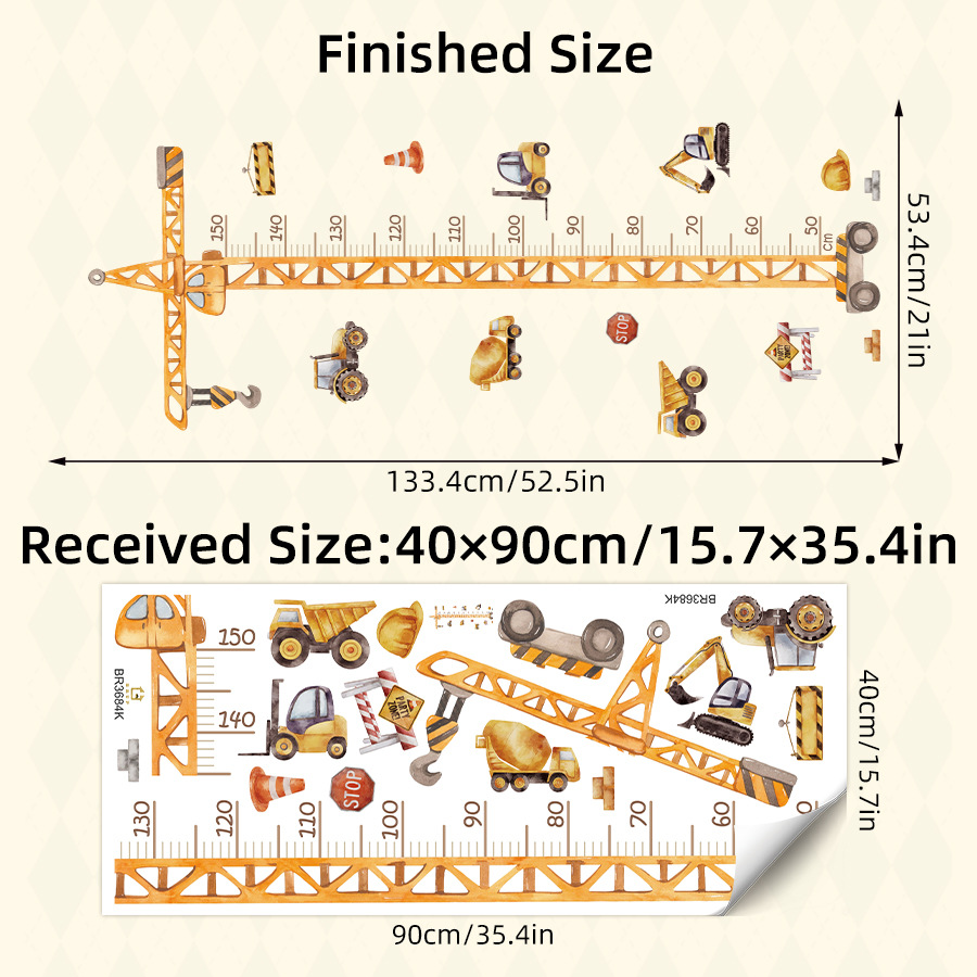 BR3684K 굴삭기 타워 크레인 높이 스티커 침실 룸 거실 측정 높이 눈금자 어린이 방 벽 스티커