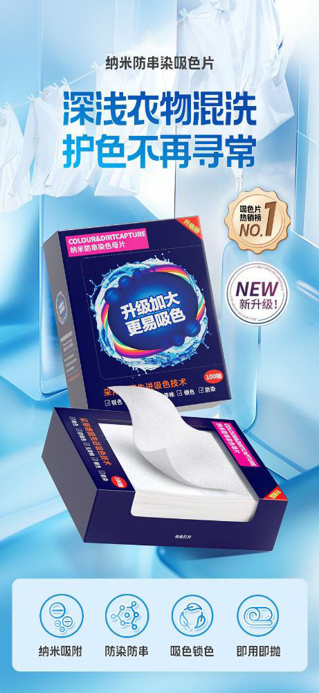 세탁 용지를 혼합하는 염색 세탁기를 방지하기 위해 끈 염색 및 색상 흡수 마스터 배치 세탁 정제 의류 의류 100 정