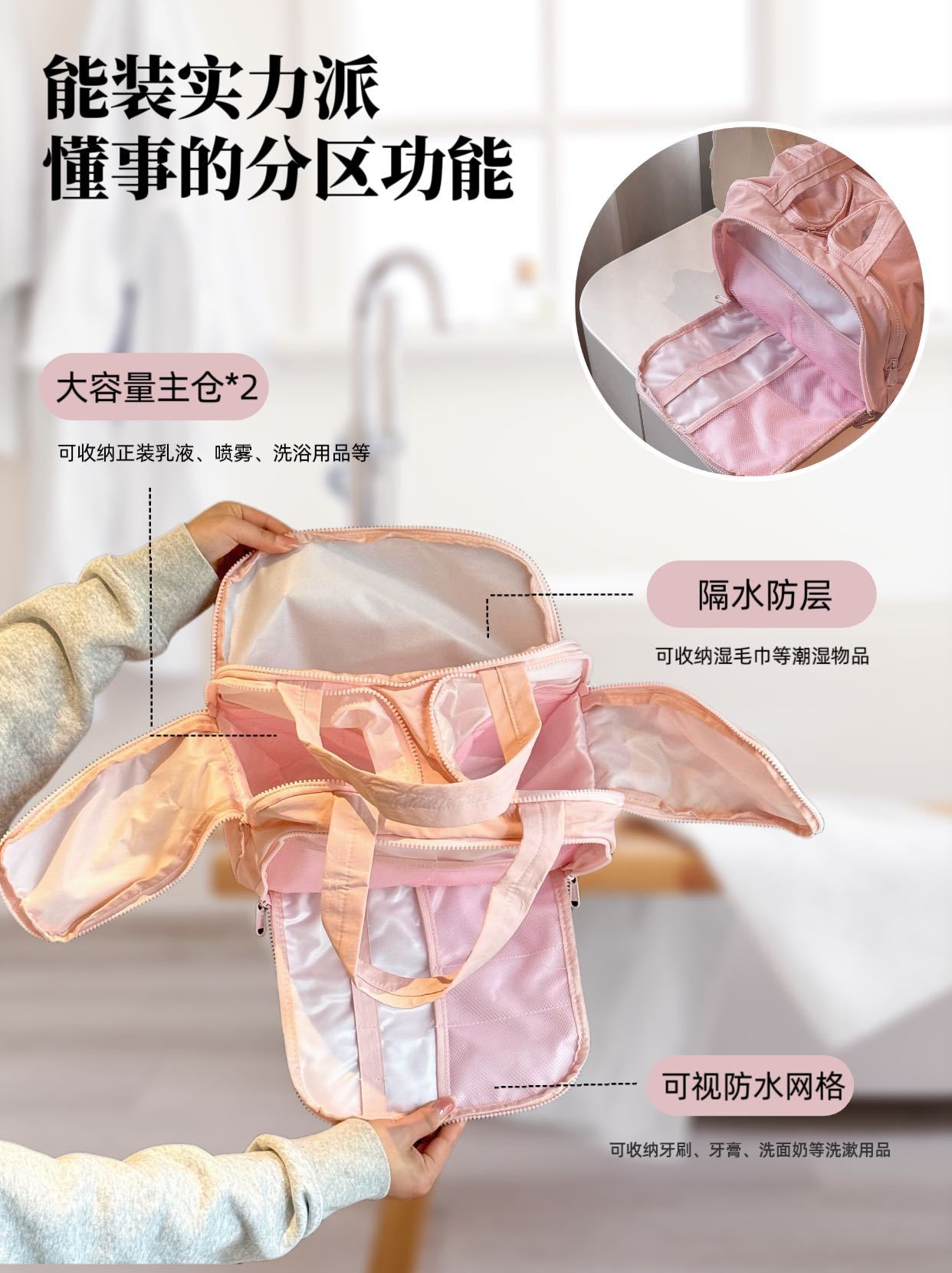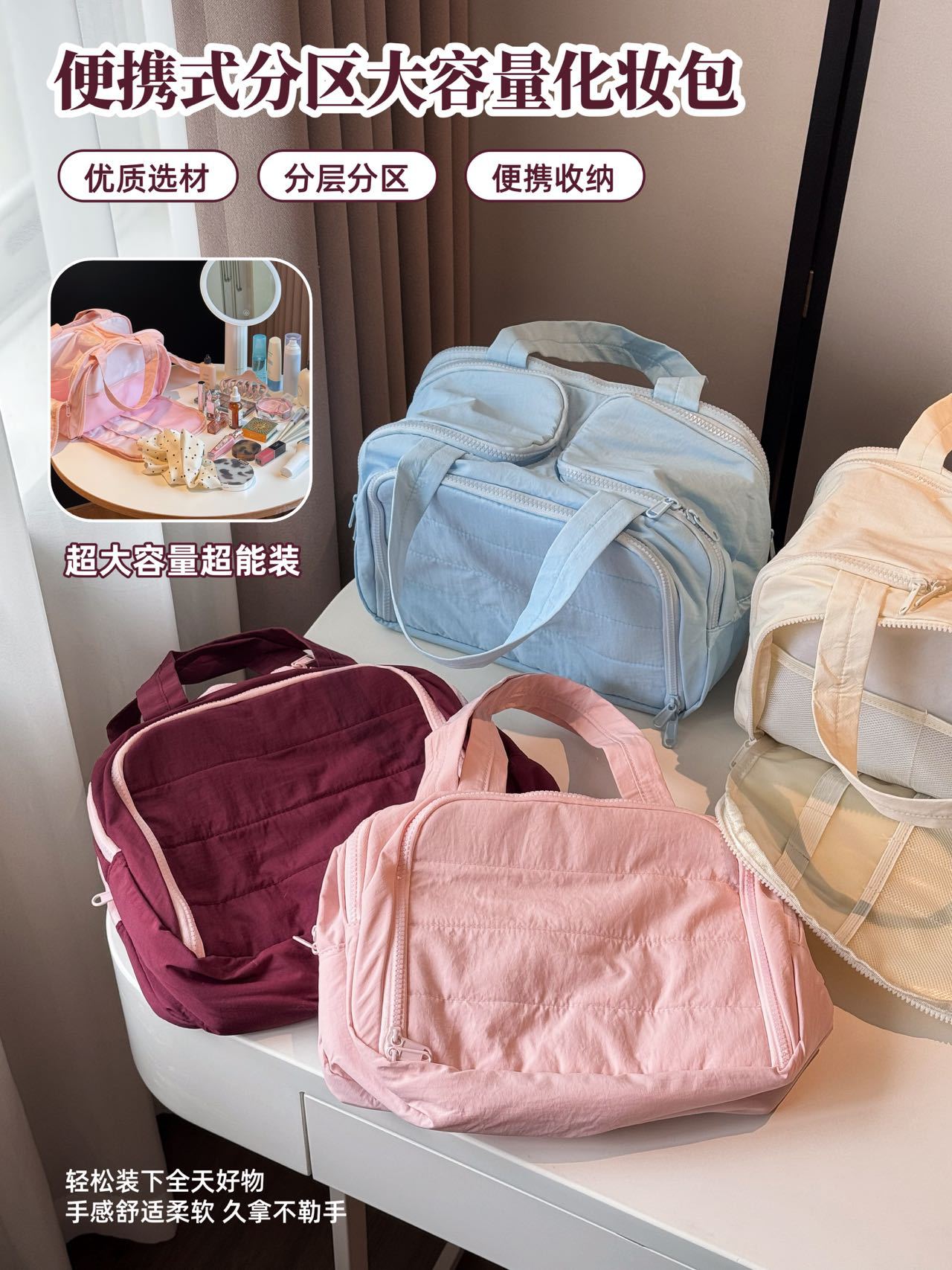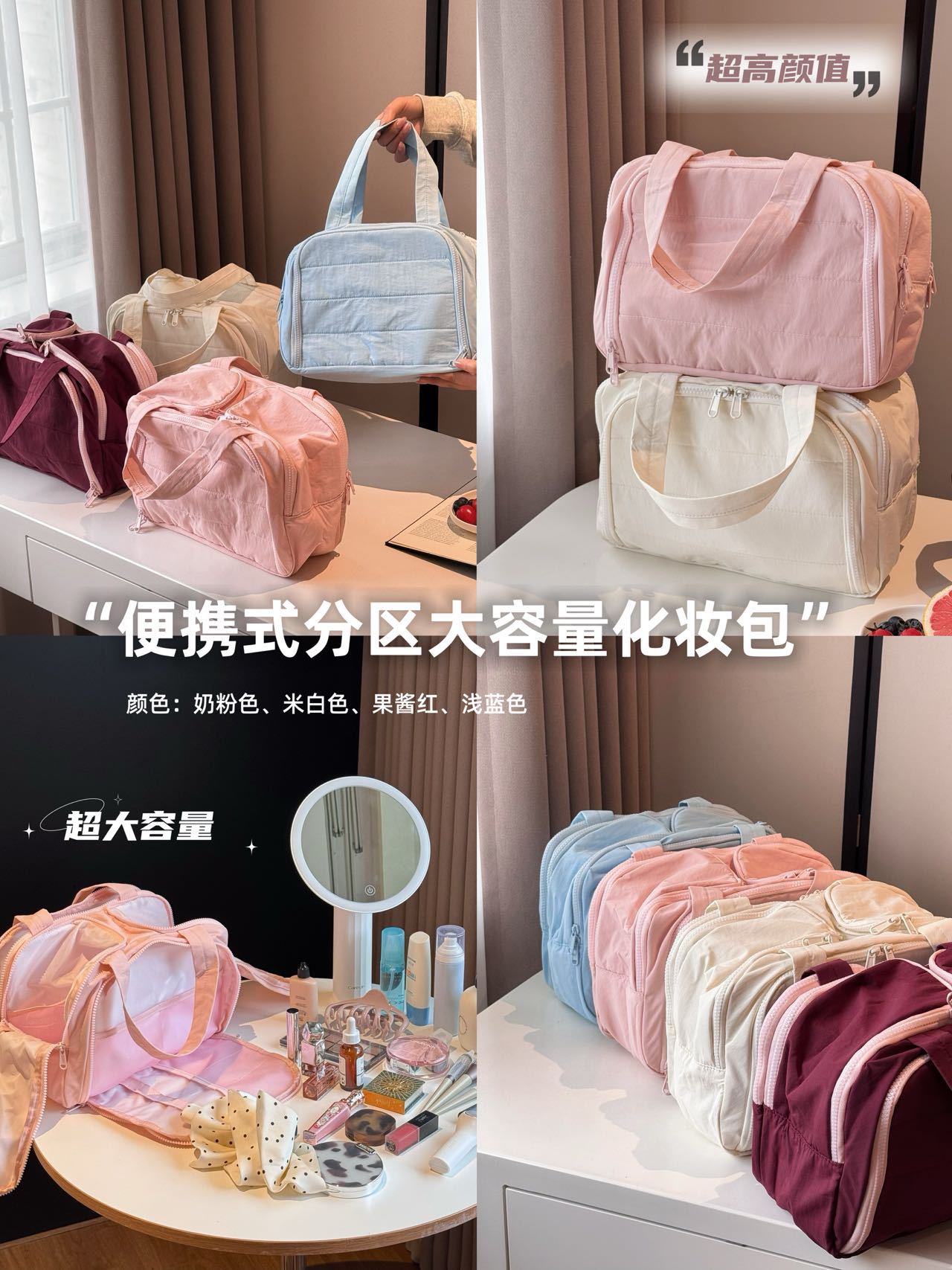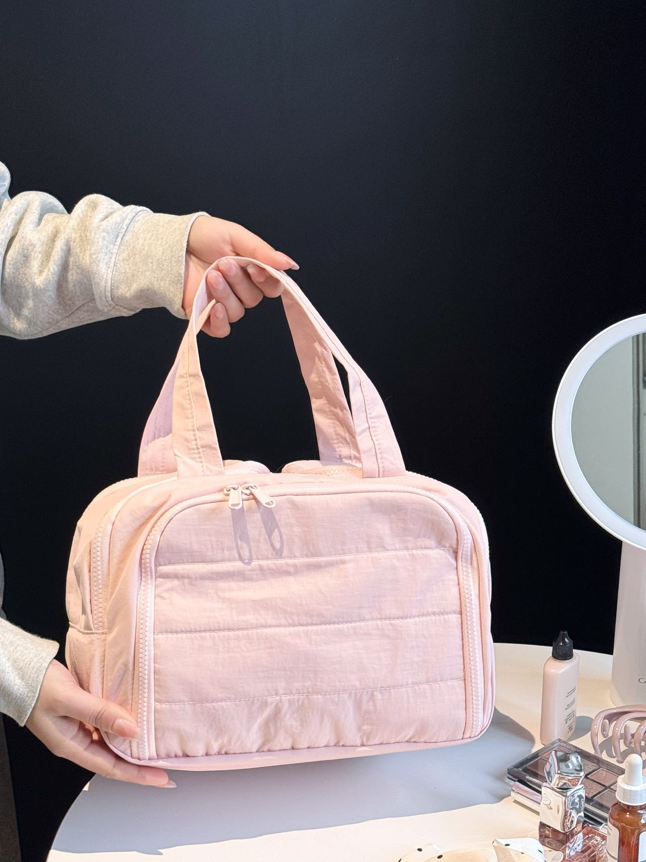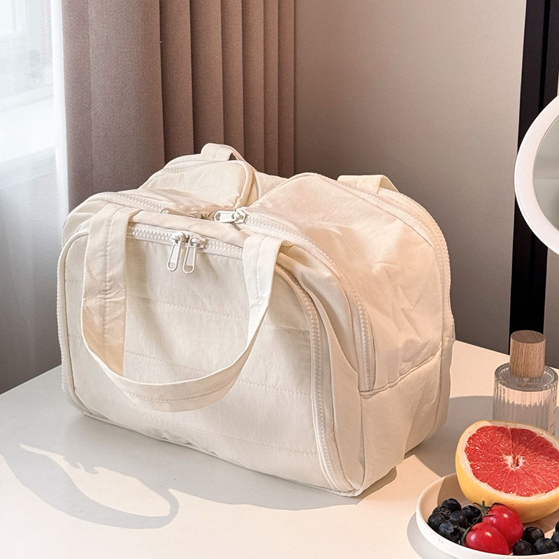 더블 와이드 오프닝 대용량! 푹신한 화장품 가방 여성의 2024 새로운 하이 엔드 여행 휴대용 세척 보관 가방