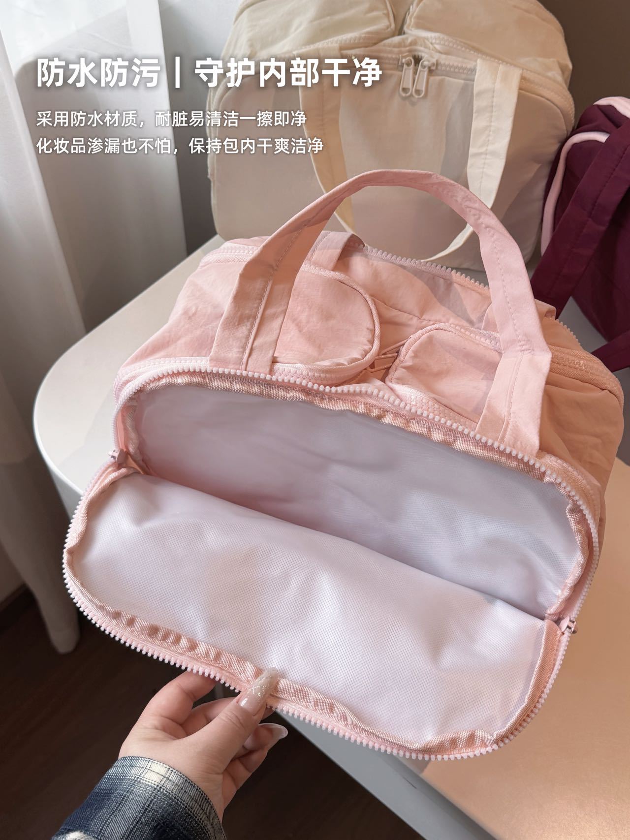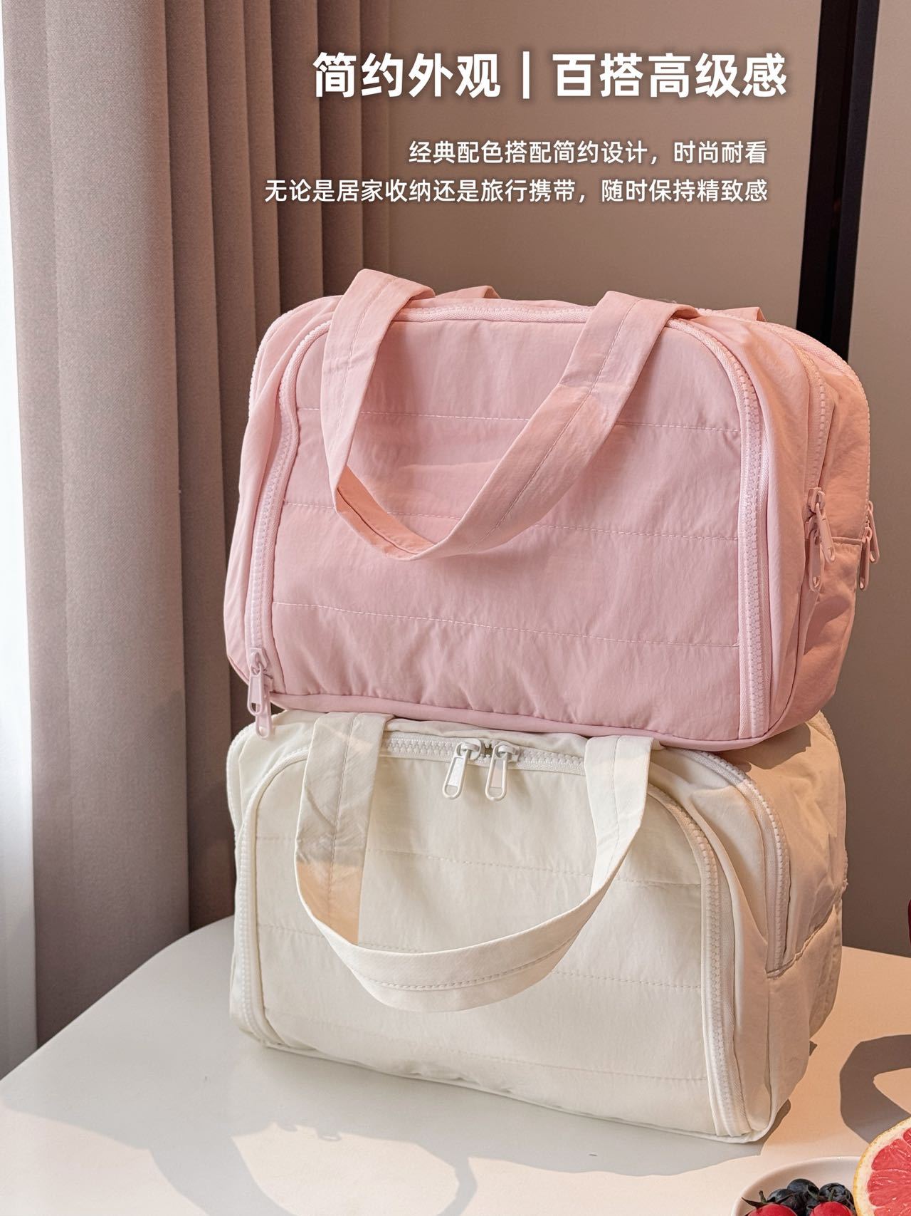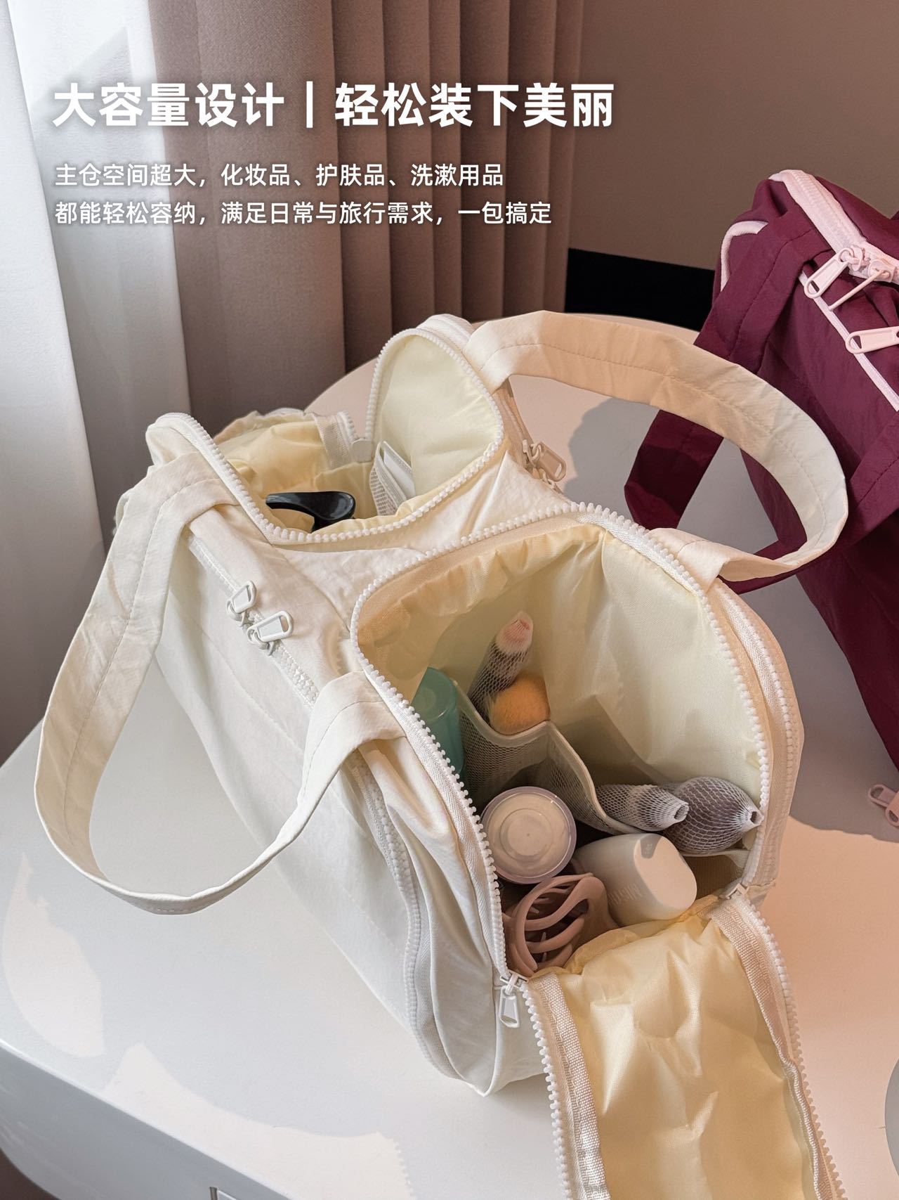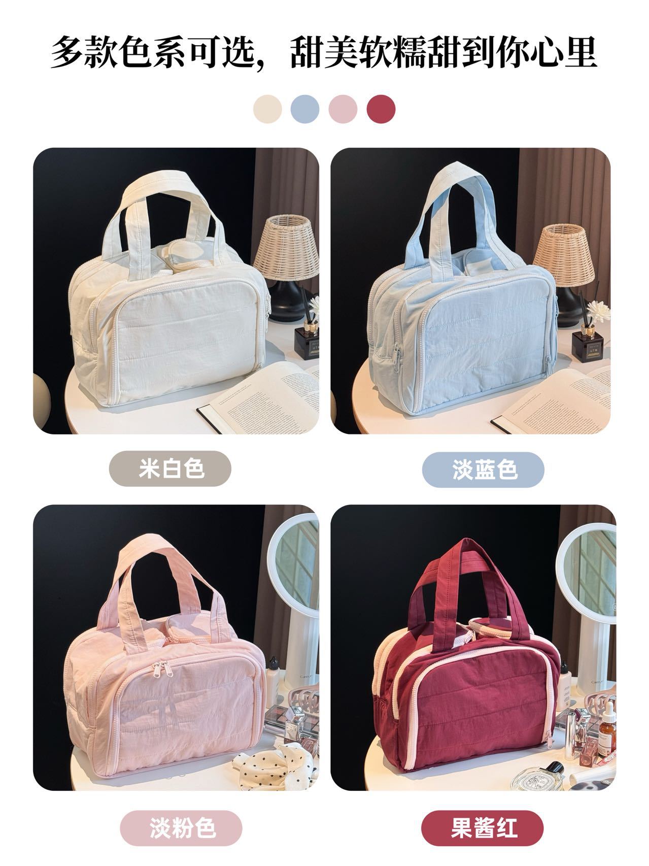 더블 와이드 오프닝 대용량! 푹신한 화장품 가방 여성의 2024 새로운 하이 엔드 여행 휴대용 세척 보관 가방