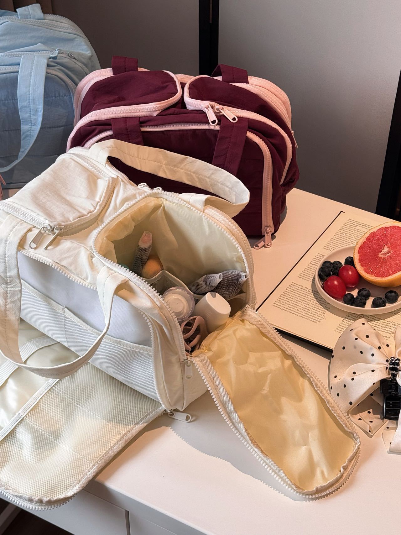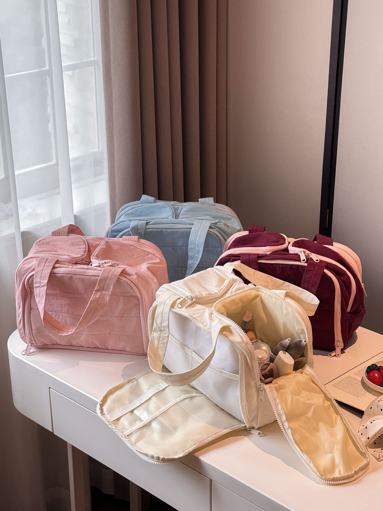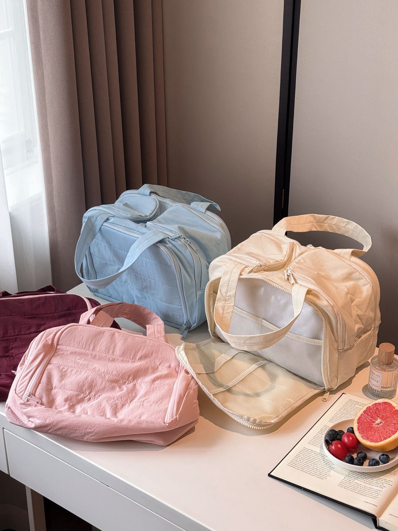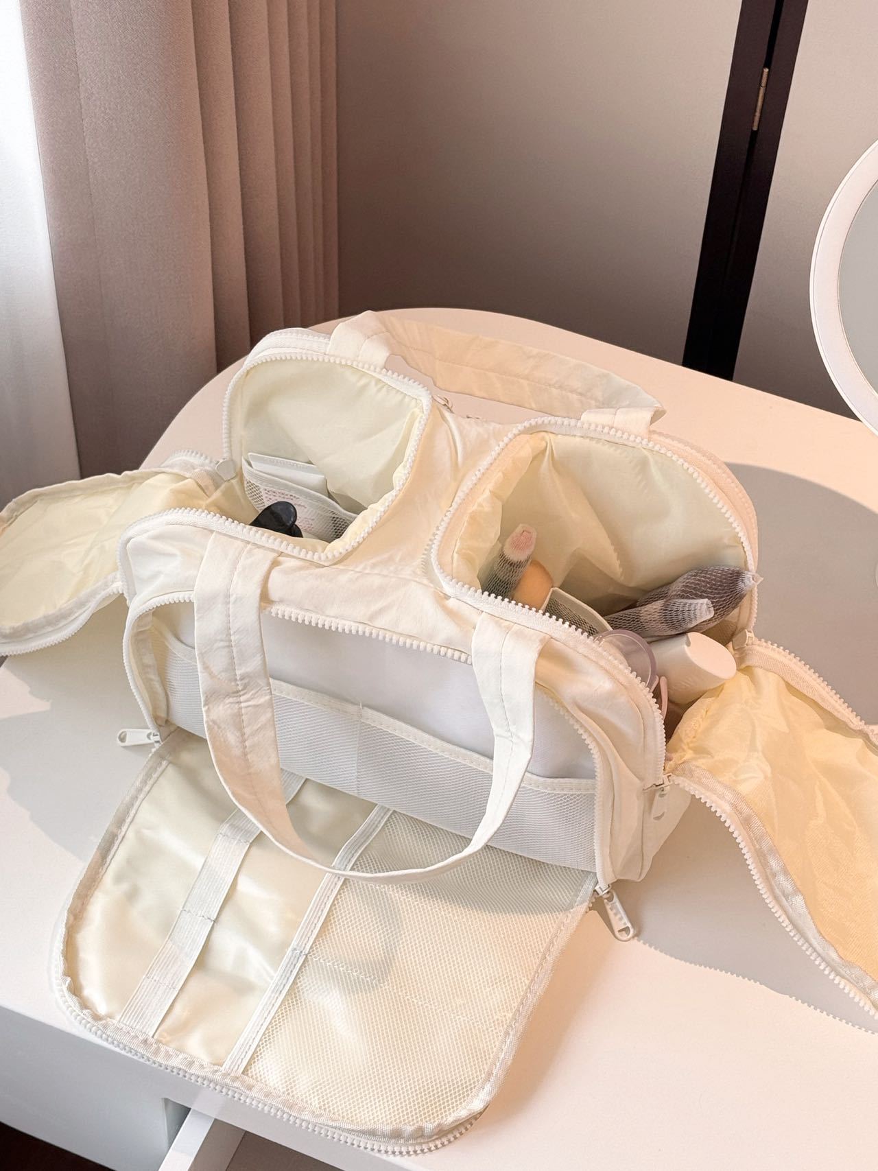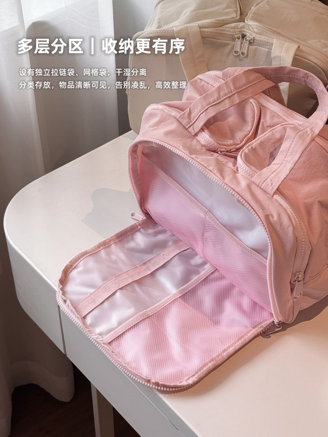 더블 와이드 오프닝 대용량! 푹신한 화장품 가방 여성의 2024 새로운 하이 엔드 여행 휴대용 세척 보관 가방
