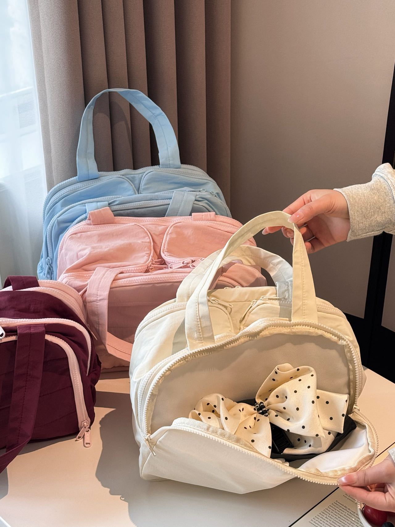 더블 와이드 오프닝 대용량! 푹신한 화장품 가방 여성의 2024 새로운 하이 엔드 여행 휴대용 세척 보관 가방스토어 가기