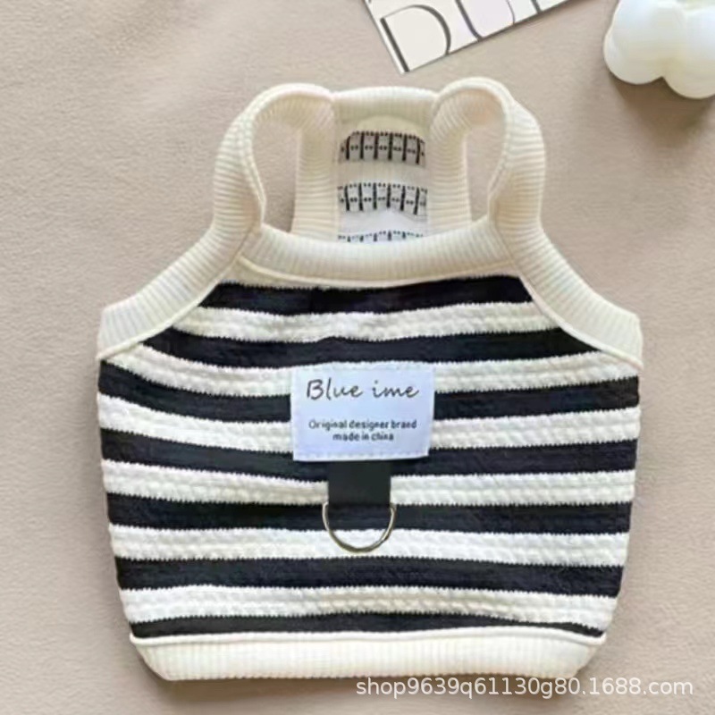 봄과 여름 새로운 프랑스 스타일 애완견 고양이 미 견인 옷 짧은 테디 베어 스트라이프 머리 증거 조끼스토어 가기