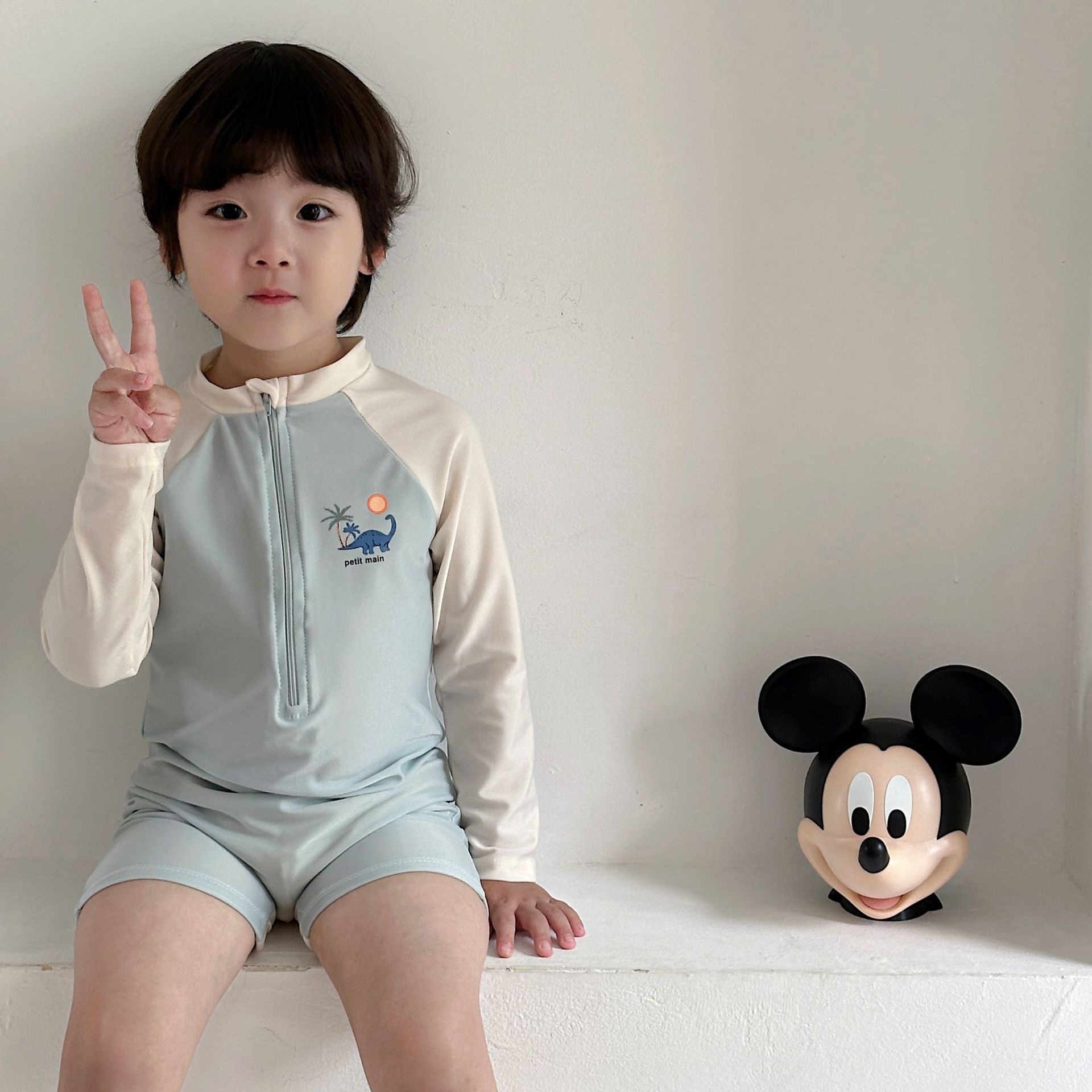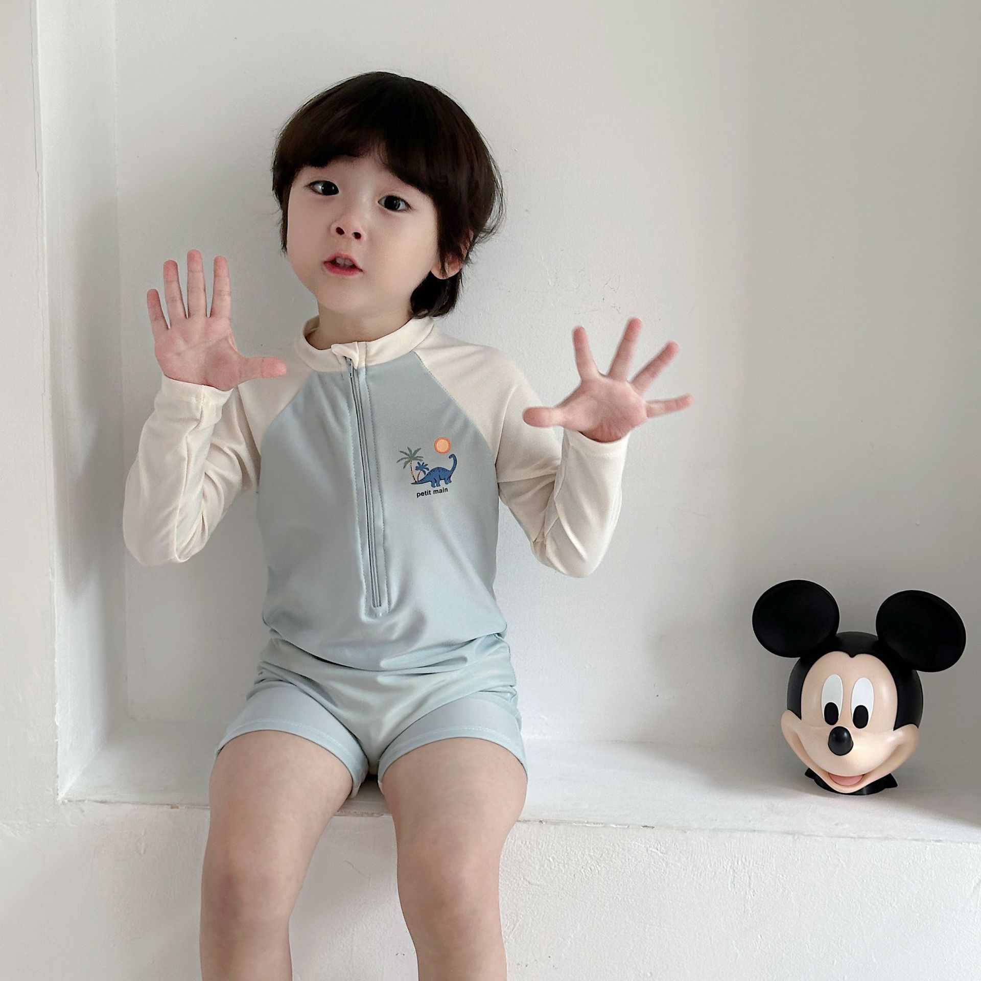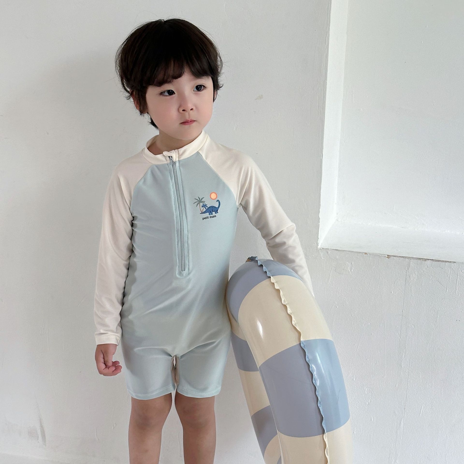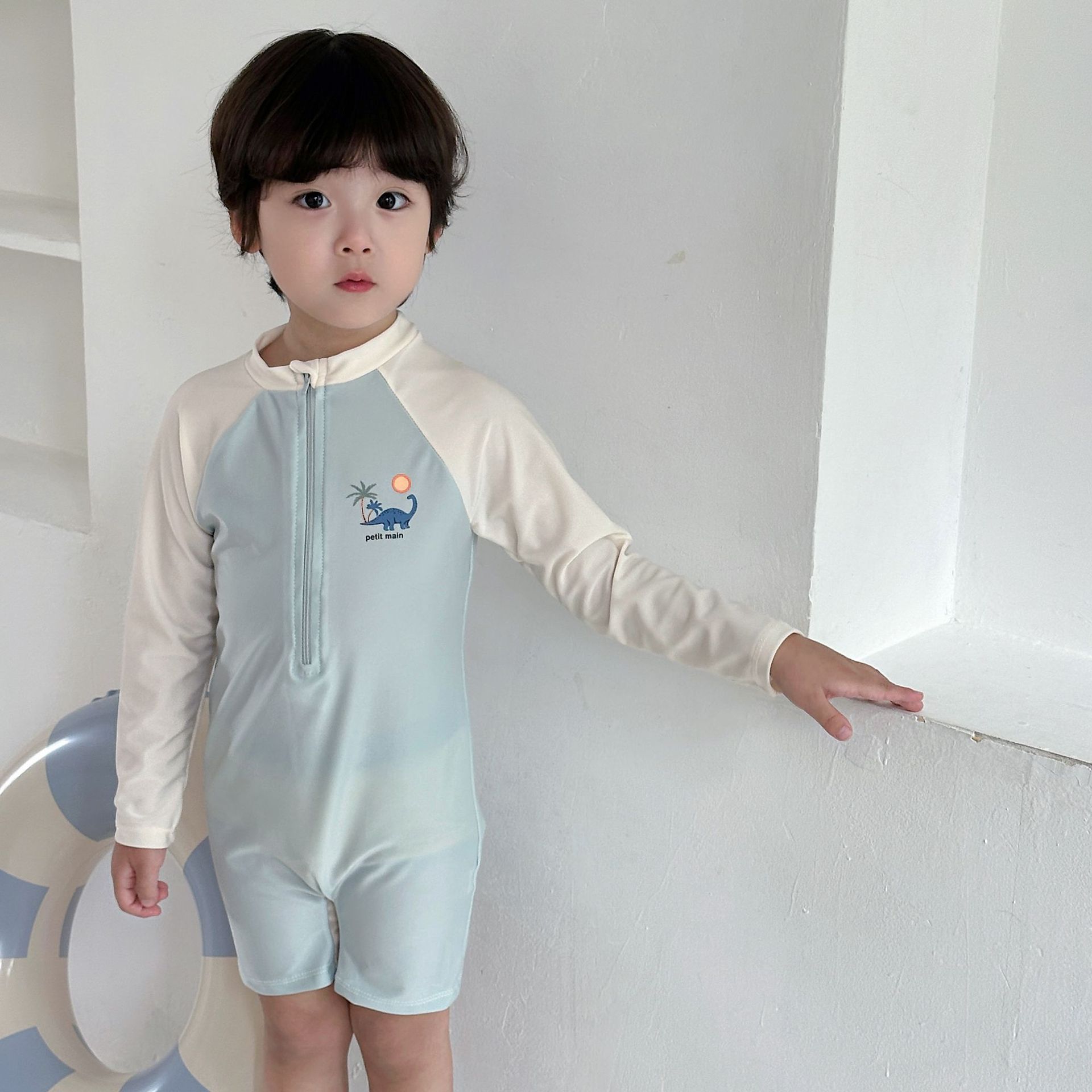 한국 스타일 아동 수영복 소년 긴팔 자외선 차단 속건 원피스 온천 소년 아기 잘 생긴 중소형 어린이 수영복스토어 가기