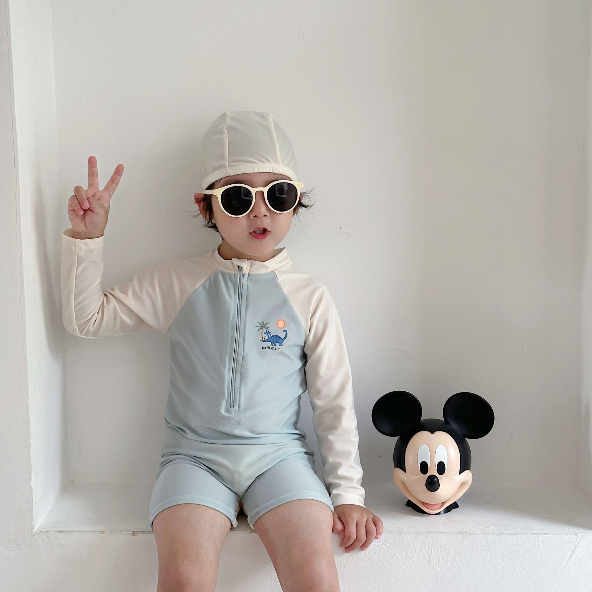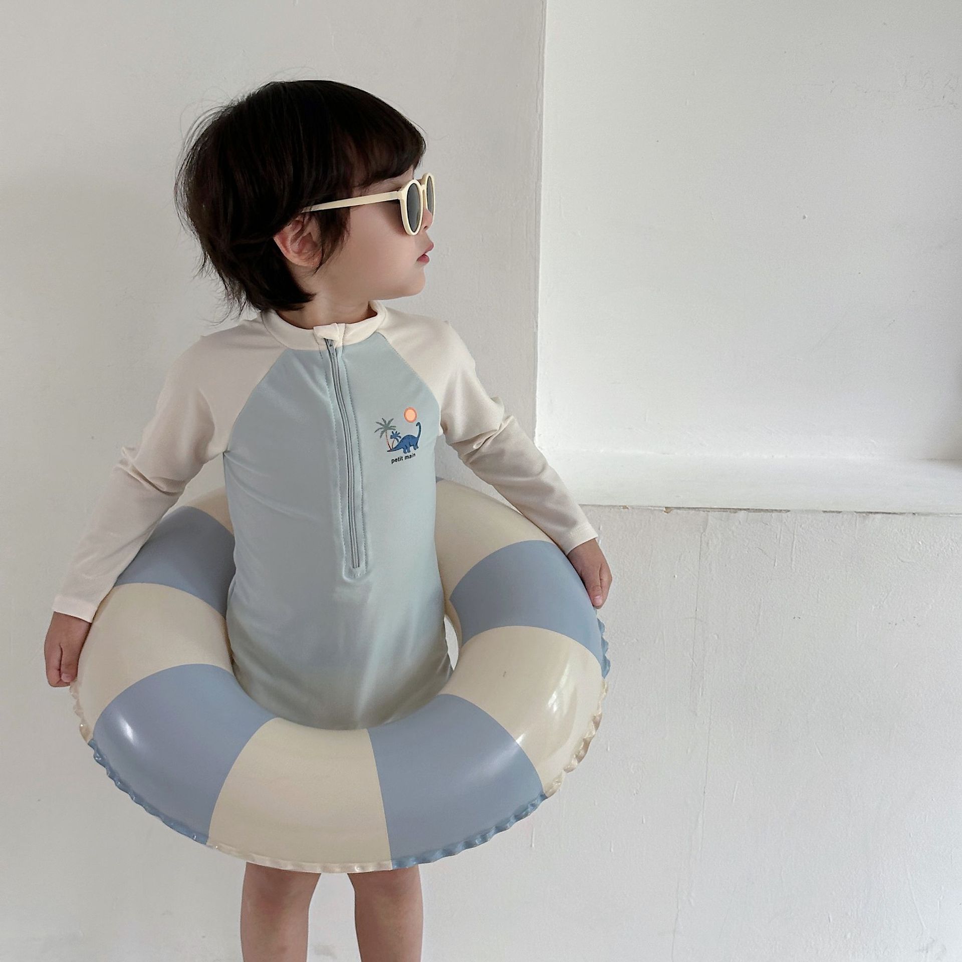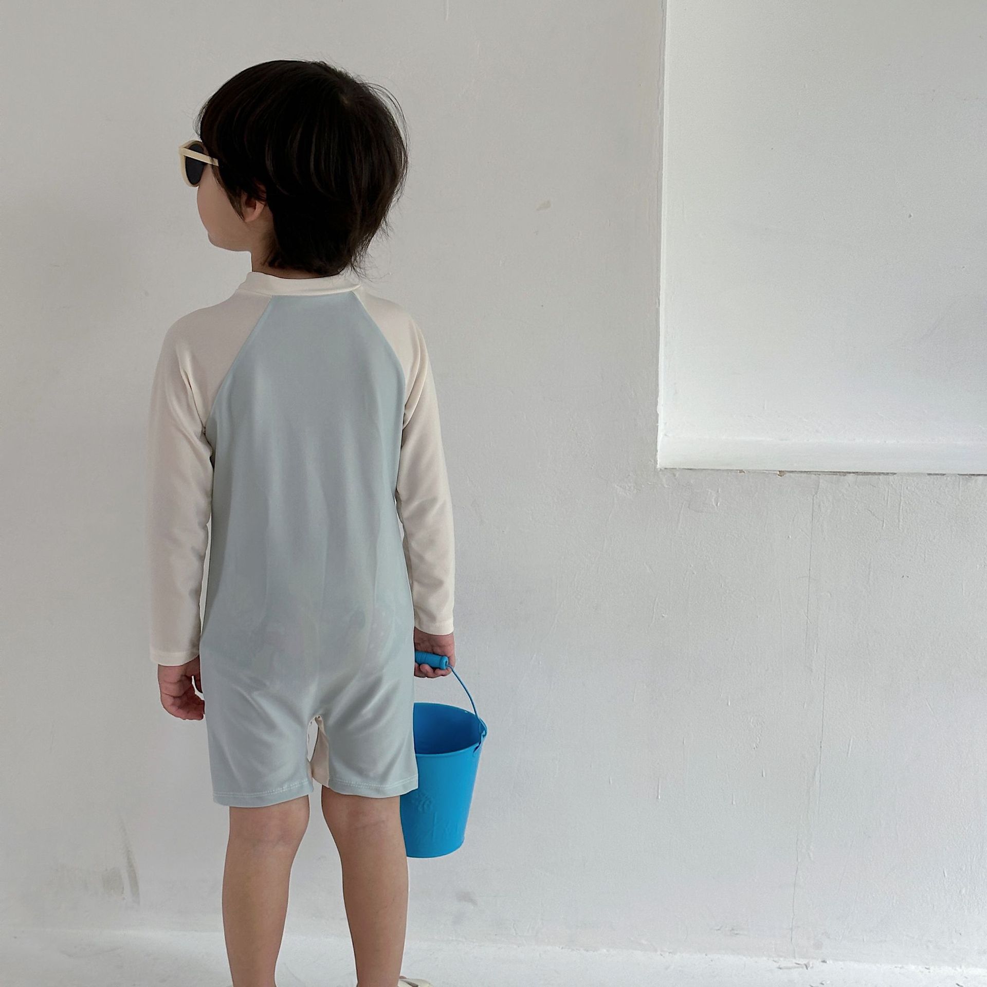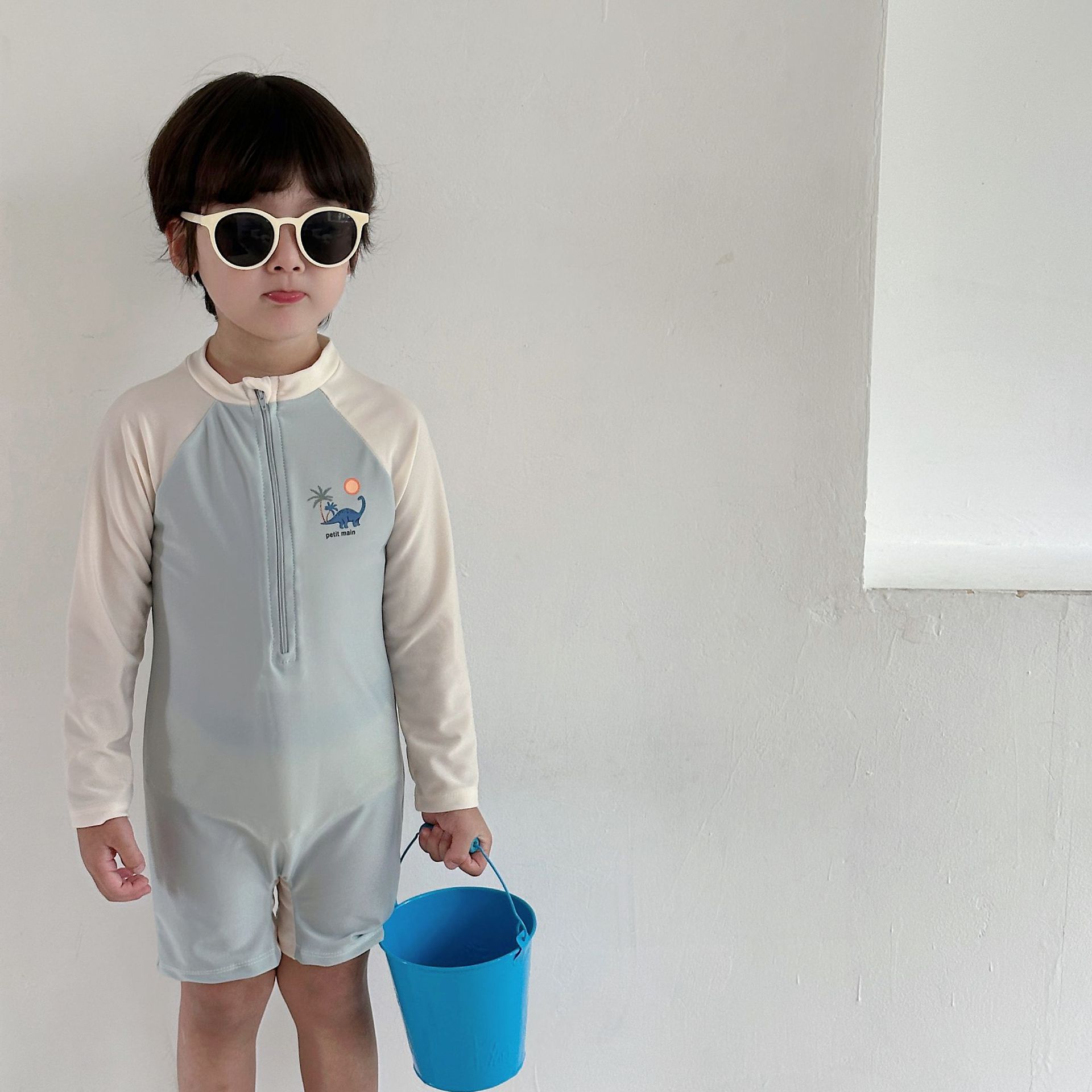 한국 스타일 아동 수영복 소년 긴팔 자외선 차단 속건 원피스 온천 소년 아기 잘 생긴 중소형 어린이 수영복스토어 가기