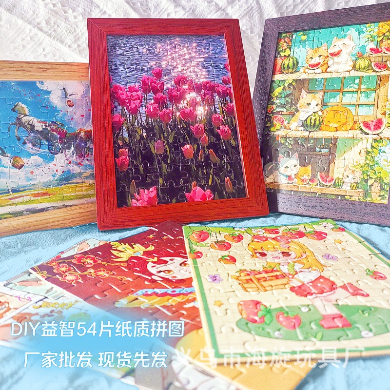 54 조각 직소 퍼즐 장난감 3-6 세 장난감 종이 직소 퍼즐 어린이 장난감 선물 상자 높은 색상 가치 퍼즐 도매