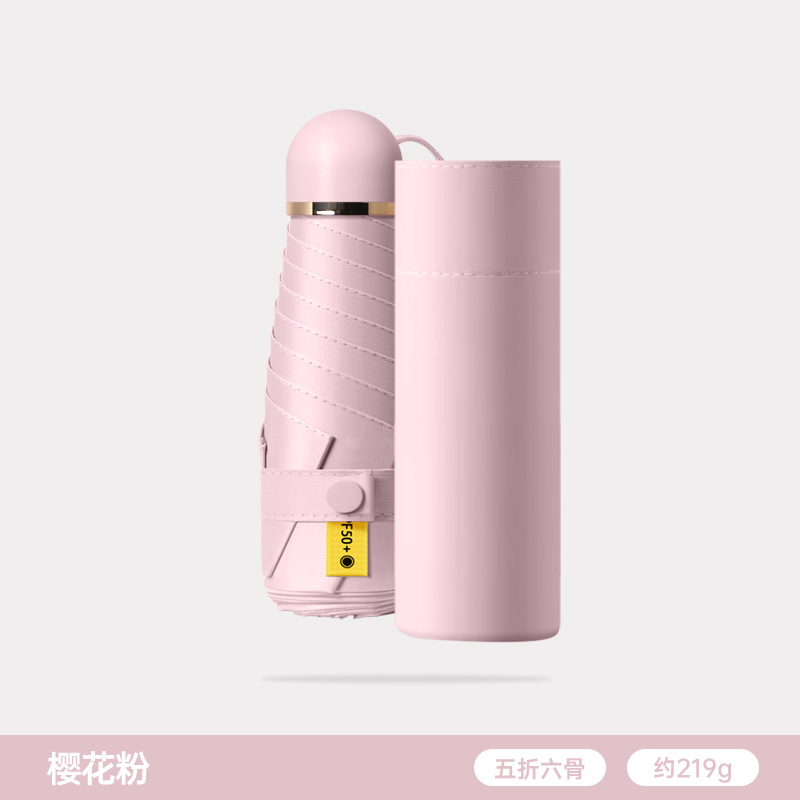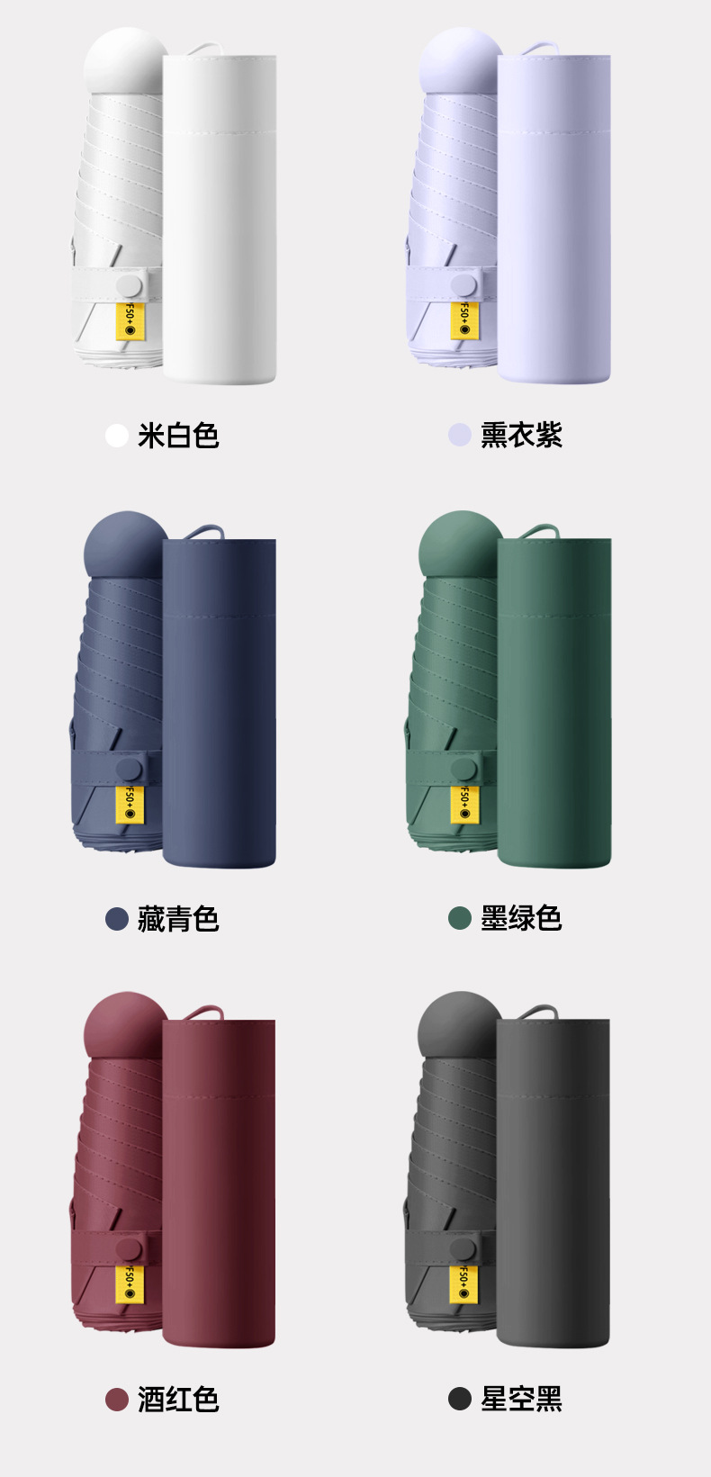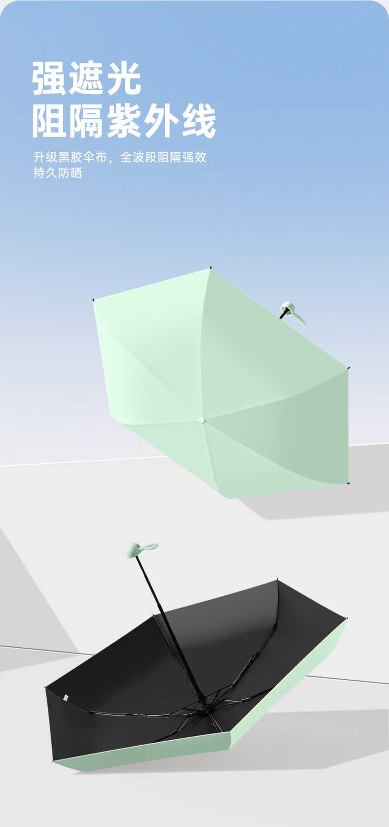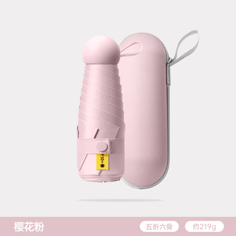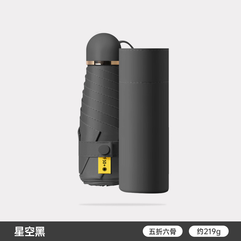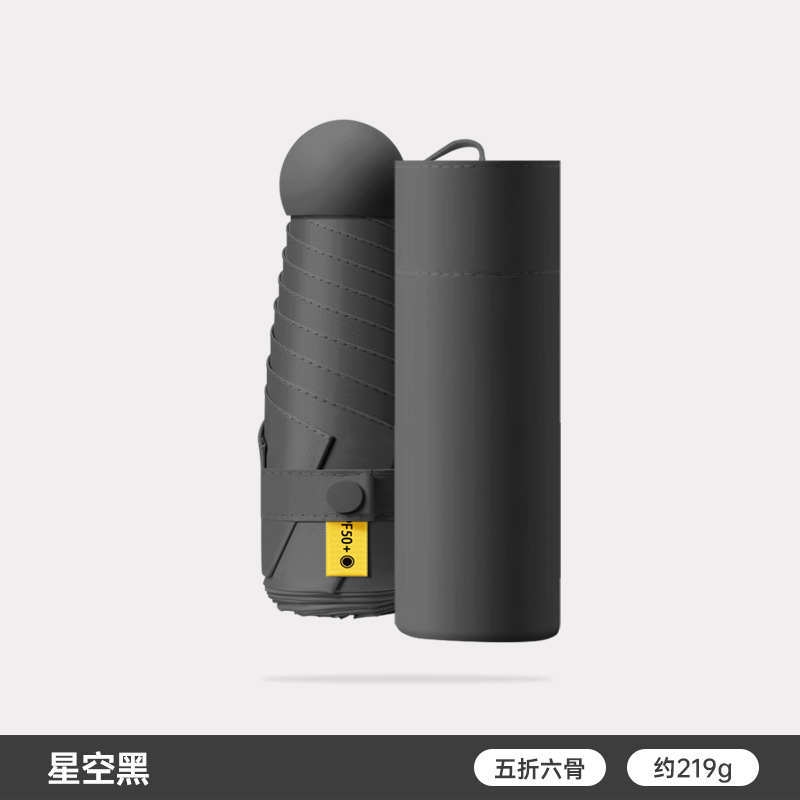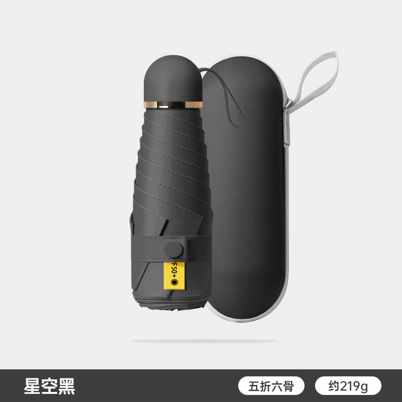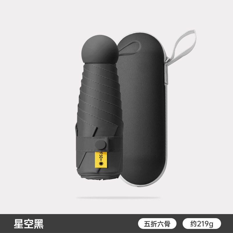 50% 접힌 6 뼈 캡슐 태양 우산 미니 휴대용 포켓 우산 여성용 선 스크린 햇살 우산 블랙 고무 접기