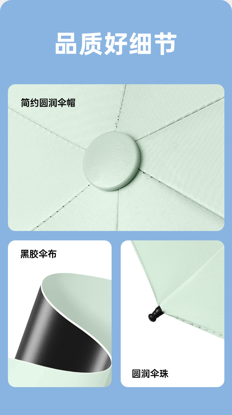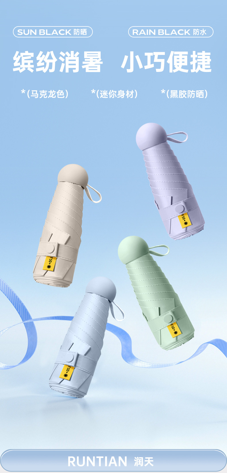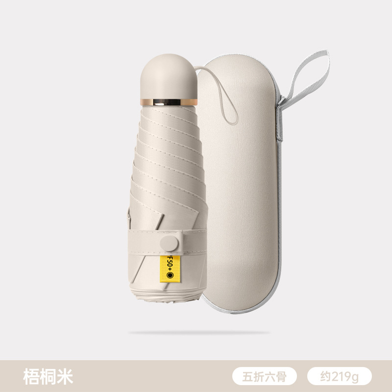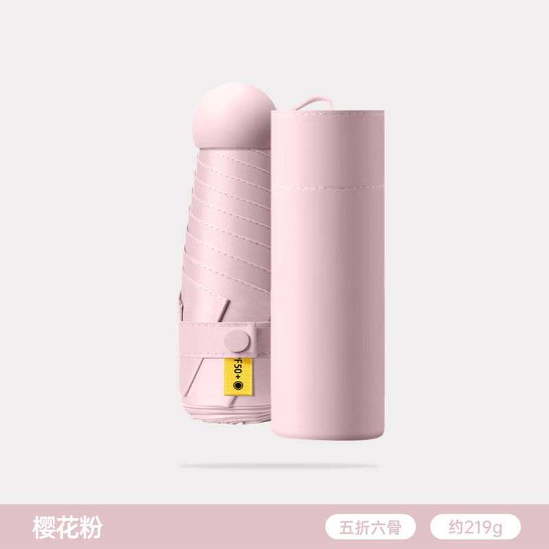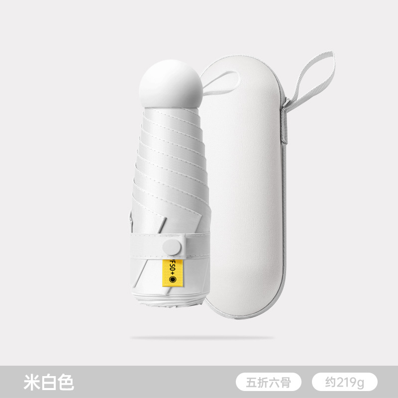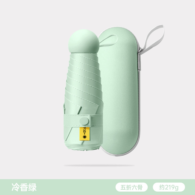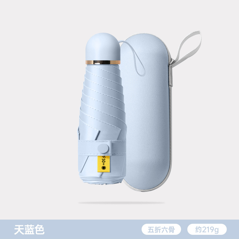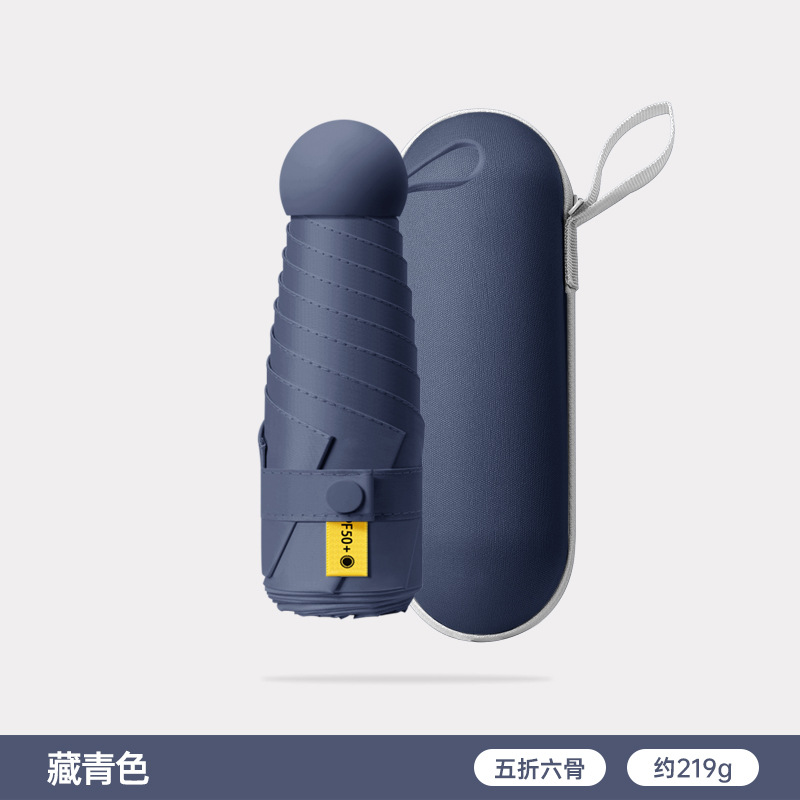 50% 접힌 6 뼈 캡슐 태양 우산 미니 휴대용 포켓 우산 여성용 선 스크린 햇살 우산 블랙 고무 접기