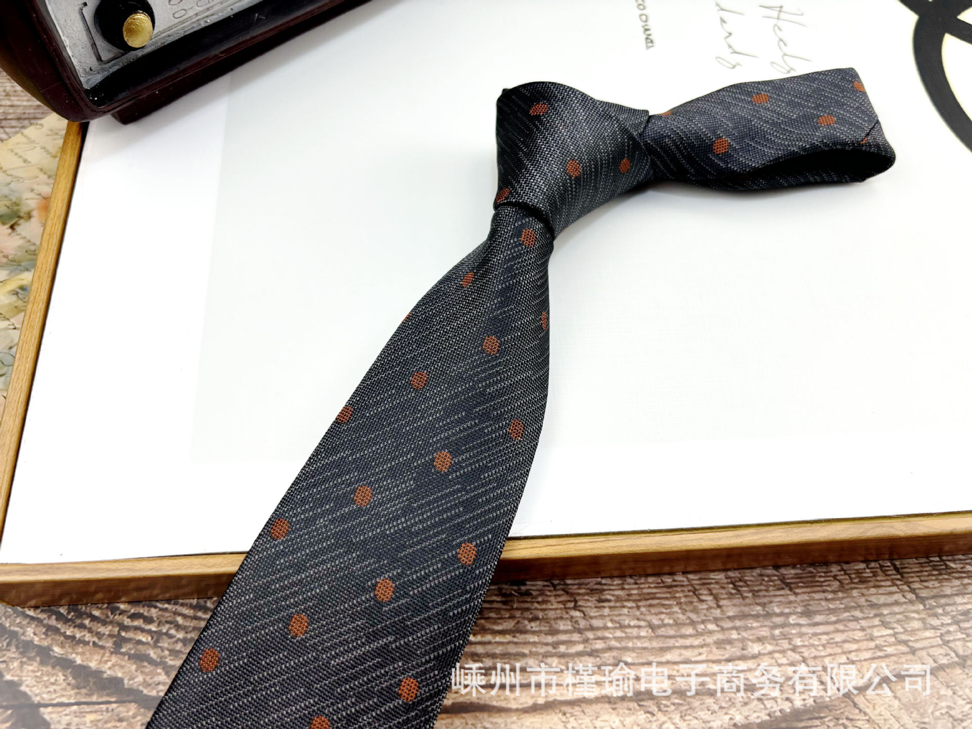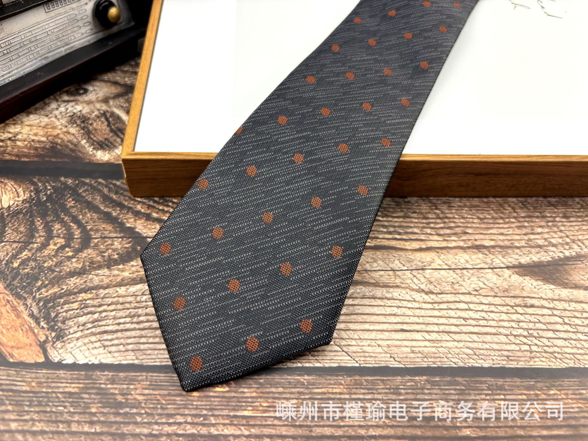 • H14 다크 그레이 폴카 도트 타이