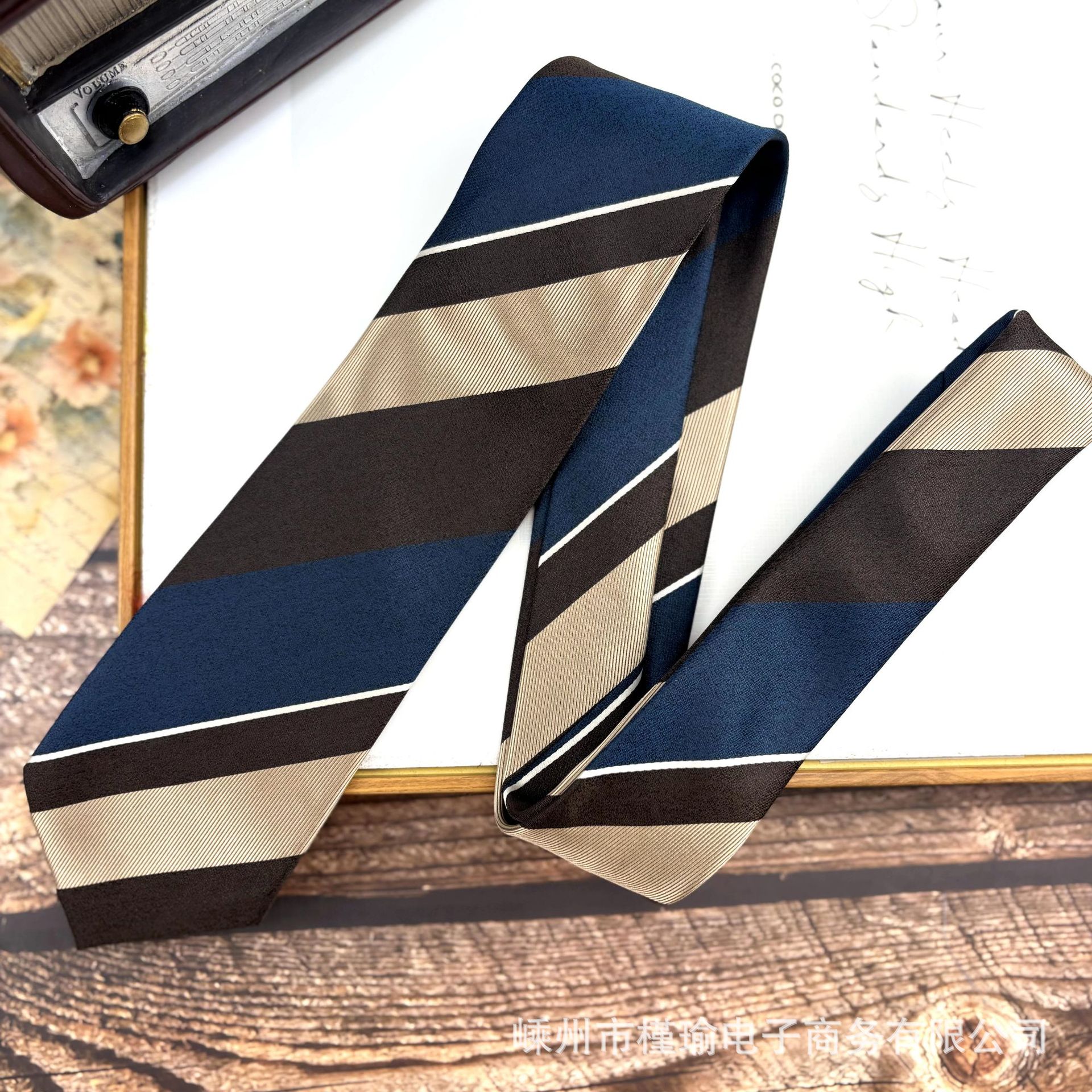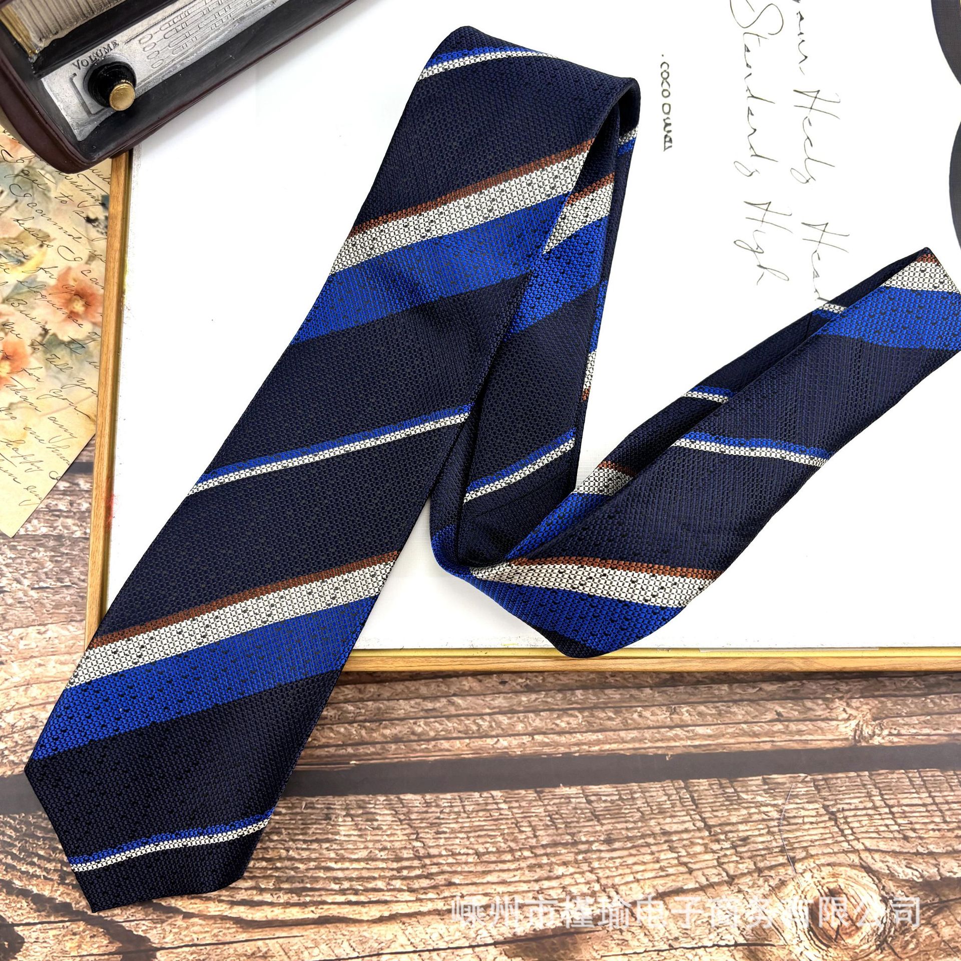 • X13 진한 파란색 줄무늬 넥타이