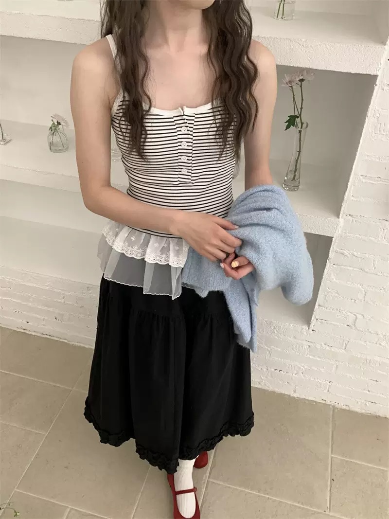 한국인블로거 같은 스타일 카미솔 여성 슈퍼 아름 다운 더블 레이스 헴, 아트 커튼 쌓인 탑스토어 가기