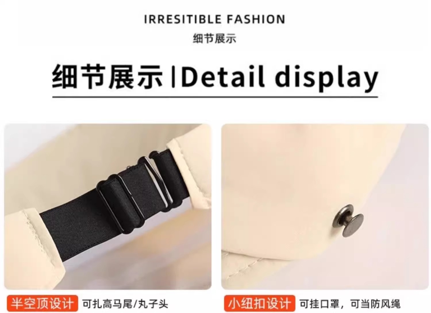 Zhao Rusi 같은 스타일의 선 스크린 모자 여성의 여름 빈-탑 햇빛 모자 야외 여행 빈-탑 퀵 드라이 교수형 마스크 모자