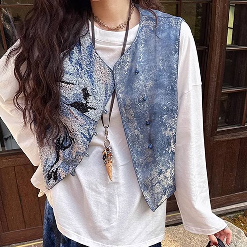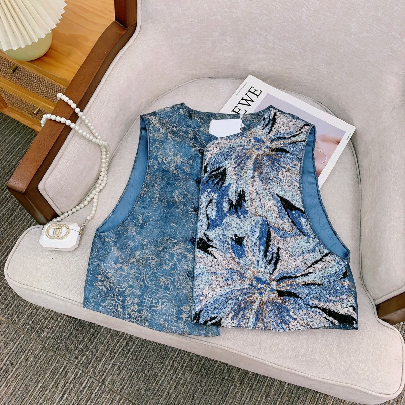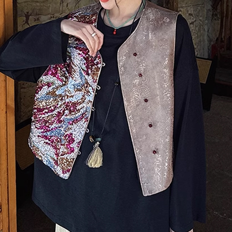 재고 있음 [Zhao Yuan] 여성을 위한 중국 스타일의 새로운 중국 스타일 조끼, 패셔너블하고 세련된 2025 새로운 스타일의 레이어드 조끼 탑스토어 가기